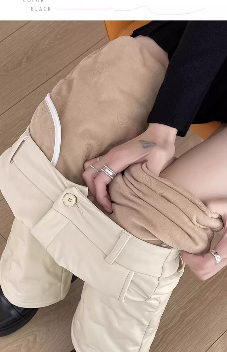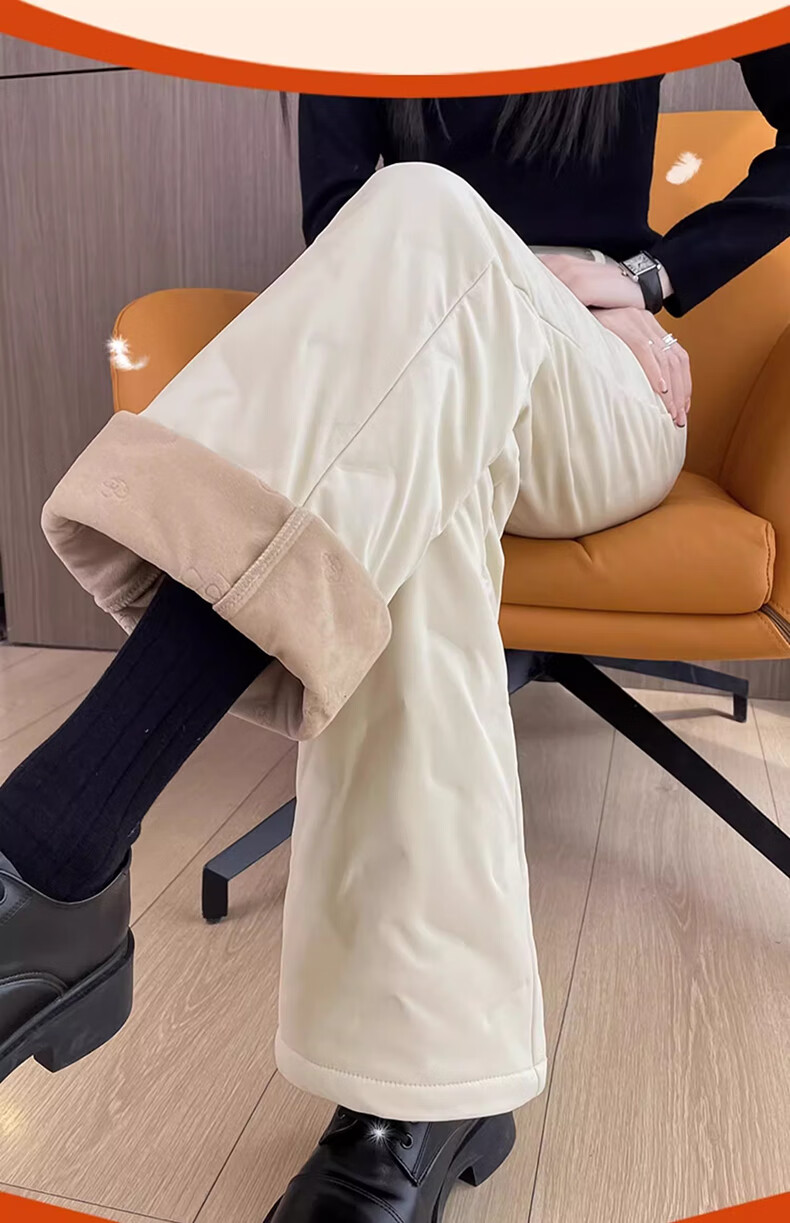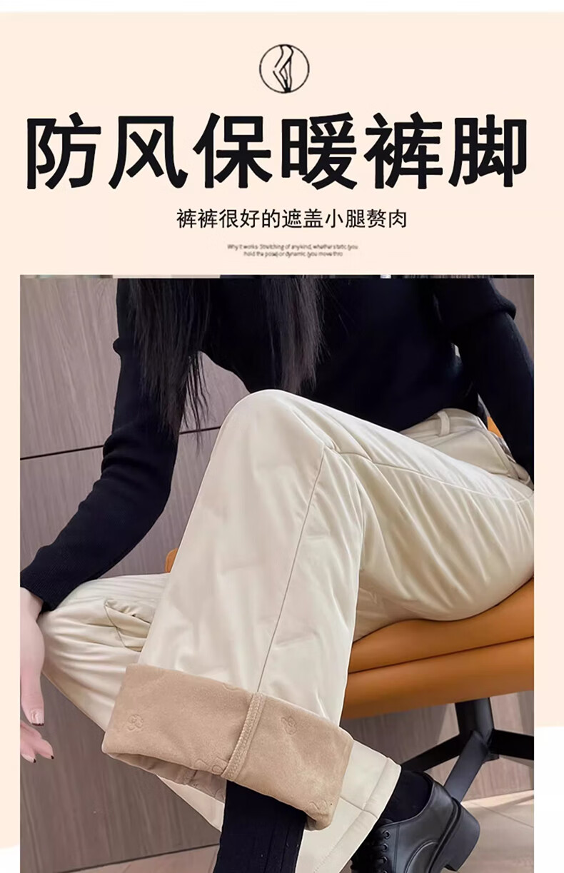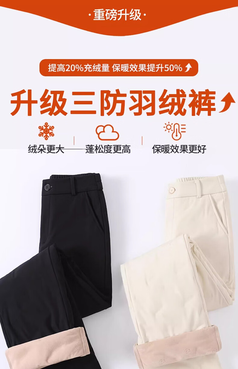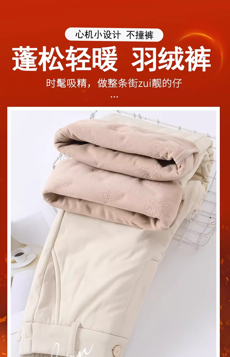 Duojie World Waterproof Micro-Large Down Pants Women's Winter Outerwear 2025 New Northeastern - 40 Degrees Extreme Cold Plus Velvet Thickened Cotton Pants Apricot S (95Jin Jin is equal to 0.5kg, choose below)