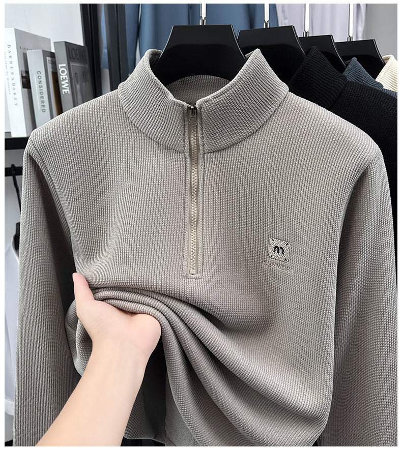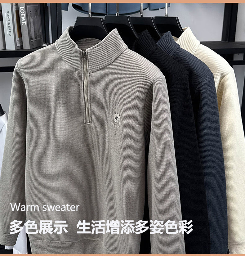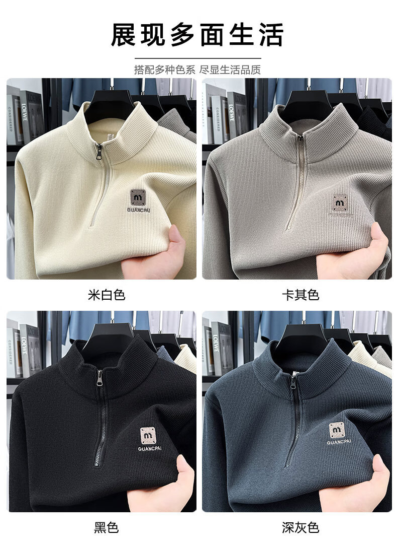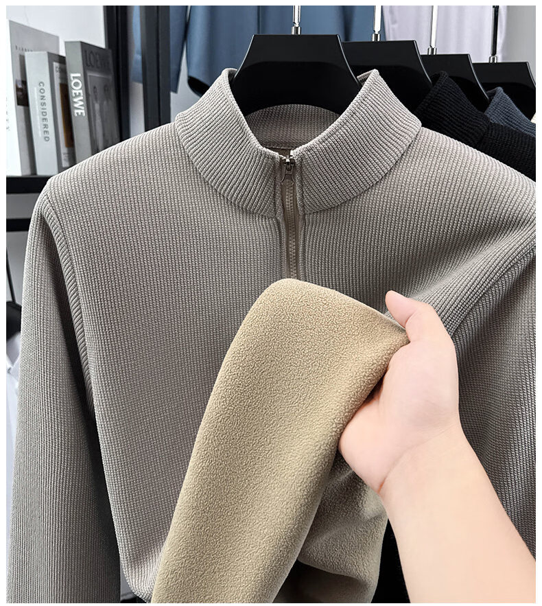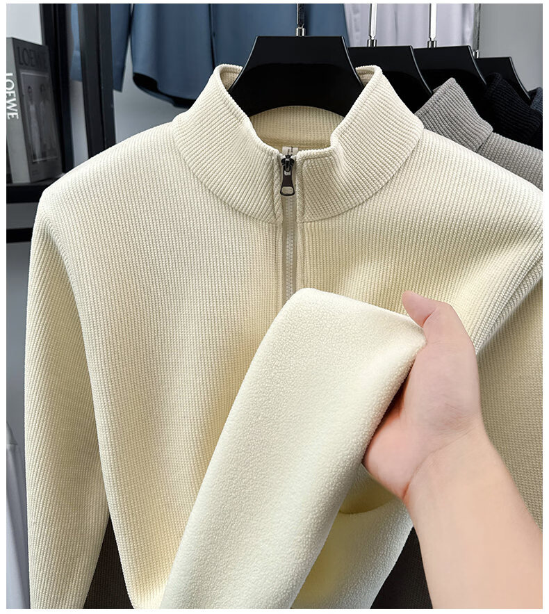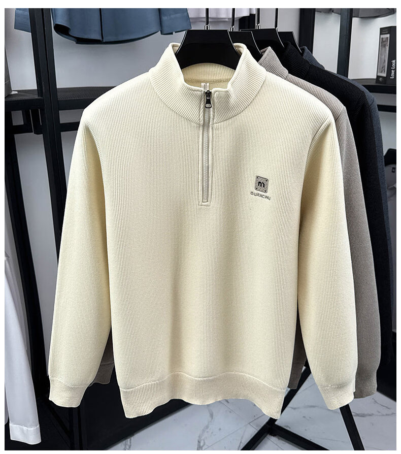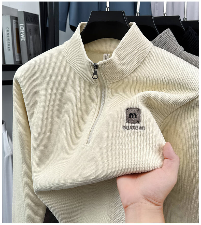 Woodpecker sweatshirt men's velvet thickened 2026 autumn and winter new long-sleeved men's casual T-shirt bottoming shirt 10301/7205 beige L