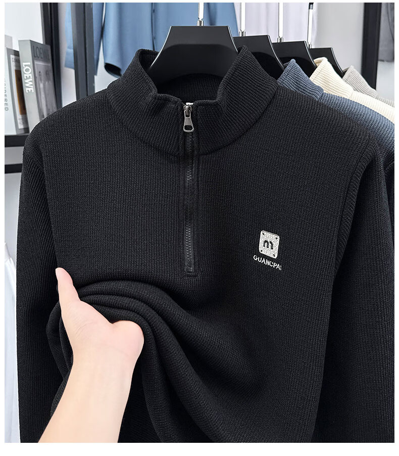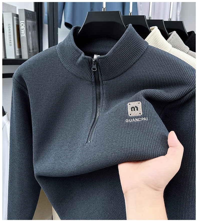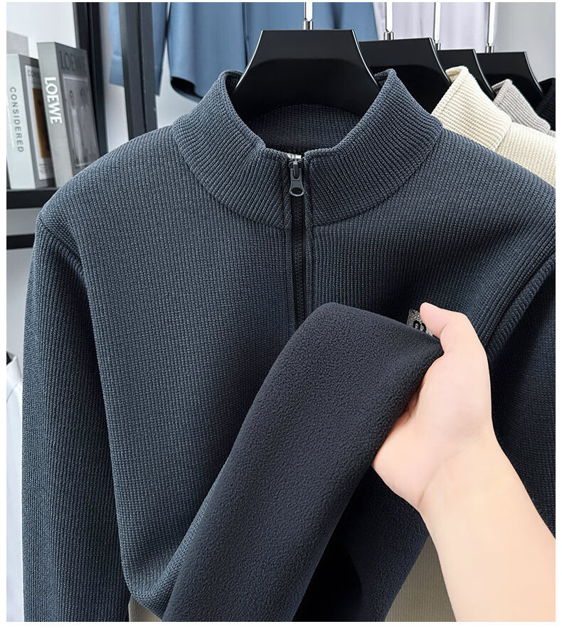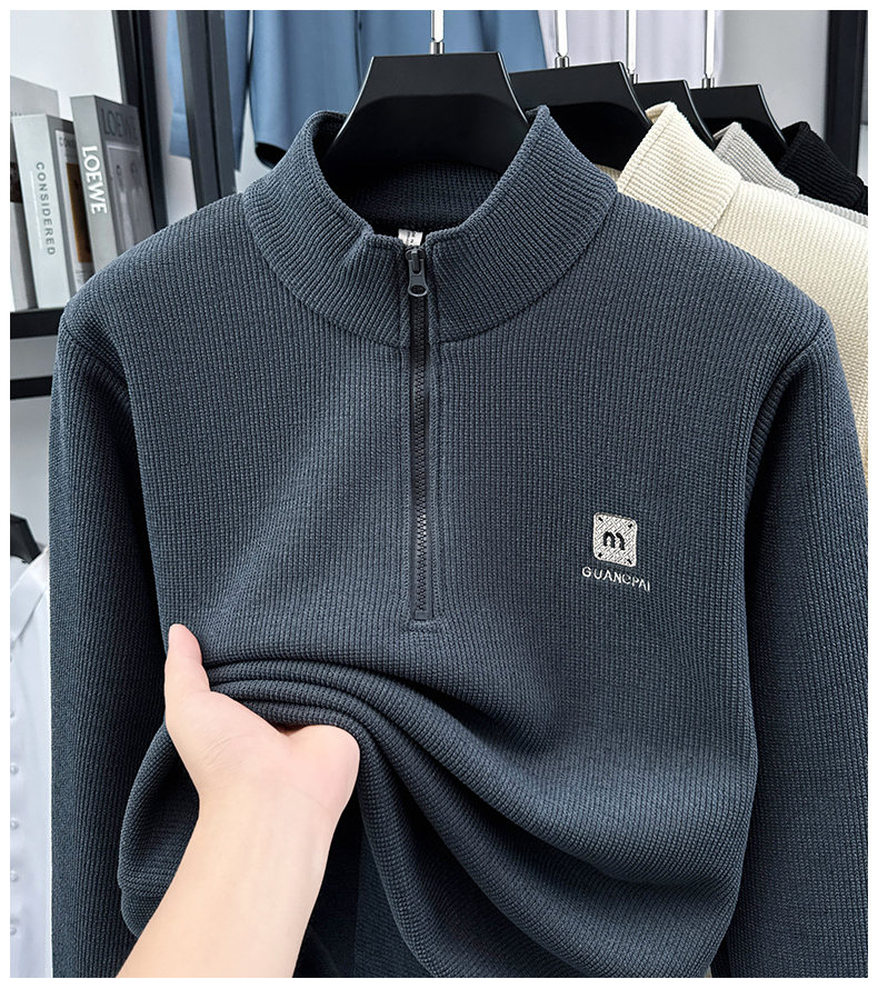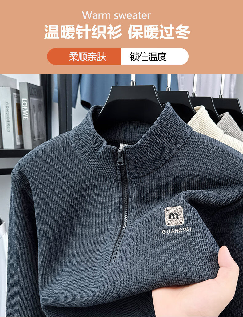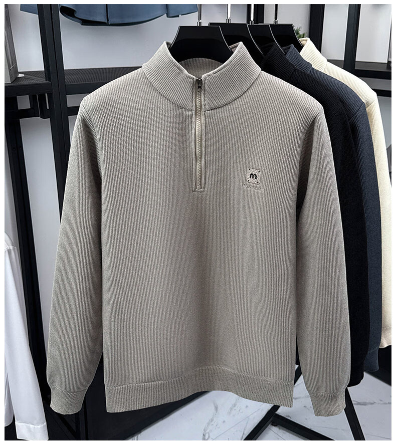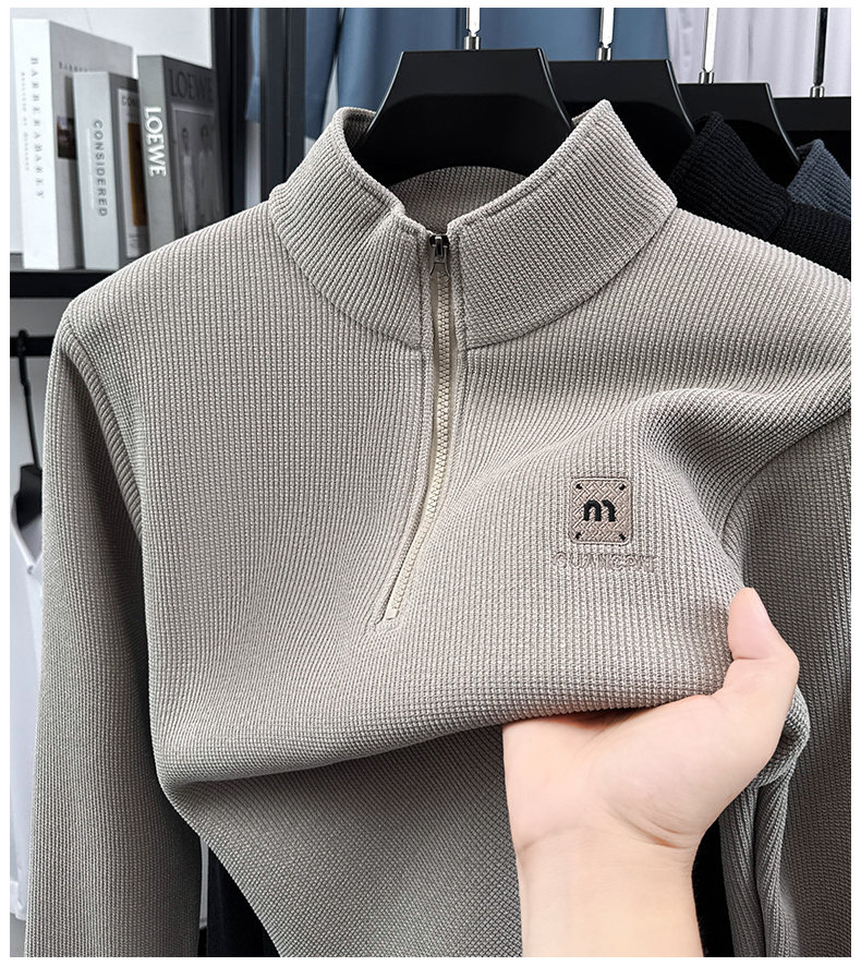 Woodpecker sweatshirt men's velvet thickened 2026 autumn and winter new long-sleeved men's casual T-shirt bottoming shirt 10301/7205 beige L