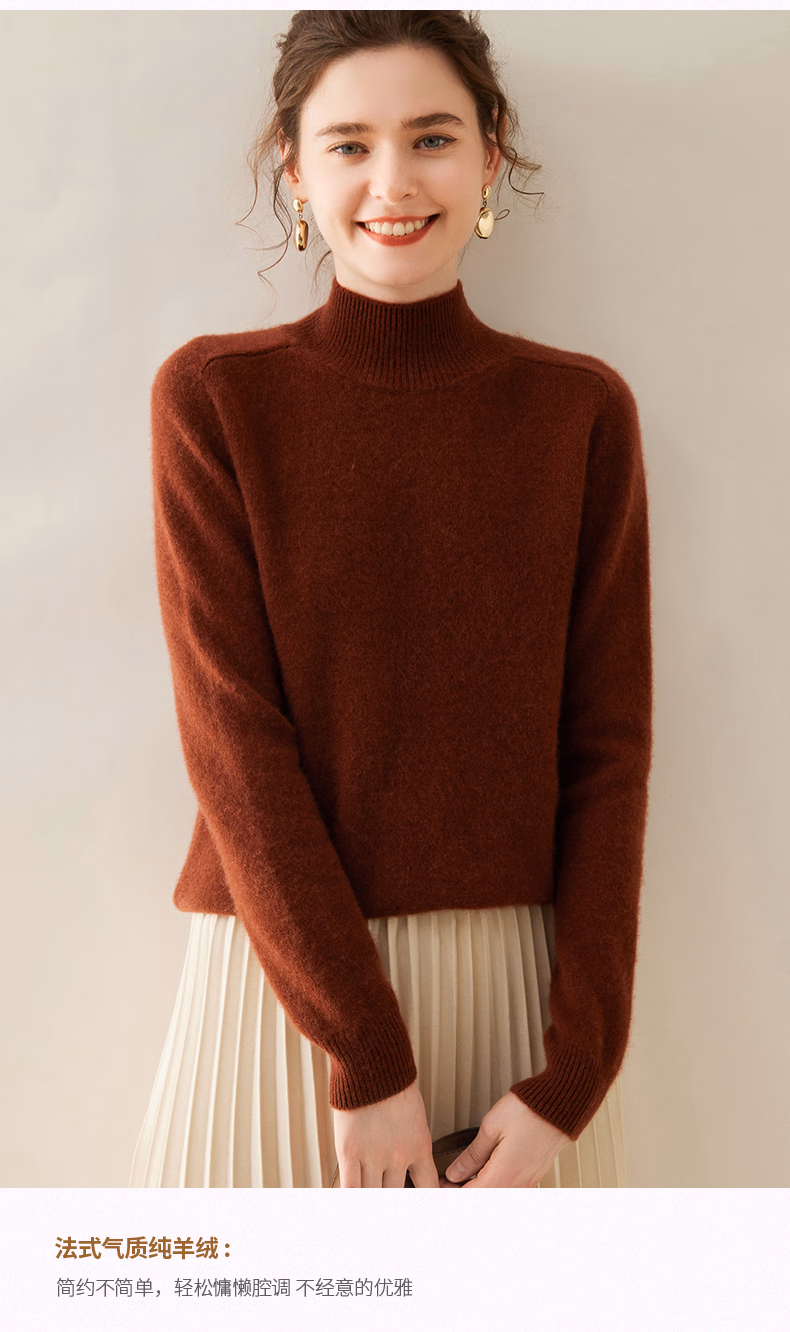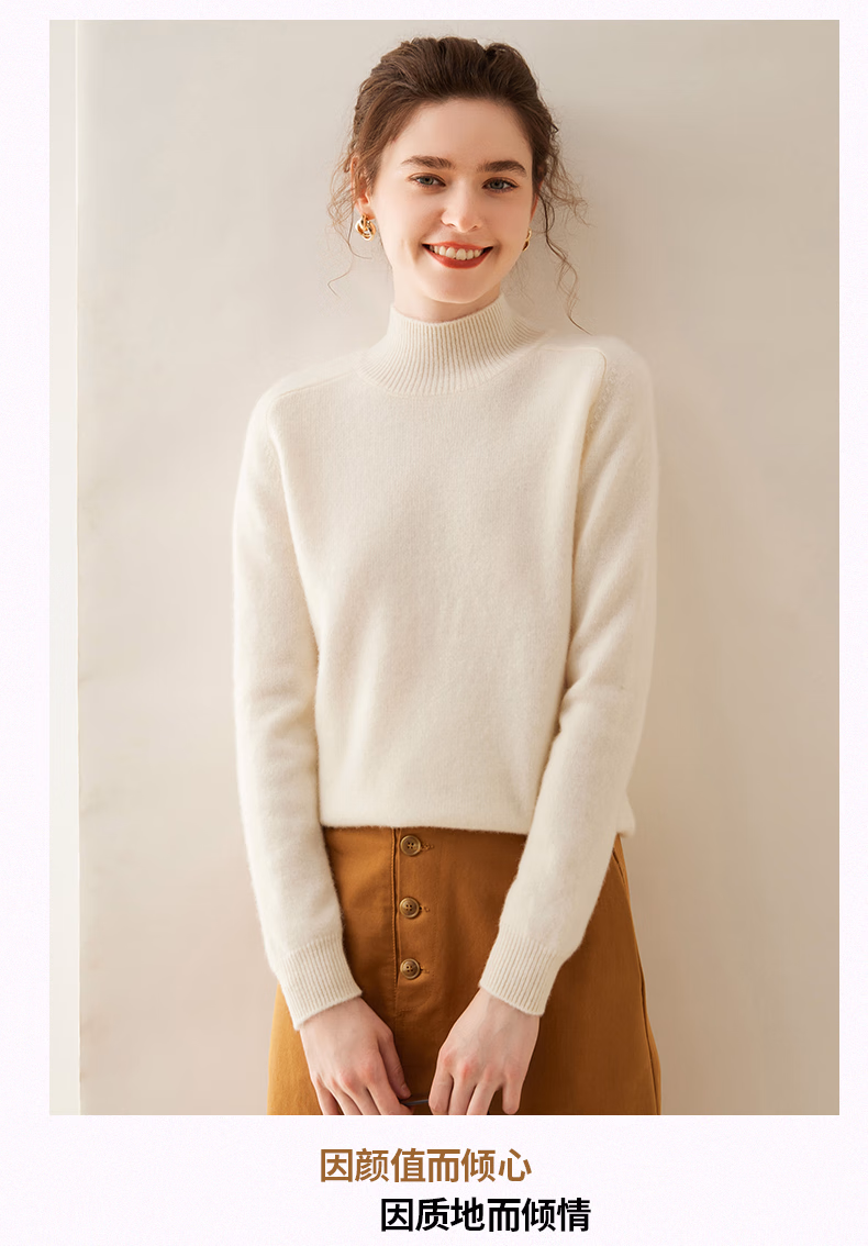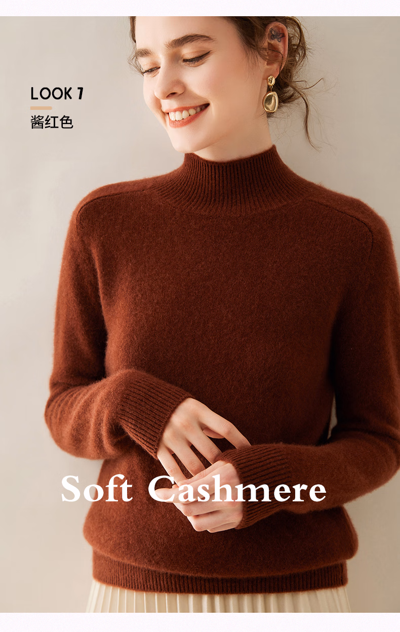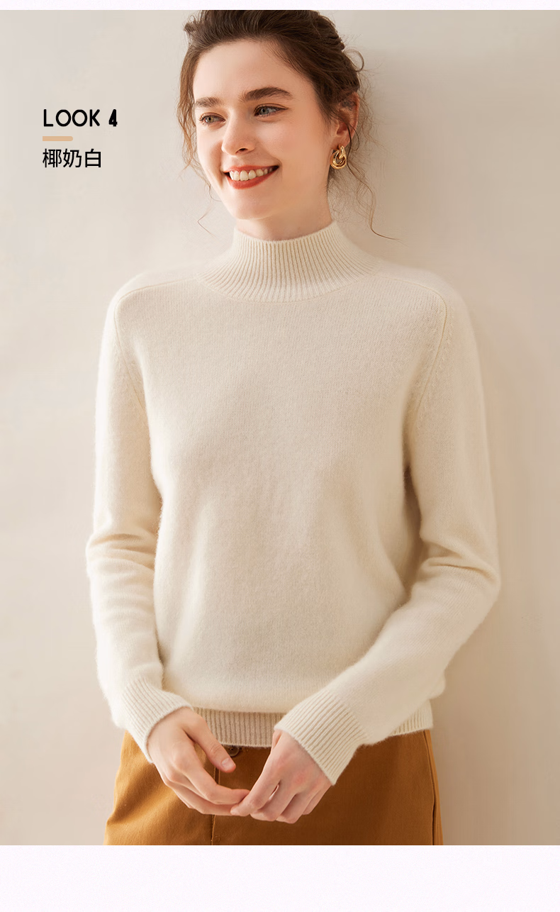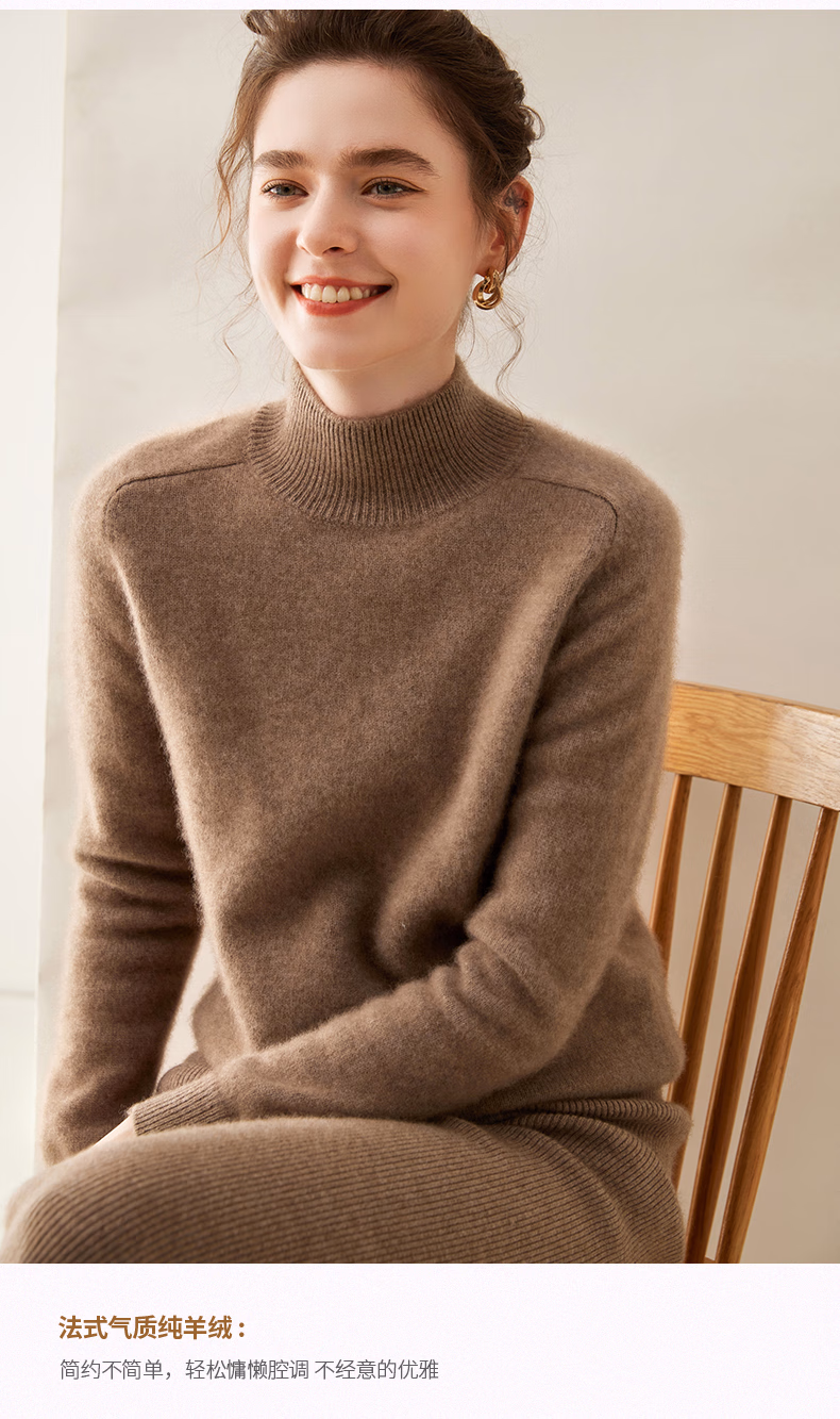 Ordo City Cashmere Sweater Women's 2025 Autumn and Winter New Thick Solid Color Warm Sweater Cashmere Knitted Bottoming Sweater Gao Yatuo S 80-100Jin Jin is equal to 0.5 kg