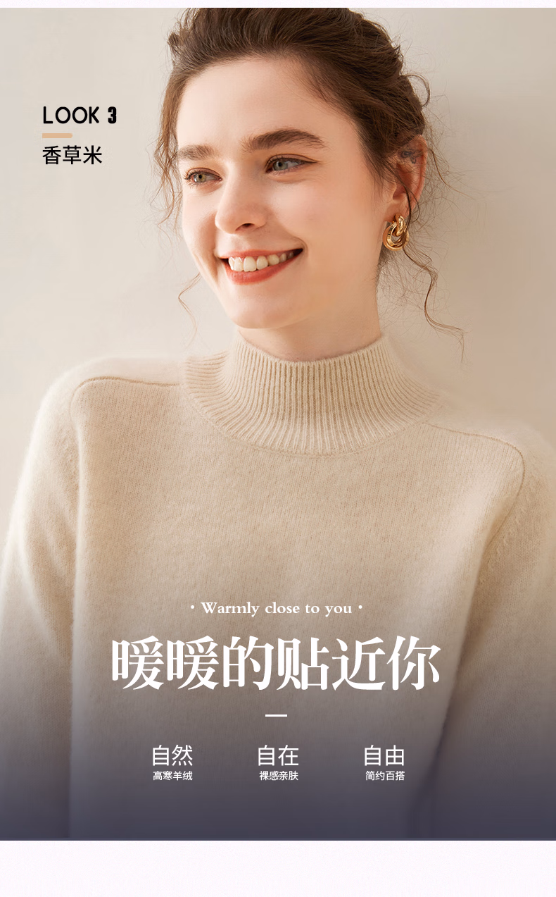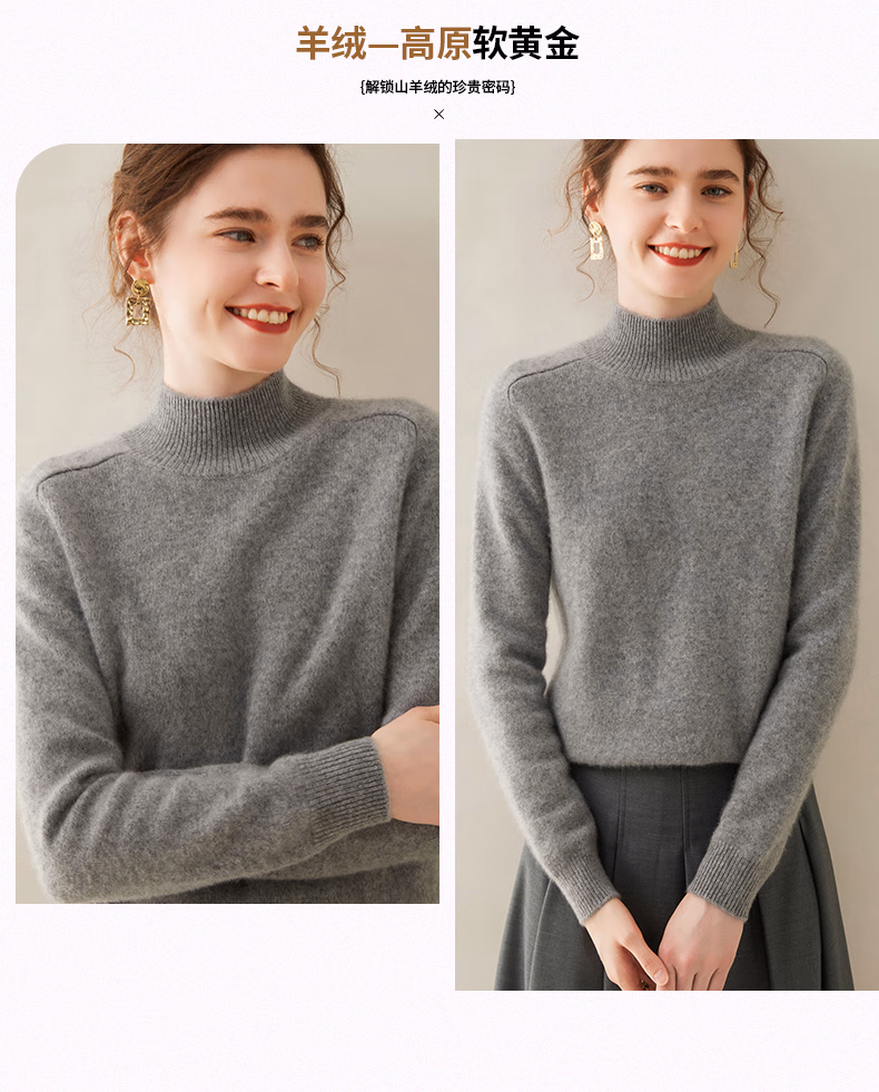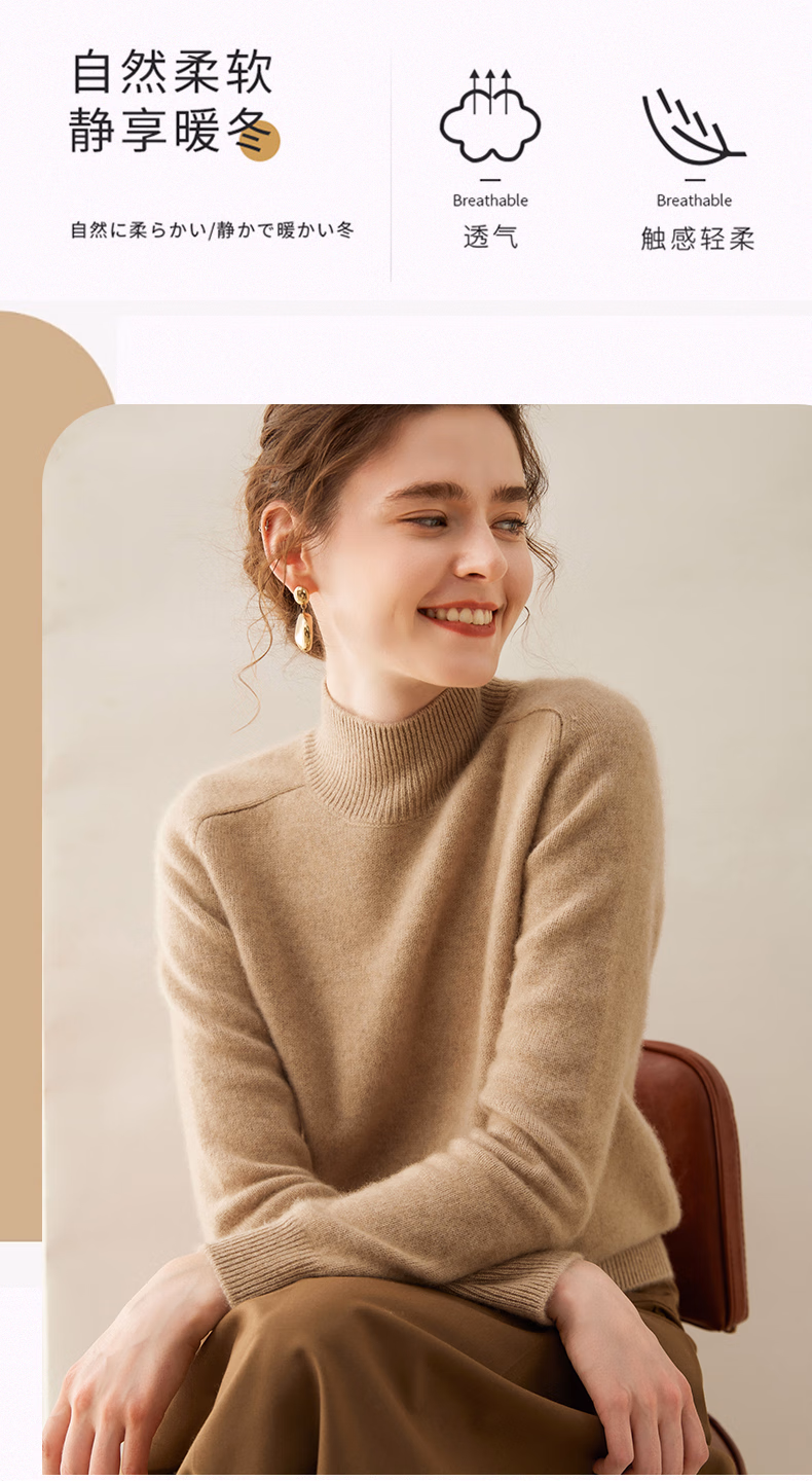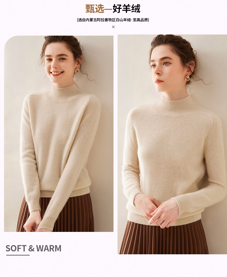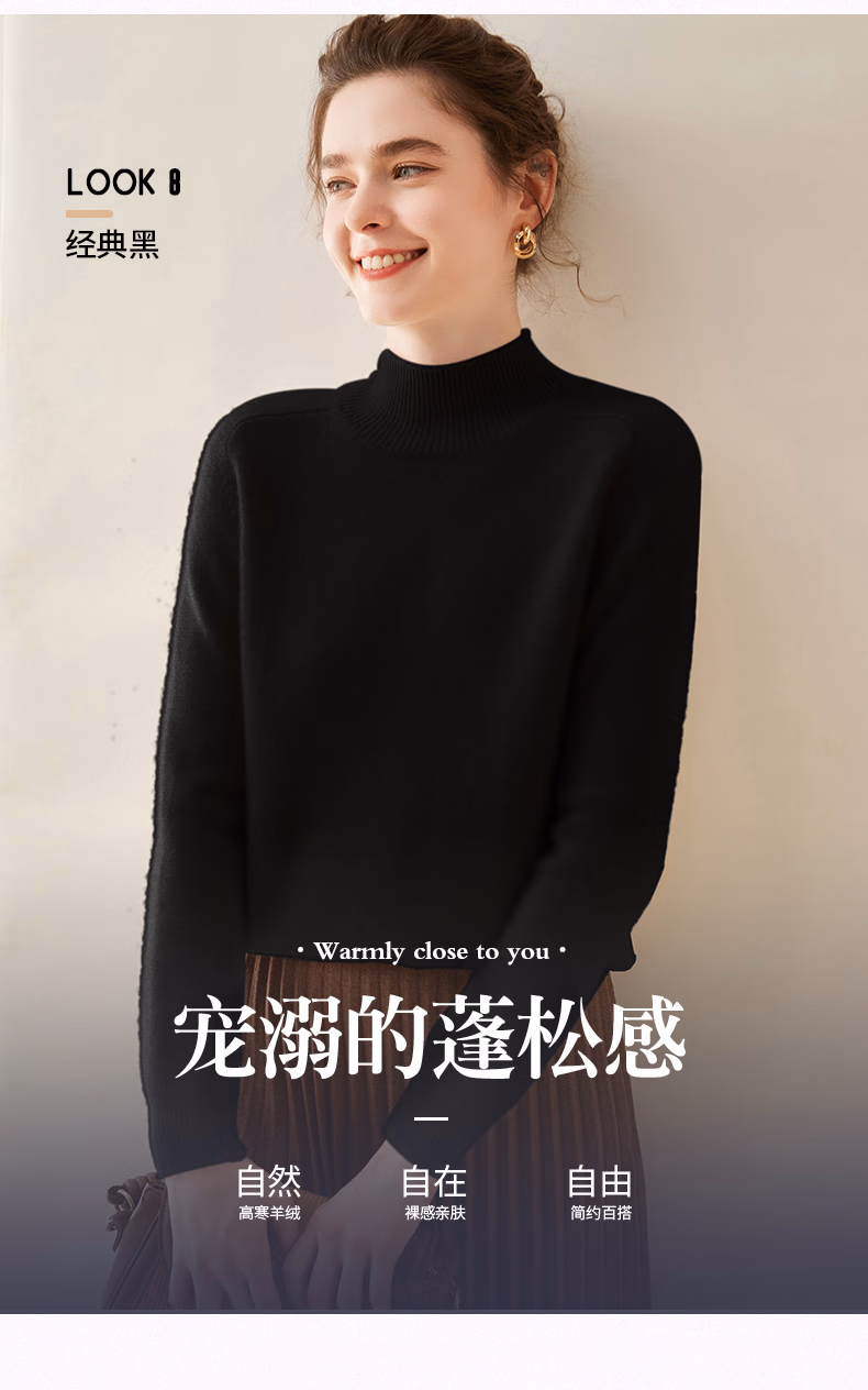 Ordo City Cashmere Sweater Women's 2025 Autumn and Winter New Thick Solid Color Warm Sweater Cashmere Knitted Bottoming Sweater Gao Yatuo S 80-100Jin Jin is equal to 0.5 kg