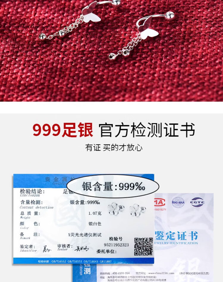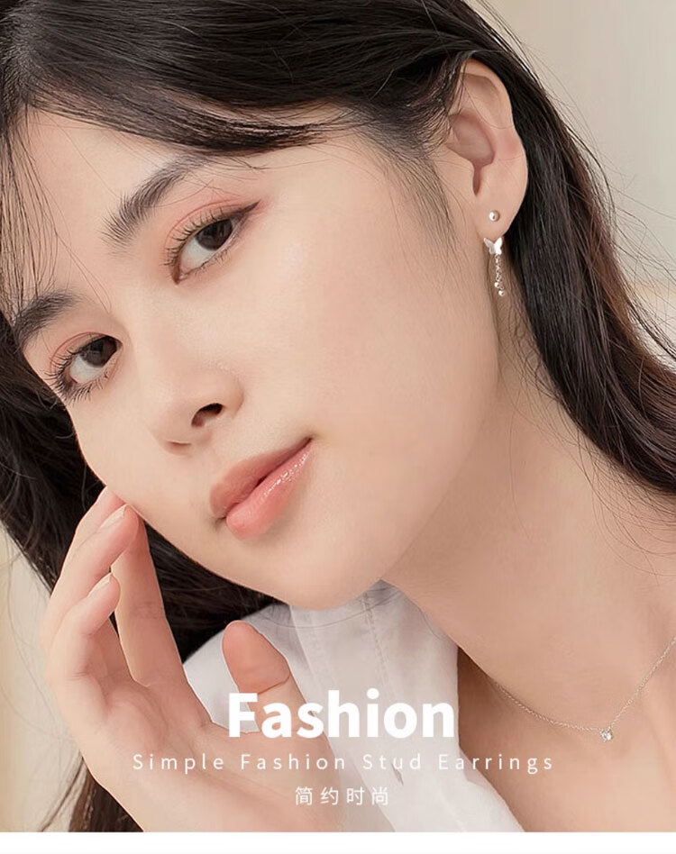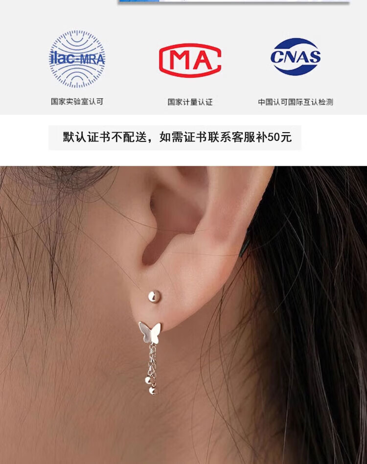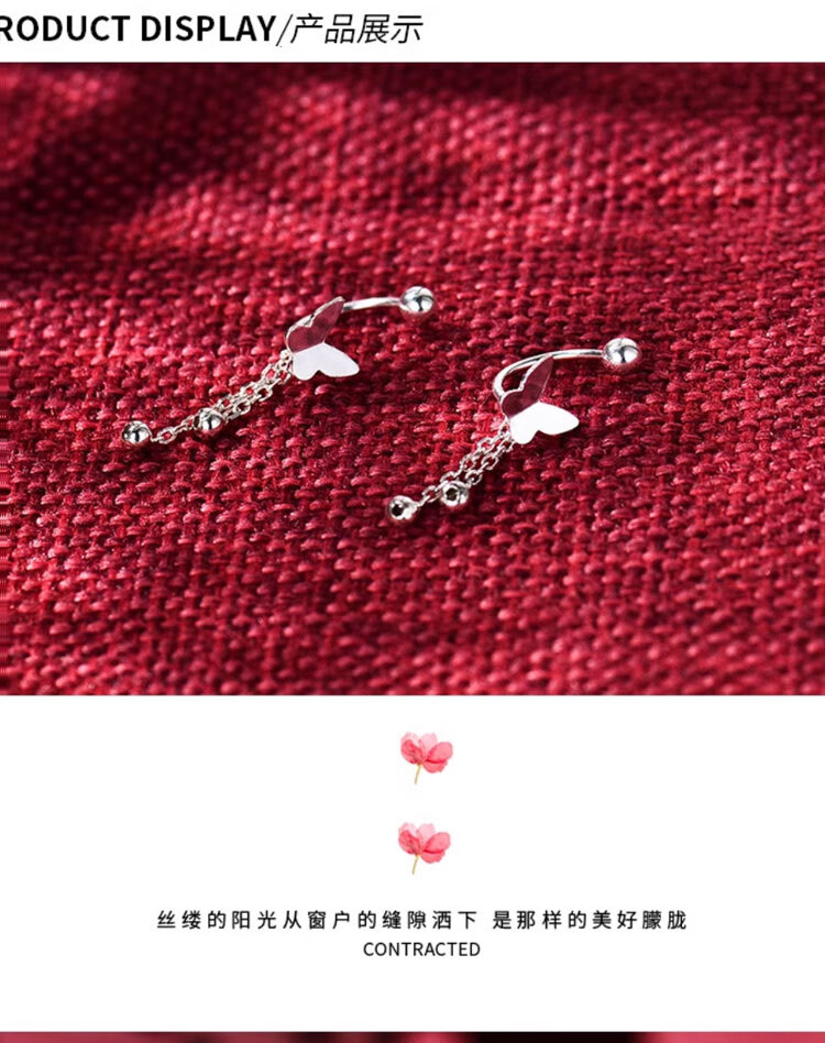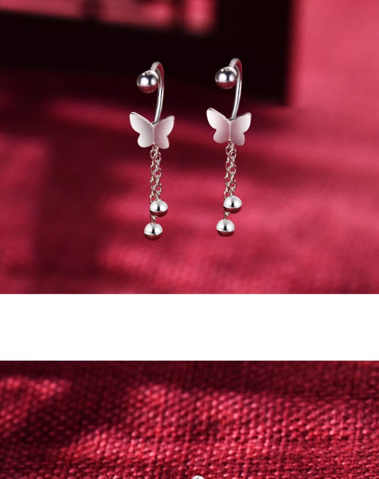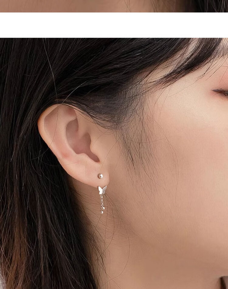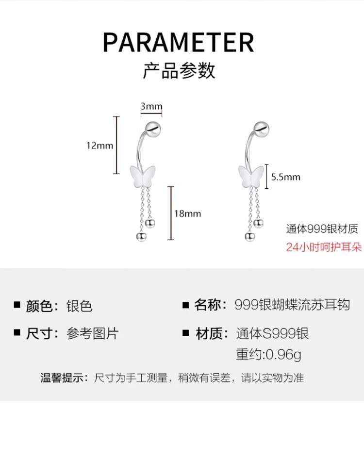 Mansheng S999 Pure Silver Butterfly Tassel Earrings Women's Niche Design High-end Earrings Screw Two Straps Sterling Silver Jewelry New S999 Pure Silver Butterfly Earrings Pair