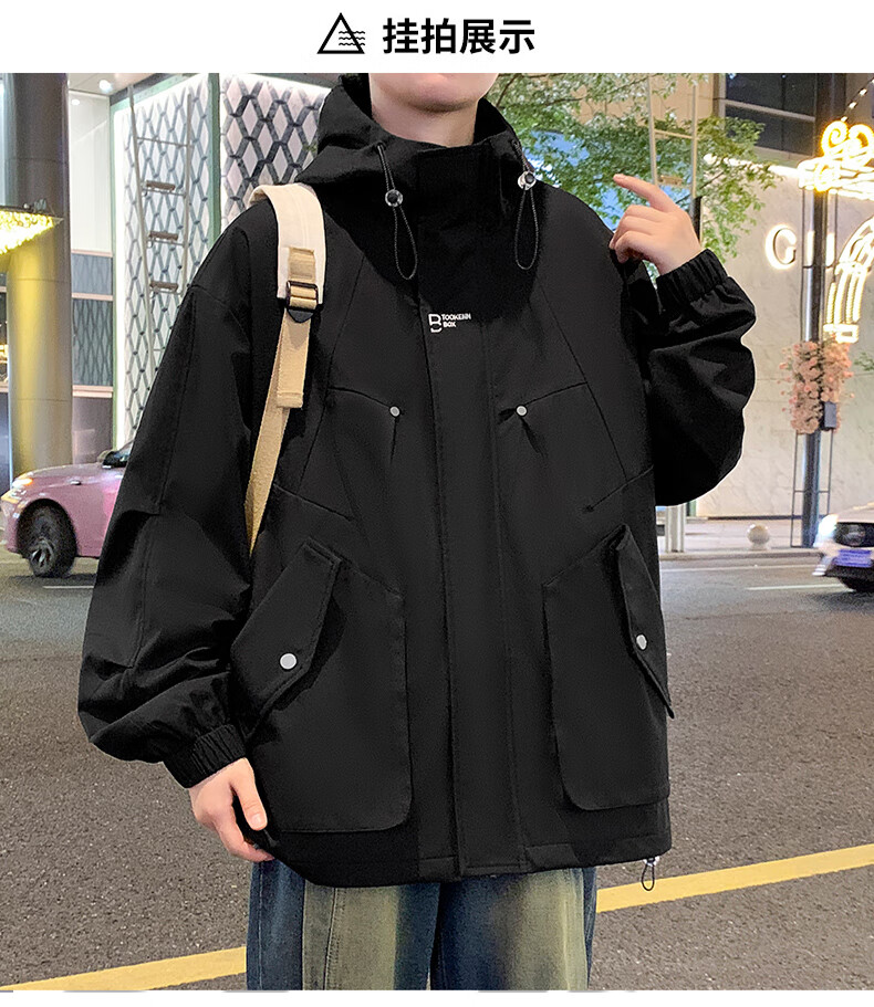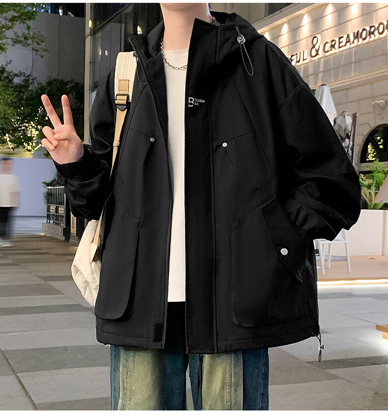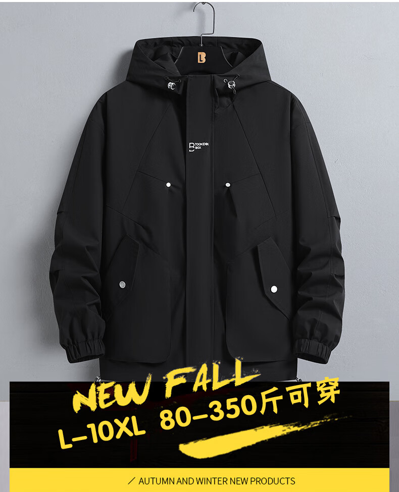 Karls large size men's cotton jacket men's trendy brand loose spring, autumn and winter plus fat plus fat work jacket student cotton jacket black (cotton winter style) 7XL (240-259Jin Jin equals 0.5 kg)