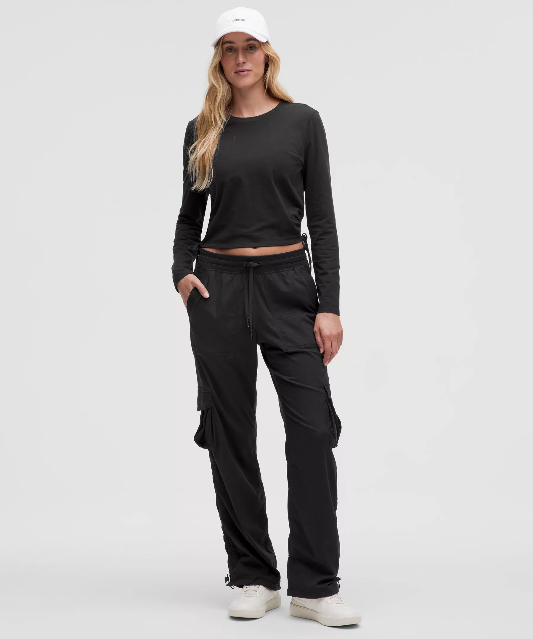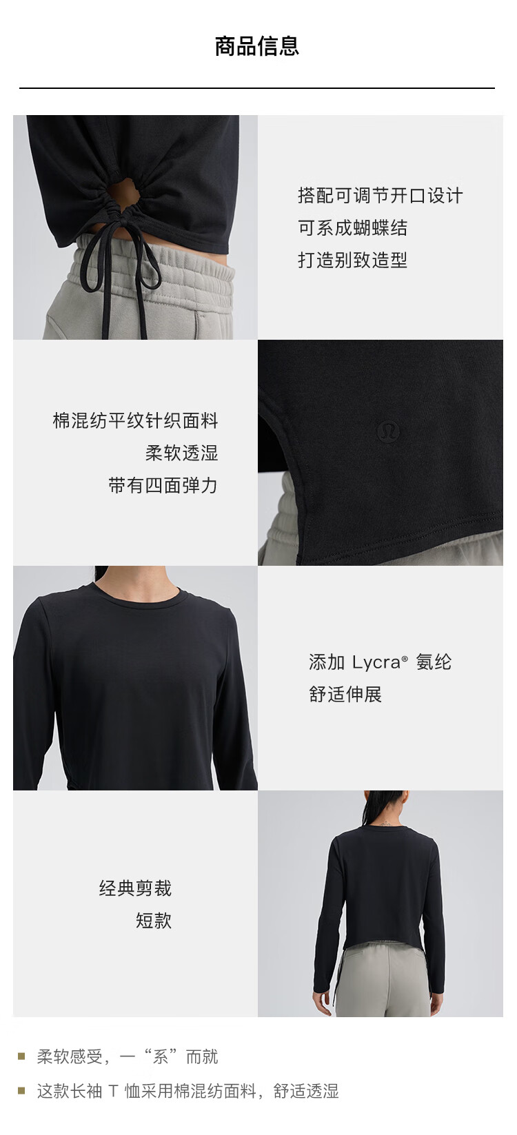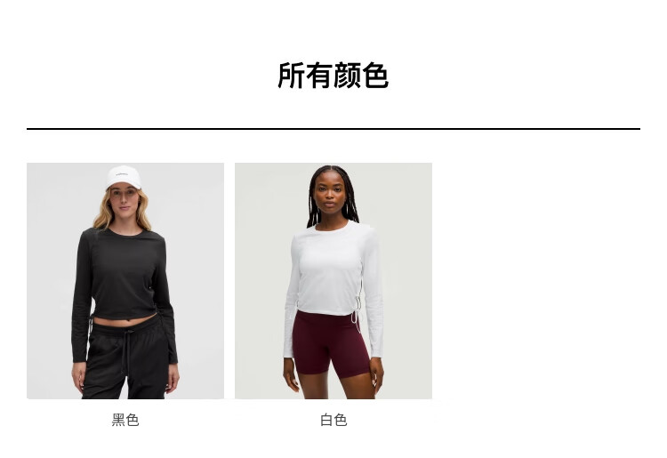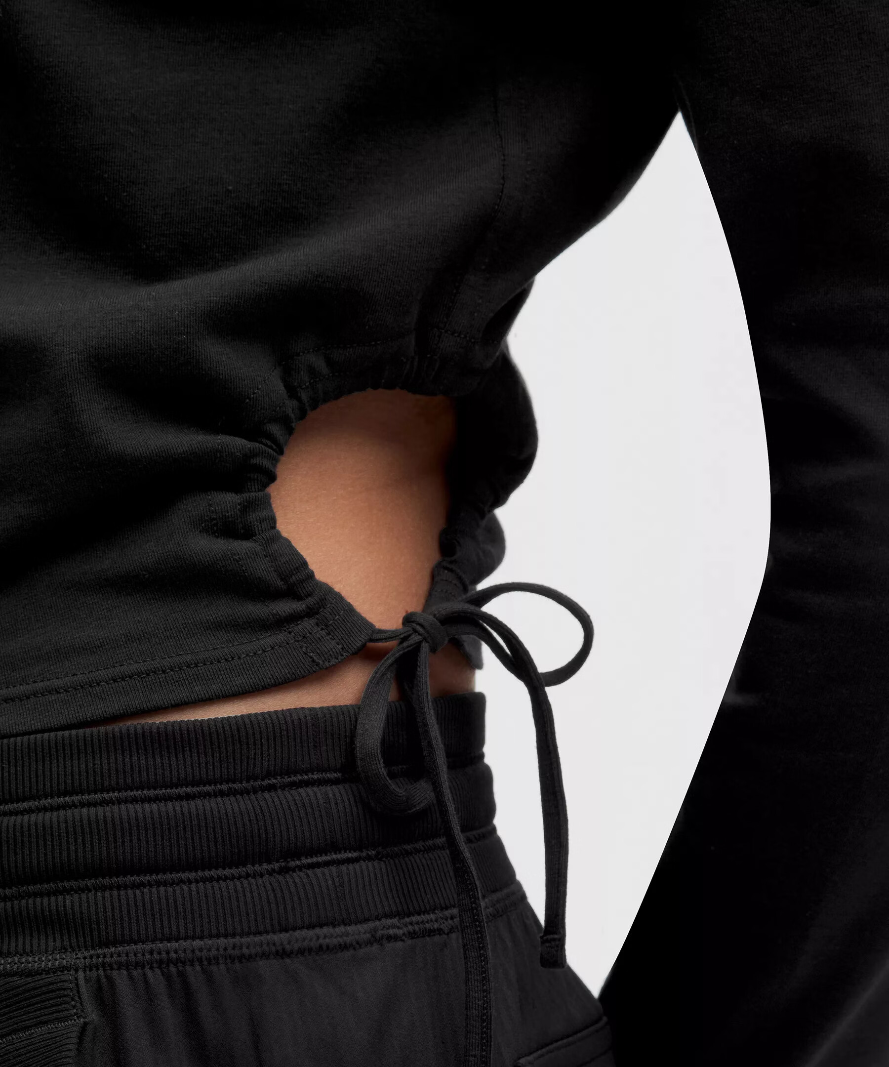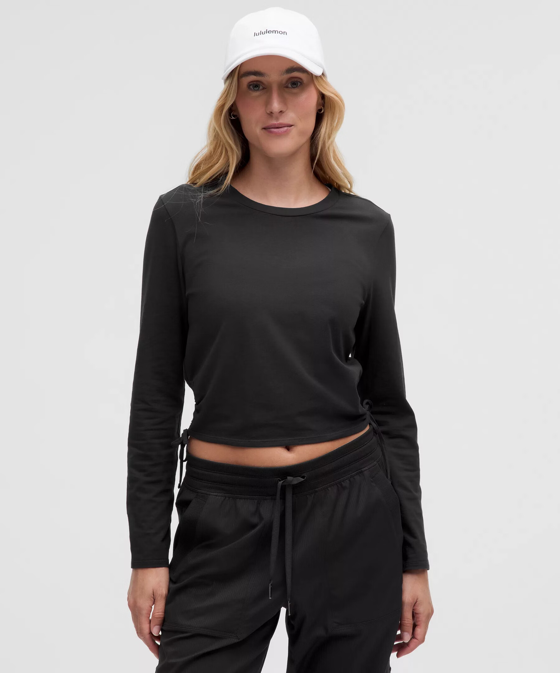 Lululemon丨Cinched women's lace-up adjustable open cotton blend long-sleeved T-shirt LW3IAAS black XS