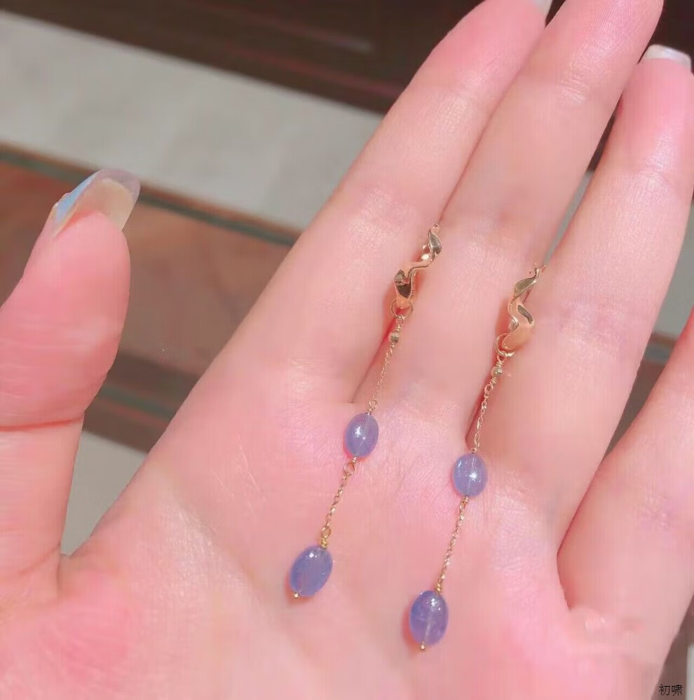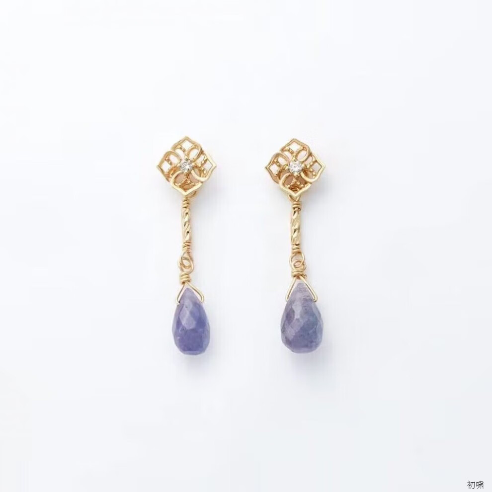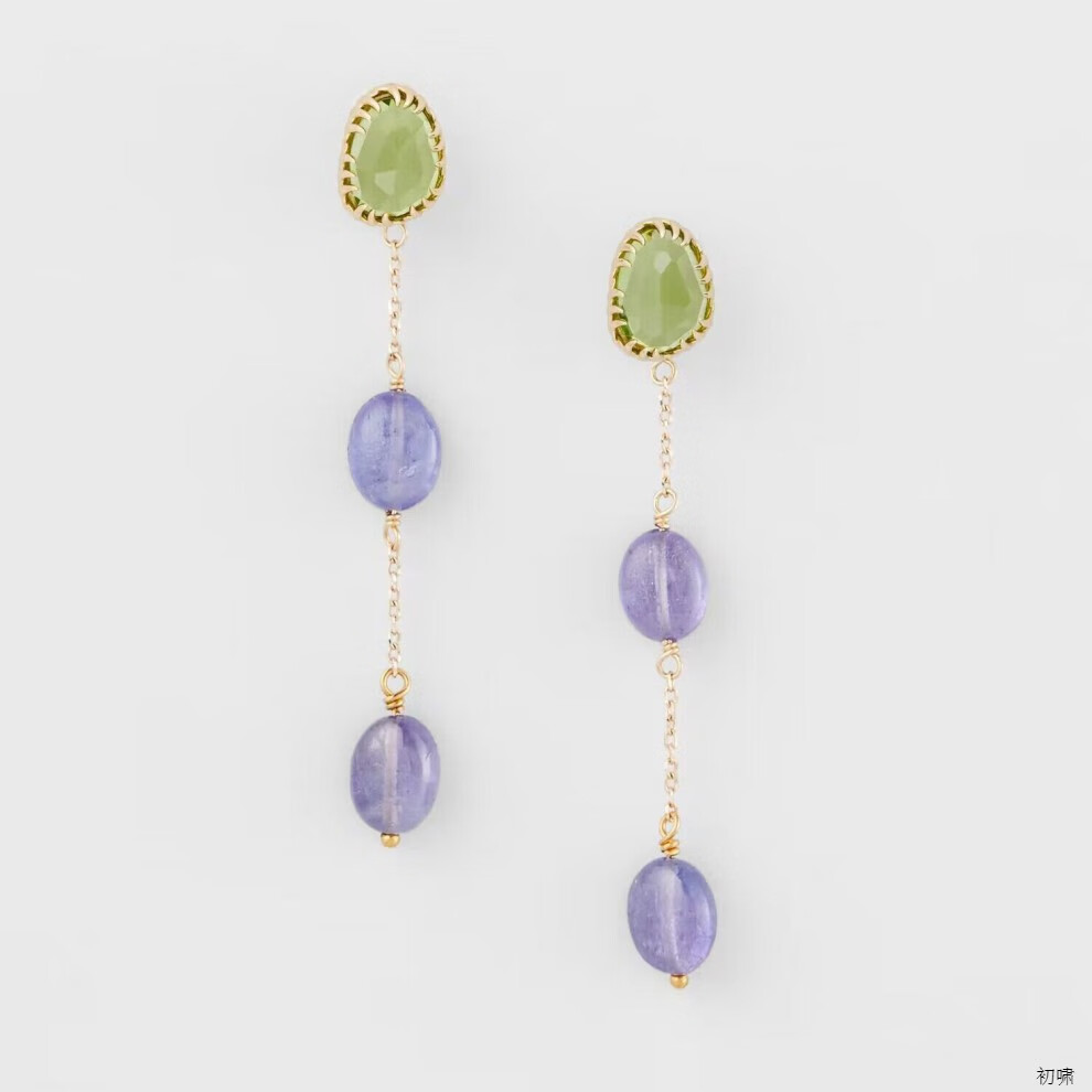 Yulong tanzanite earrings for girls Japanese aget retro tanzanite crystal gems elegant temperament versatile hydroperidot moonstone peridot pendant