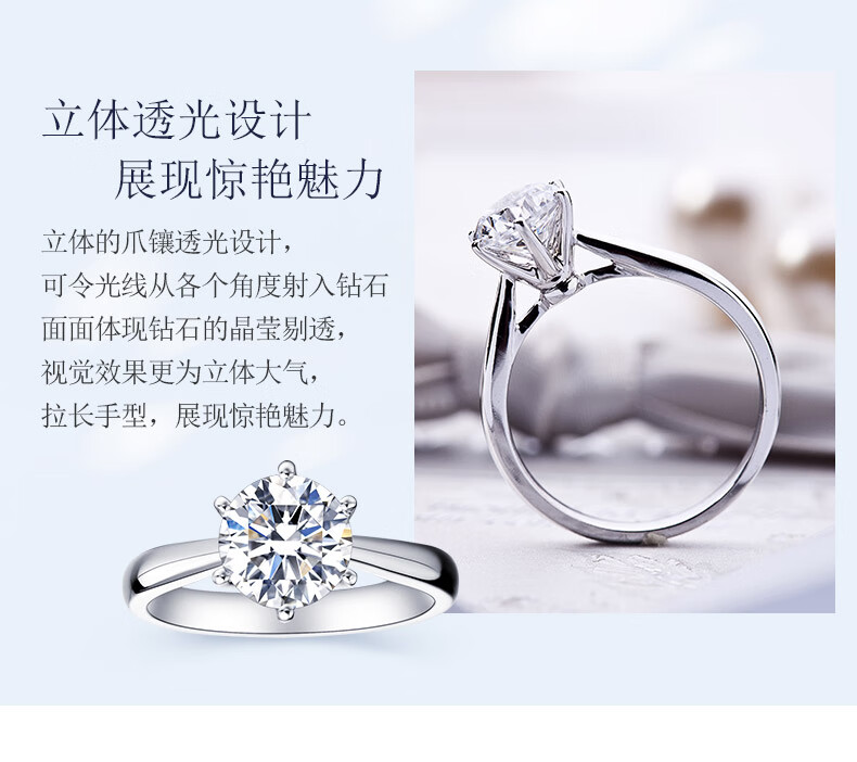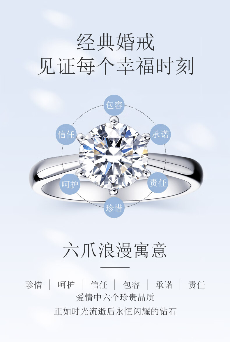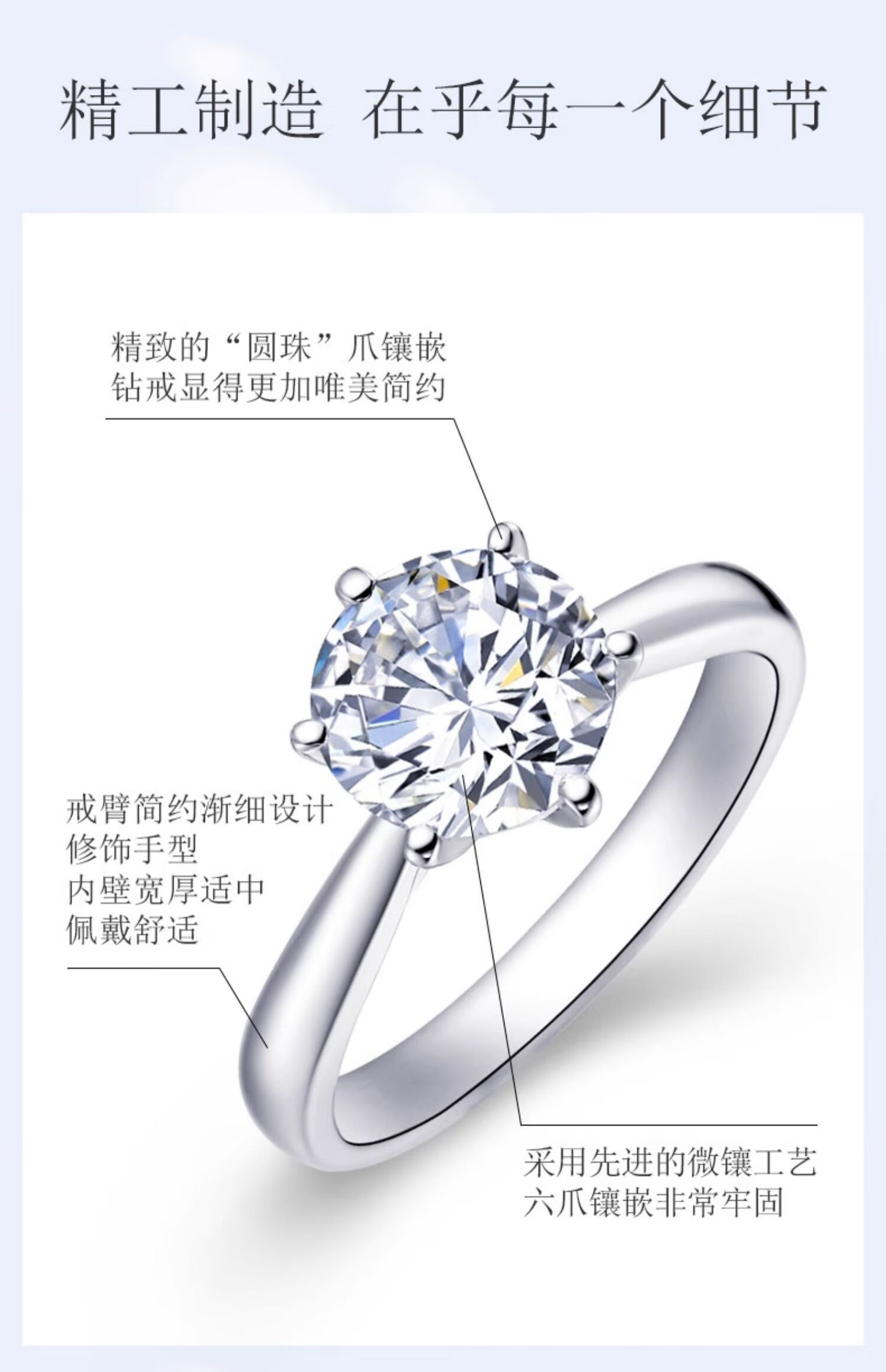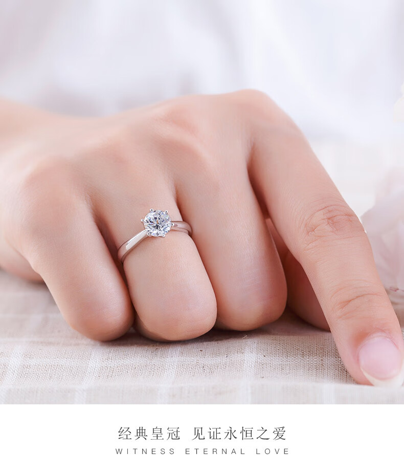 Luruo PT950 platinum diamond ring, classic six-claw 1 carat proposal and engagement natural real diamond ring for Valentine's Day for girlfriend, 1 carat (VVS/very slight imperfections) size 15