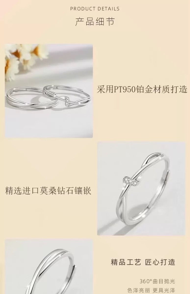 Luruo IDo platinum pt950 diamond ring Moebius couple ring light luxury engagement ring Valentine's Day gift to girlfriend platinum women's single ring-live mouth
