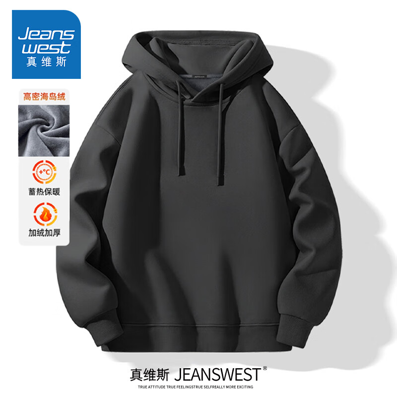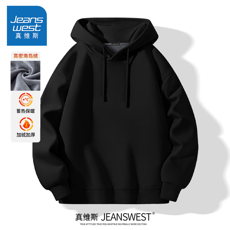 Jeanswest fleece sweatshirt for men 2026 new winter American men's style youth student large size autumn and winter thickened hoodie black (hidden cat) XL (180) (does not pill or fade)