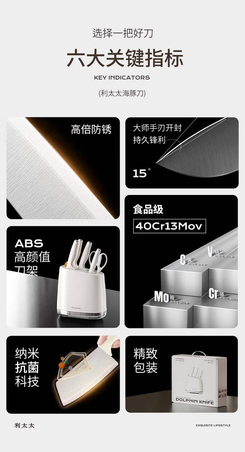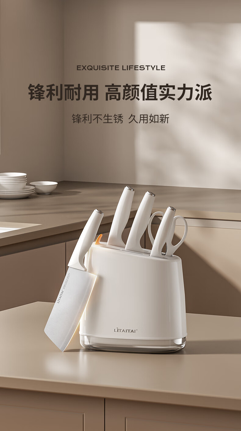 Mrs. Lee household kitchen knife set three-piece set of 5 complete set of women's food supplement bone chopping knife and cutting board two-in-one light luxury 80% cost-effective customer choice 7-piece set