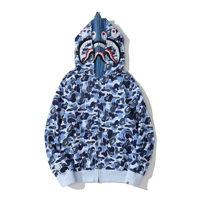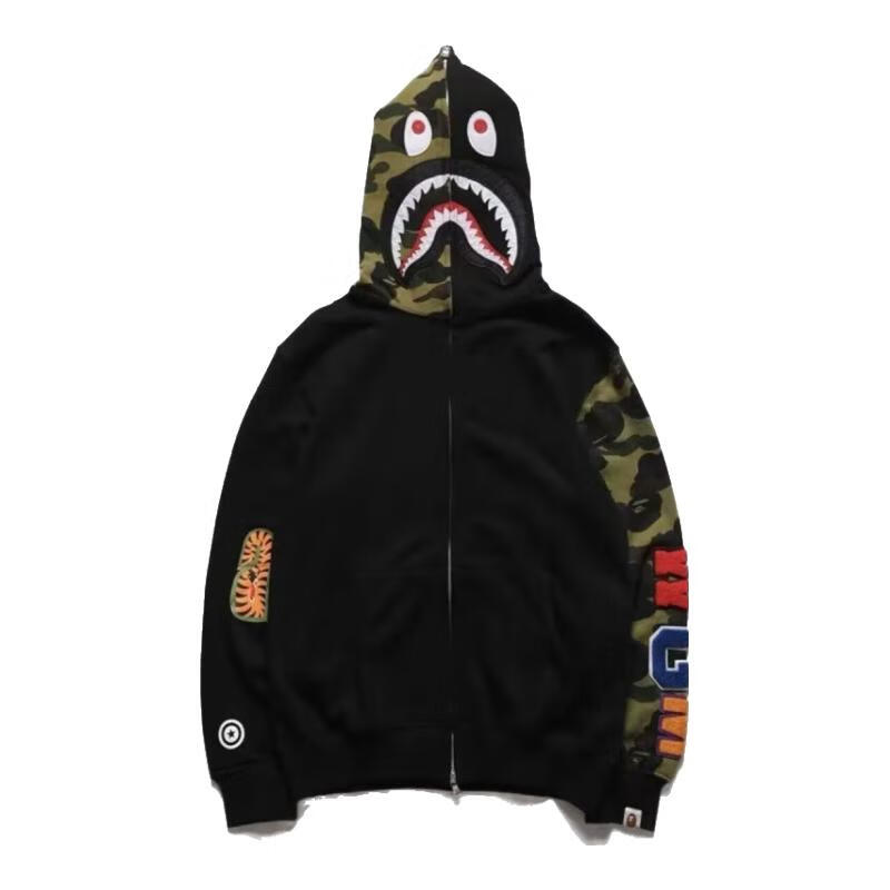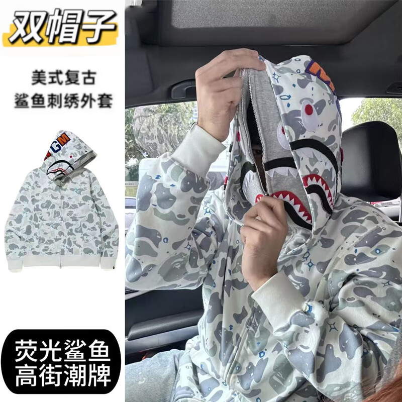 An Chuxia spring and autumn new style ape shark jacket men's embroidered letters double hood shark sweatshirt student couple cardigan clothes trendy W28 white personalized double hood design XL recommended 130-150Jin Jin equals 0.5 kg