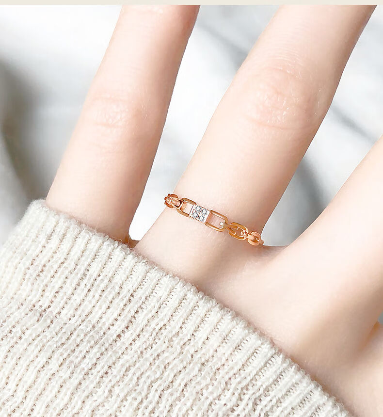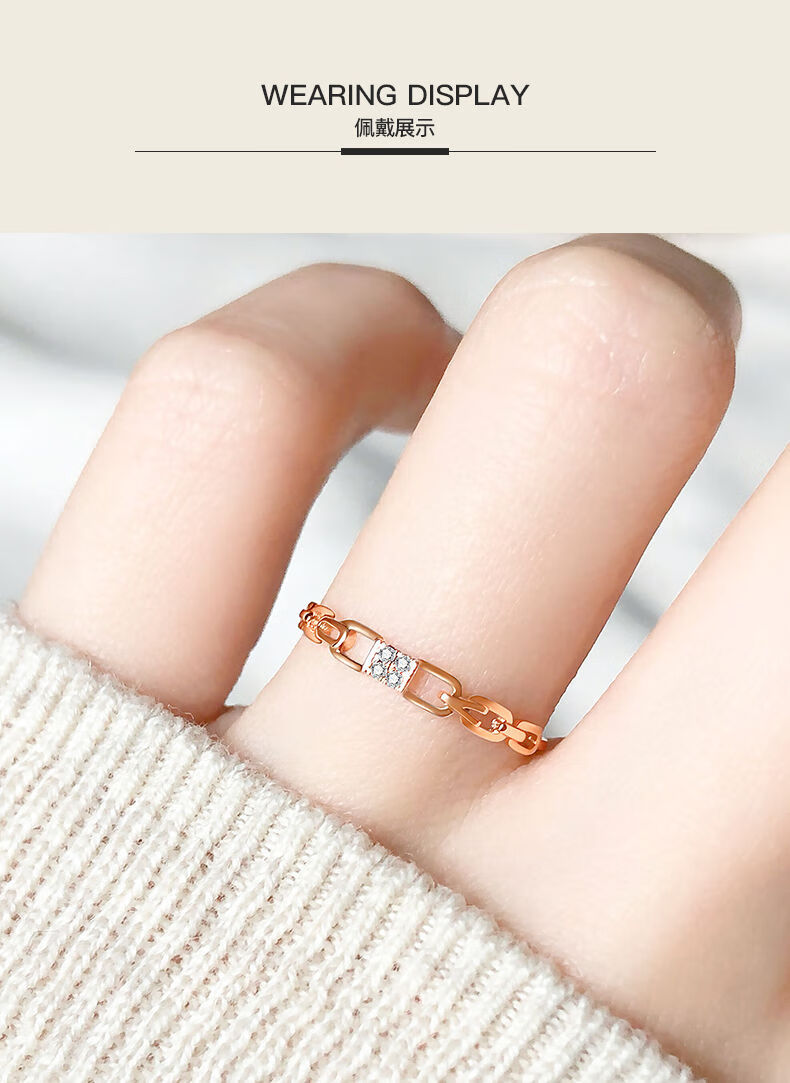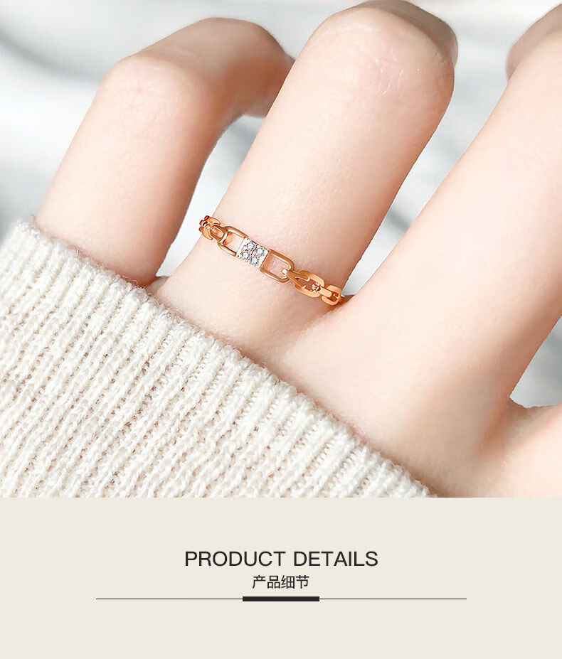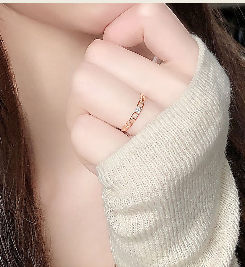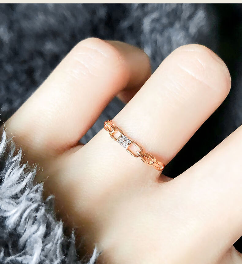 Zhongyi color gold diamond ring 18k rose gold ring interlocking ring au750 ring personalized versatile women's 18k rose gold diamond ring No. 10