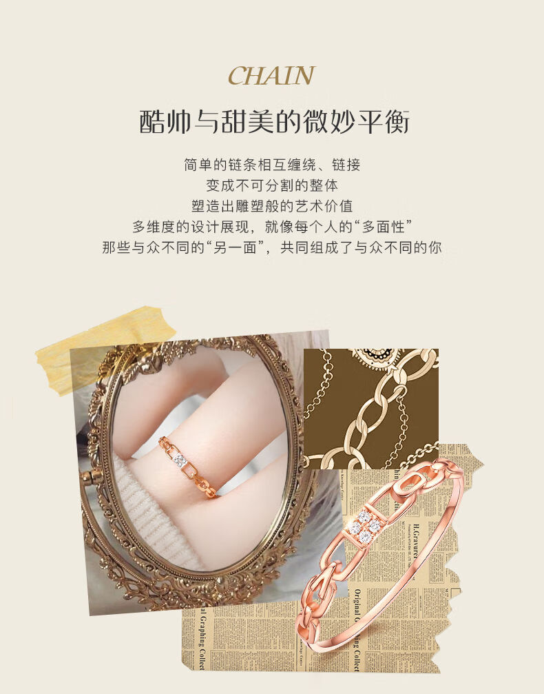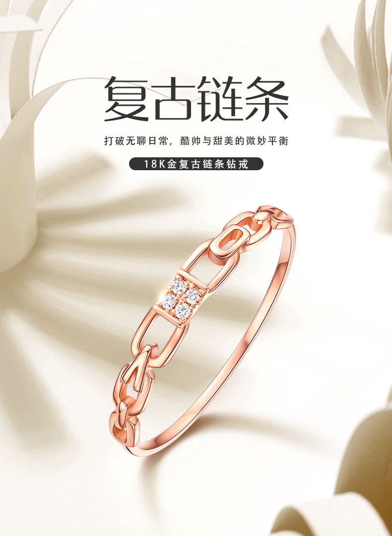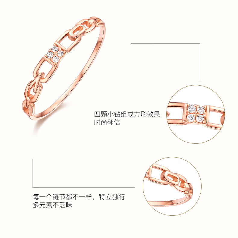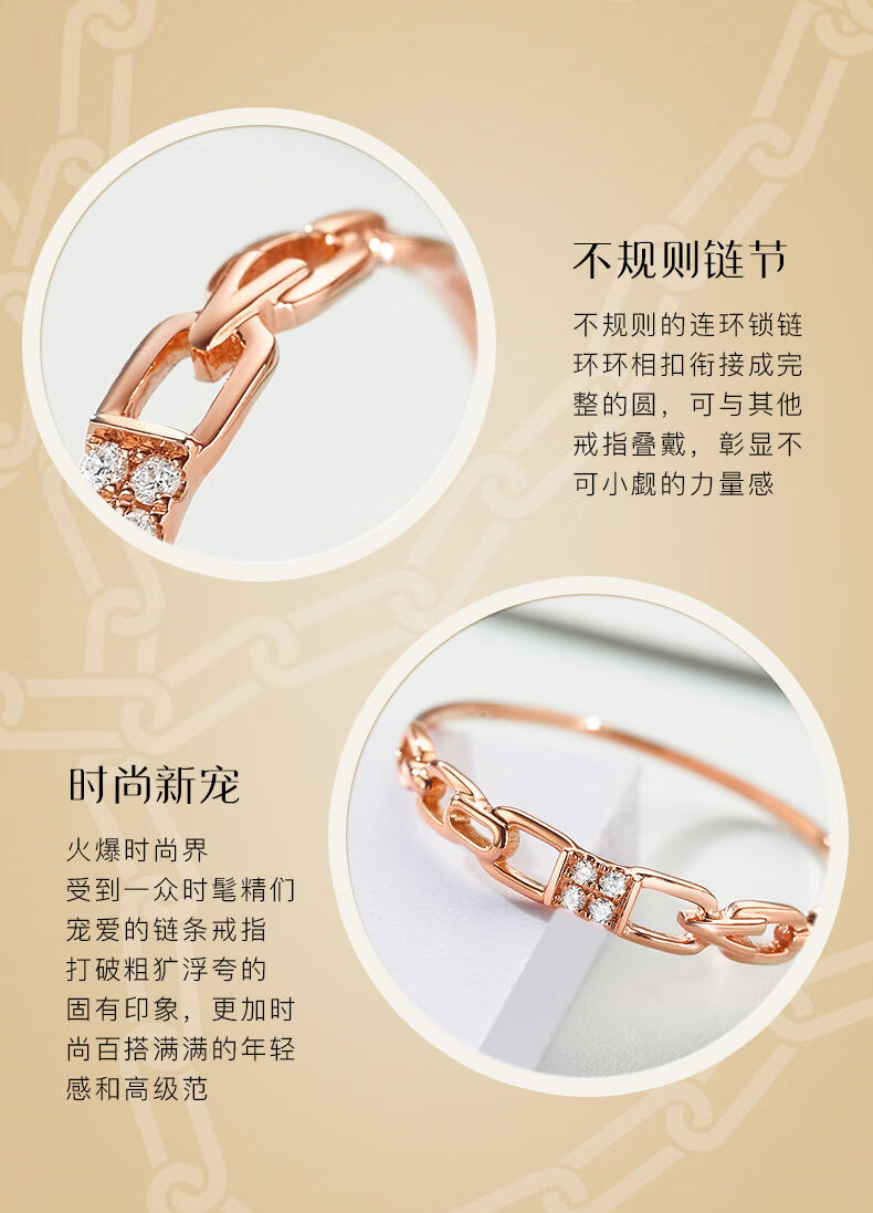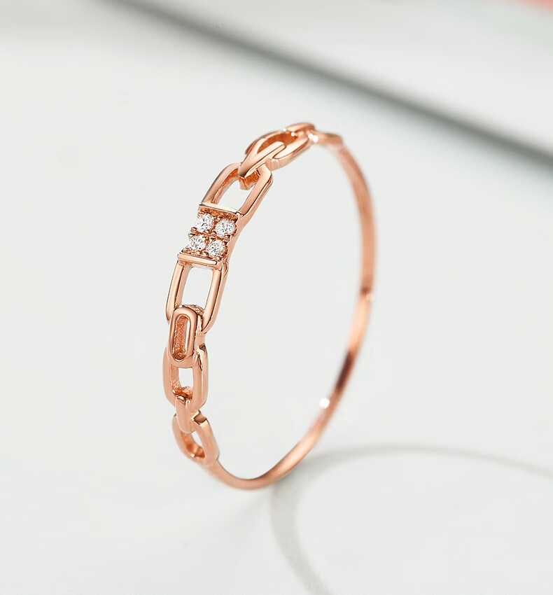 Zhongyi color gold diamond ring 18k rose gold ring interlocking ring au750 ring personalized versatile women's 18k rose gold diamond ring No. 10
