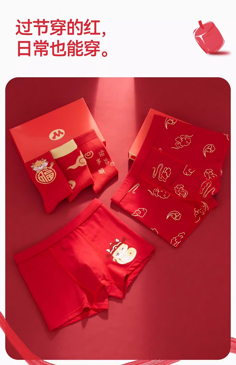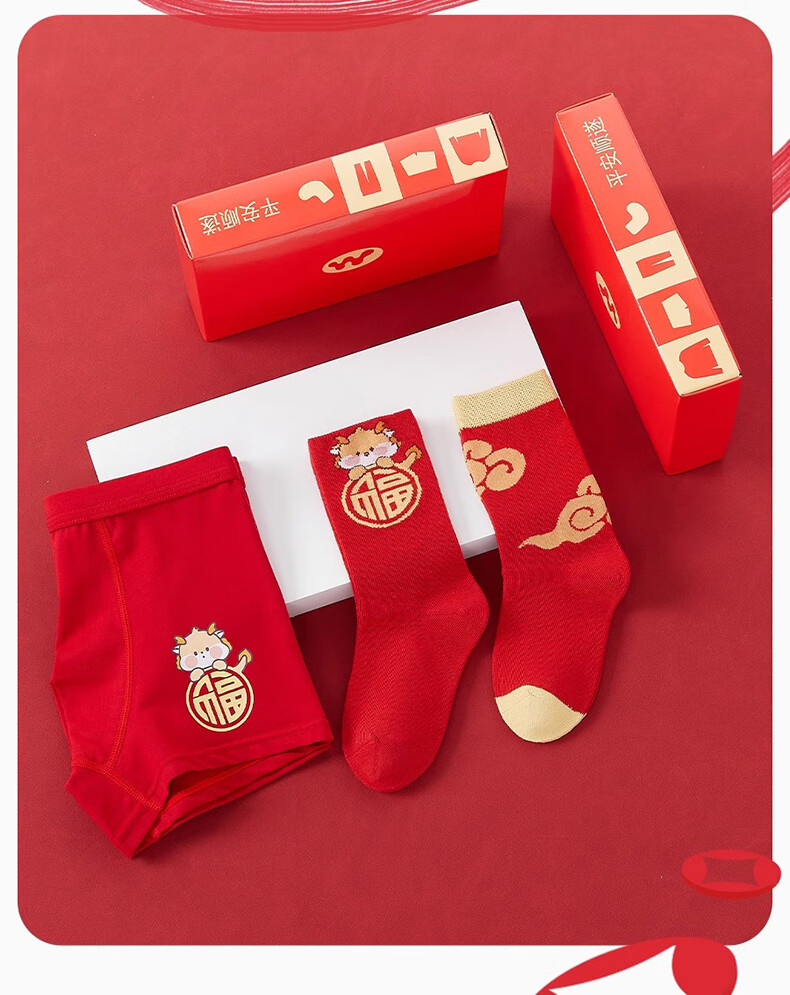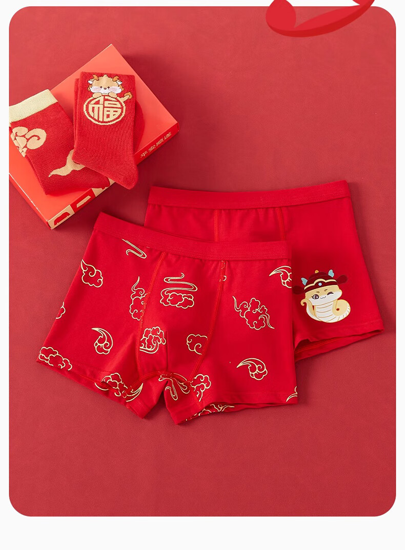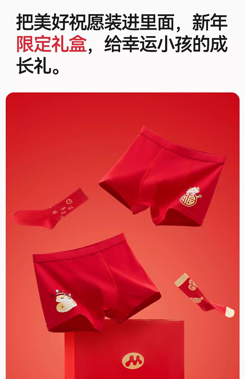 Mianqi Xiong children's red underwear pure cotton type a boys' zodiac year shorts gift box set 2026 new year of the horse baby pants everything goes well - underwear * 2 pairs + socks * 2 pairs - 4 pairs 150 -3XL code weight 65-85Jin Jin is equal to 0.5 kg