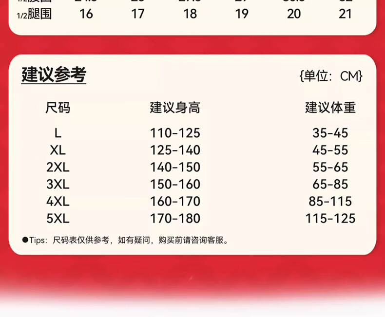 China (cm) 160-165/84-86 165-170 / 88-90 167-172 / 92-96 168-173 / 98-102 170-176 / 106-110