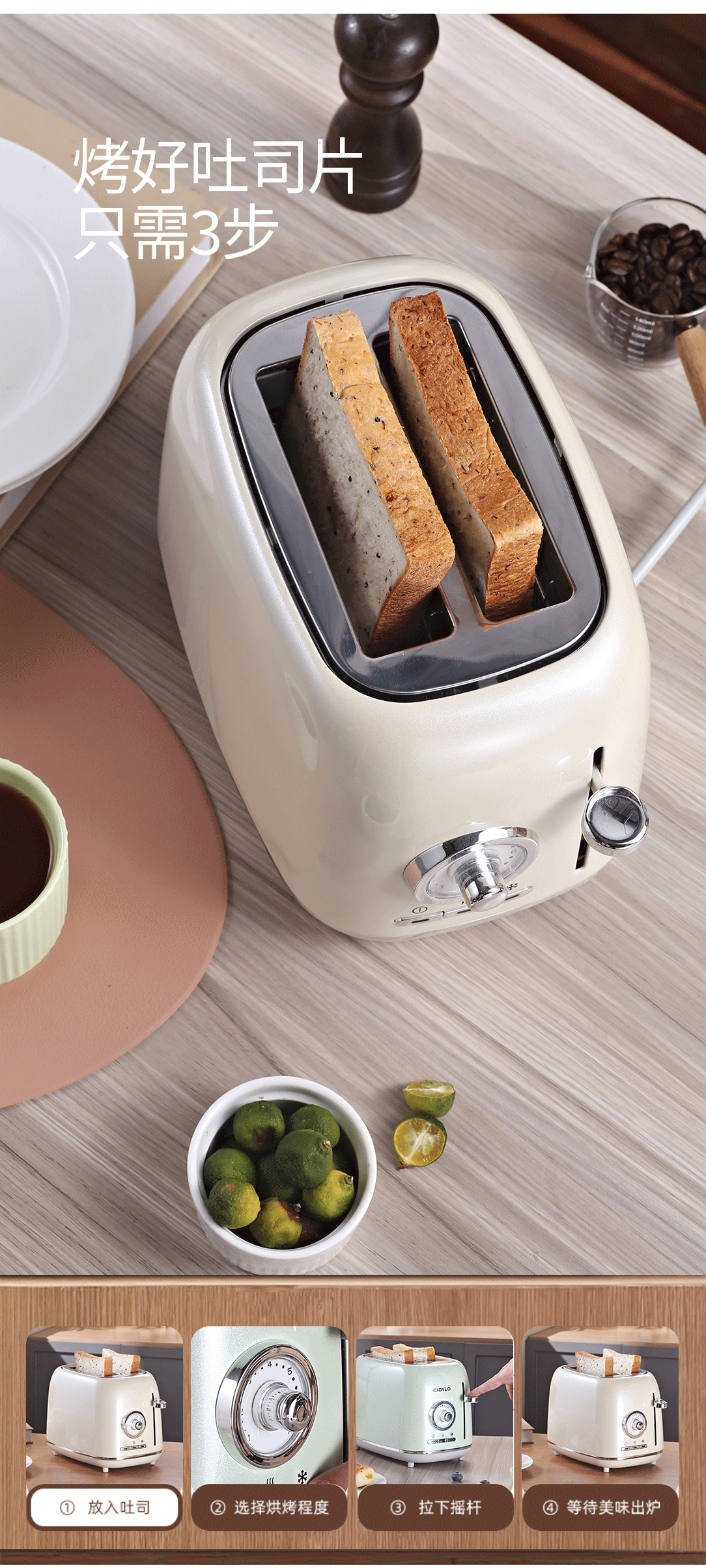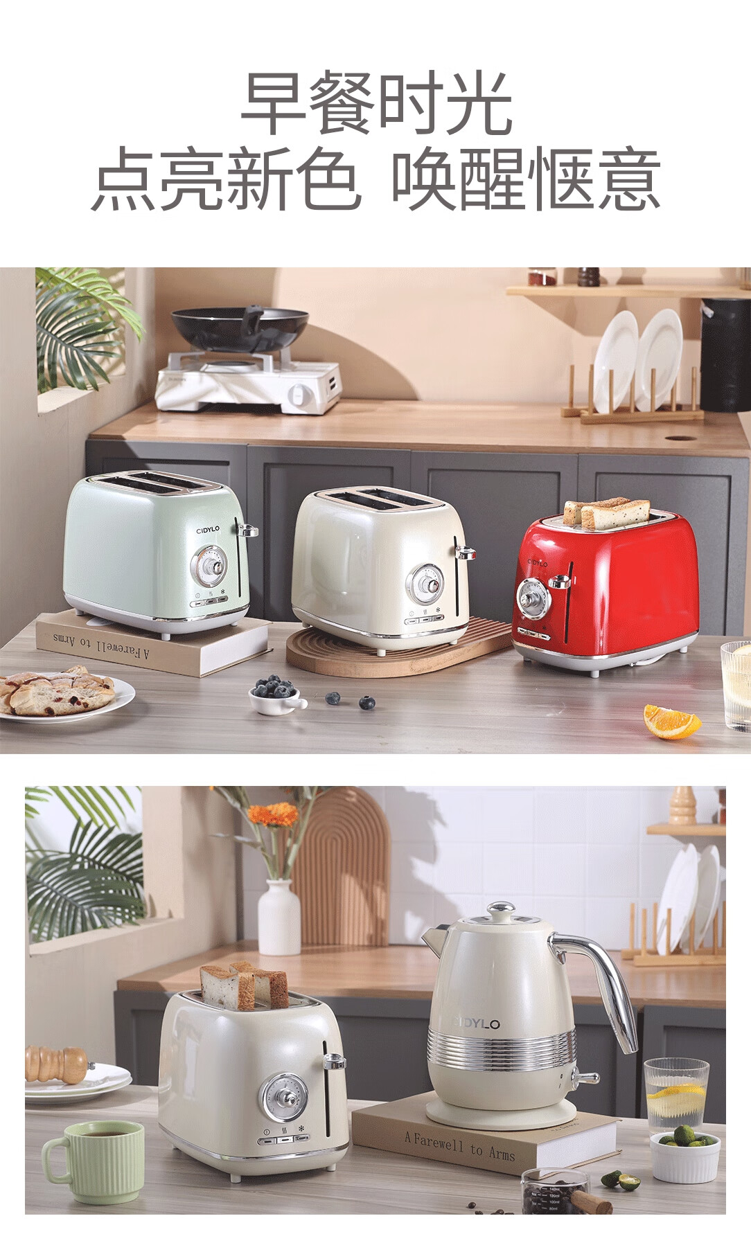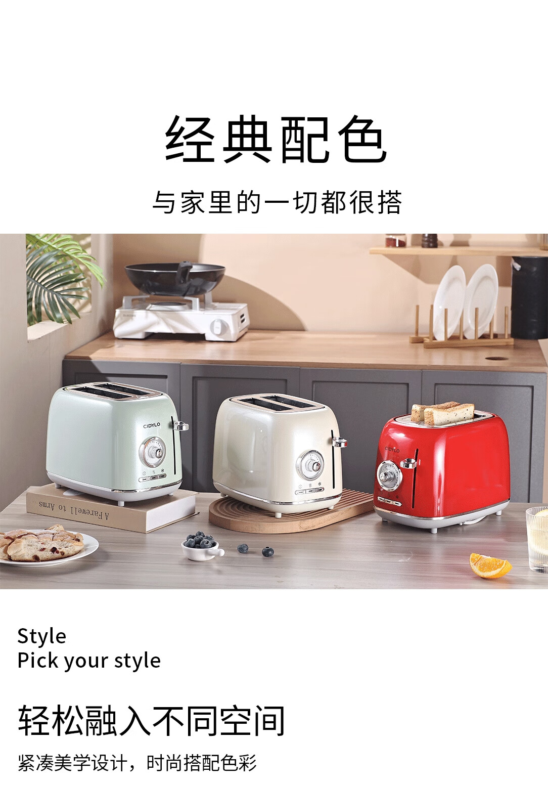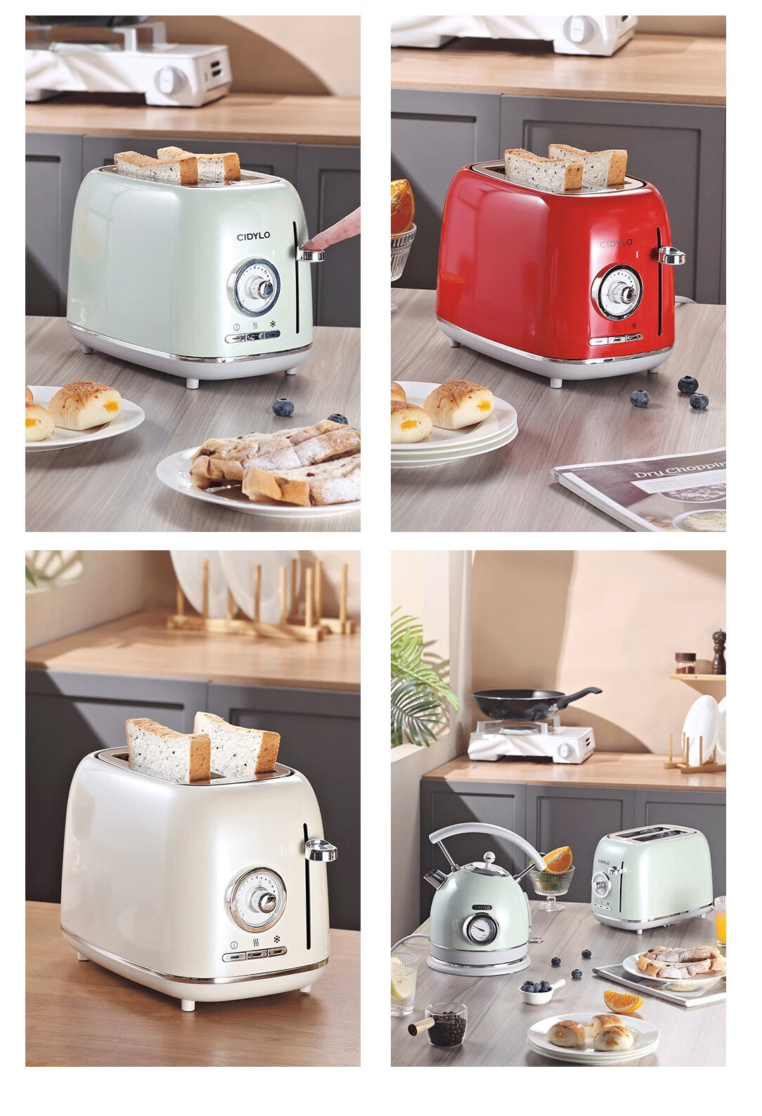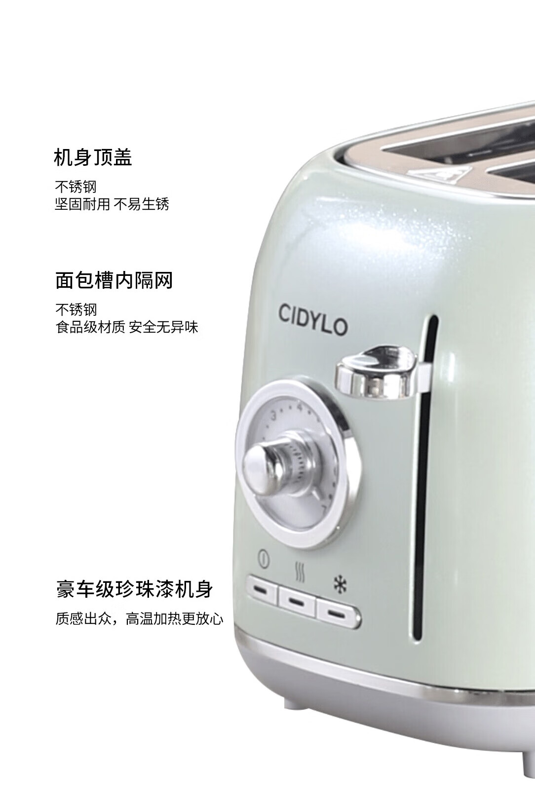 Sidile European retro toaster plus double slot double-sided baking sandwich machine breakfast machine toaster fully automatic toaster one-piece two-piece pearl green