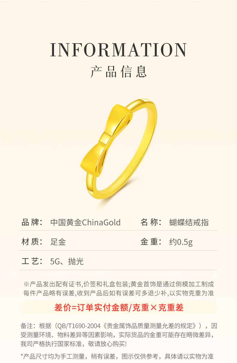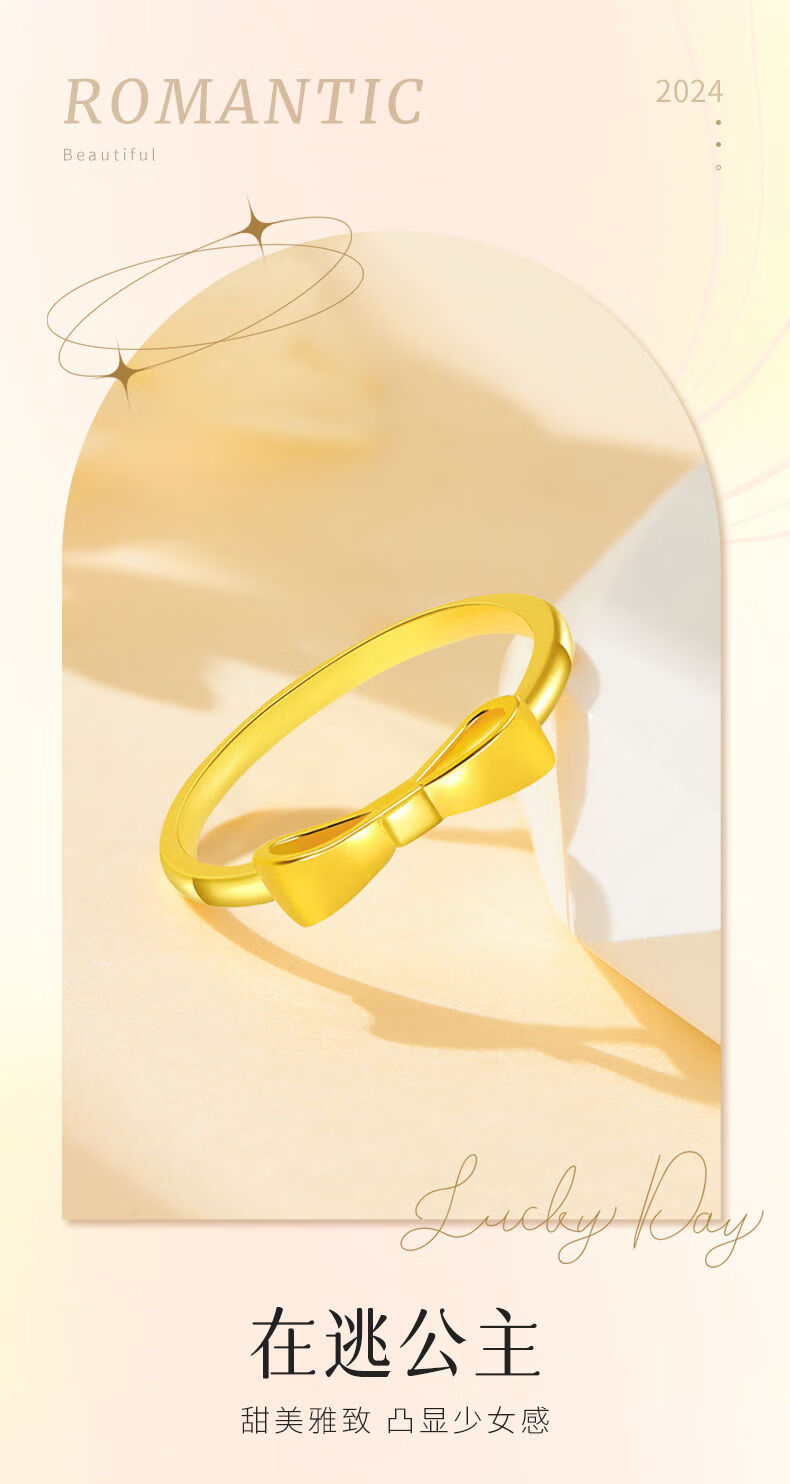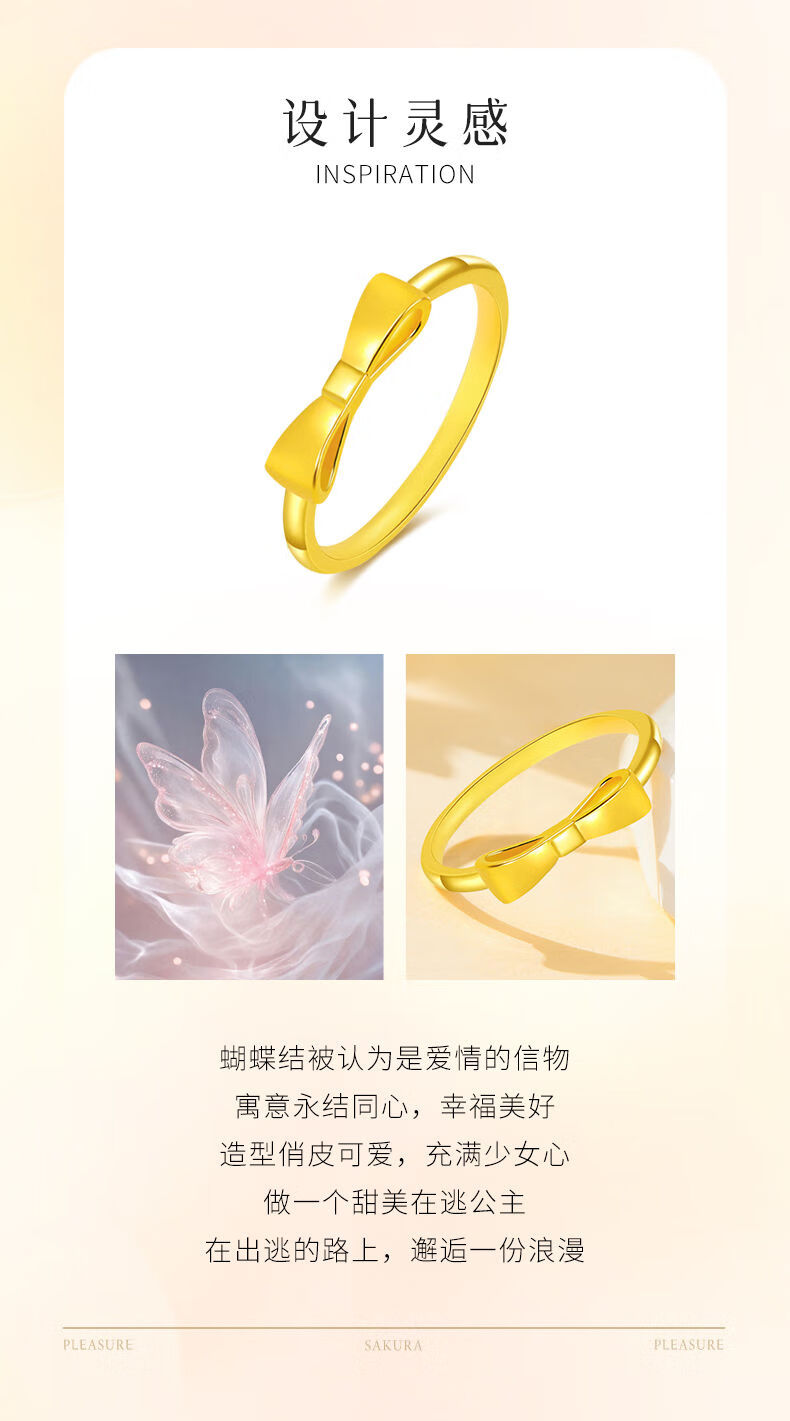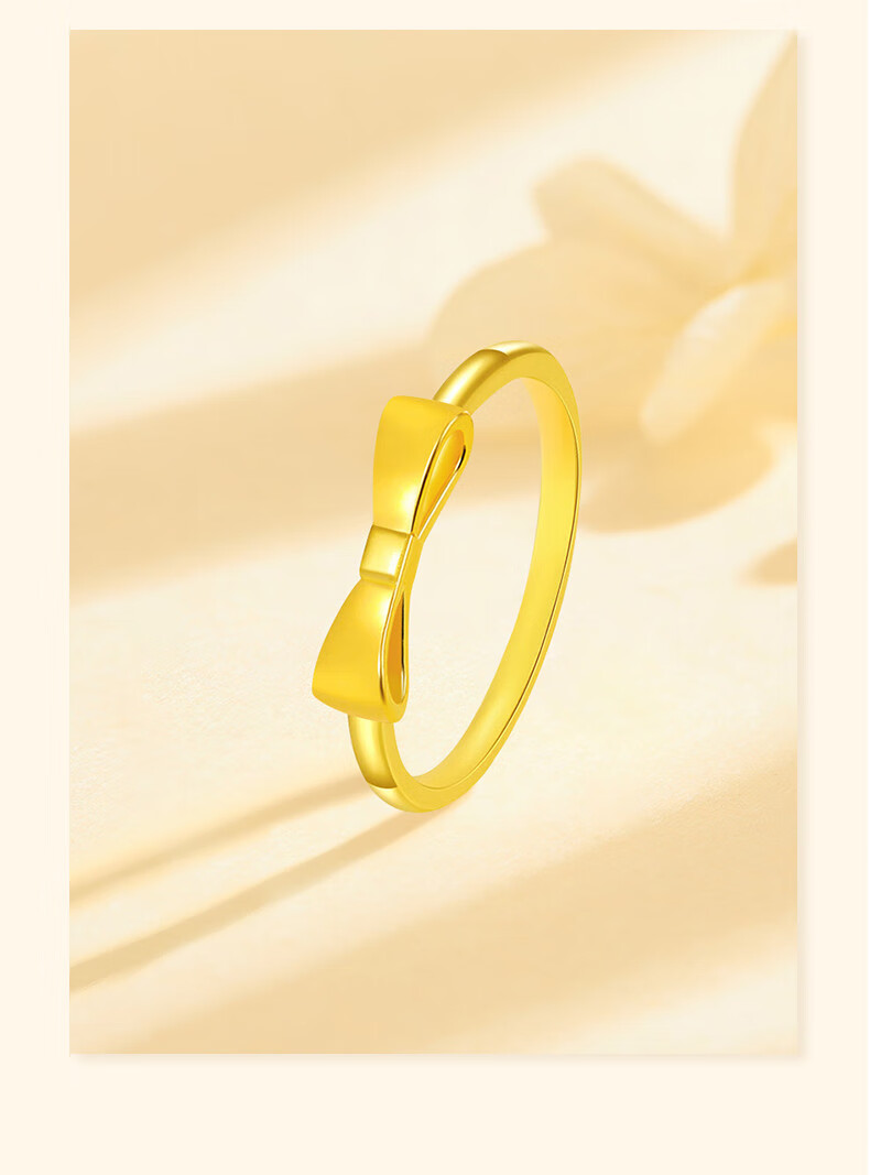 Zhongyi Princess Ring Pure Gold Women's New Bow Valentine's Day Birthday Gift for Girlfriend Bow Ring Approximately 0.5g Size 11 + Rose