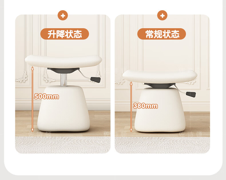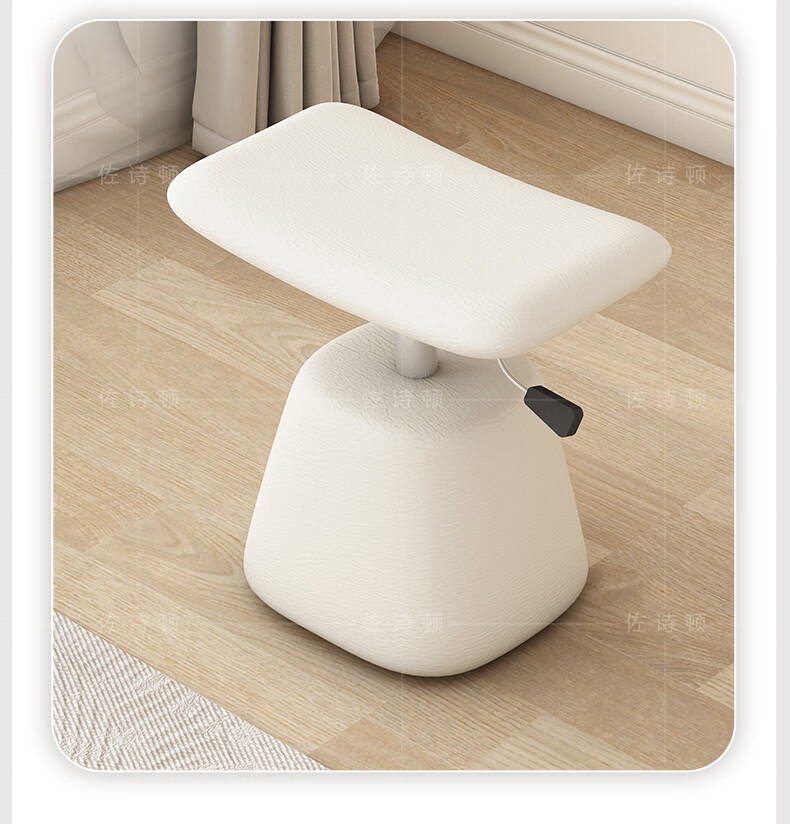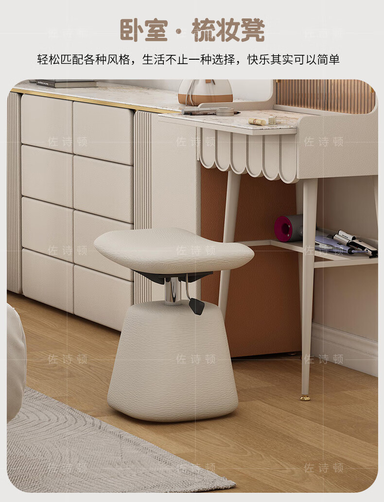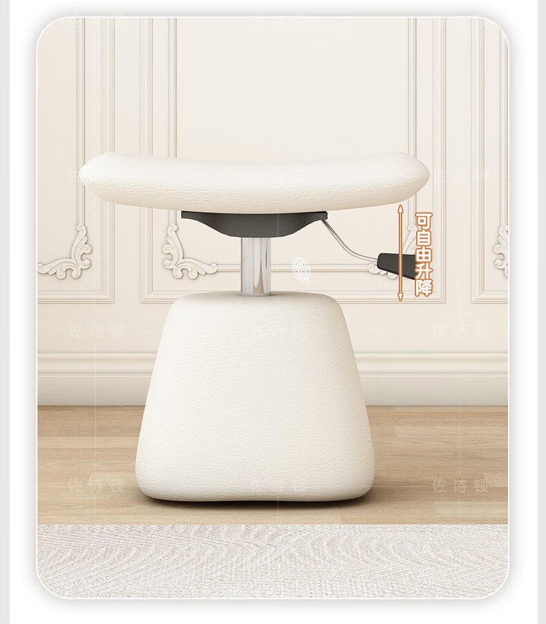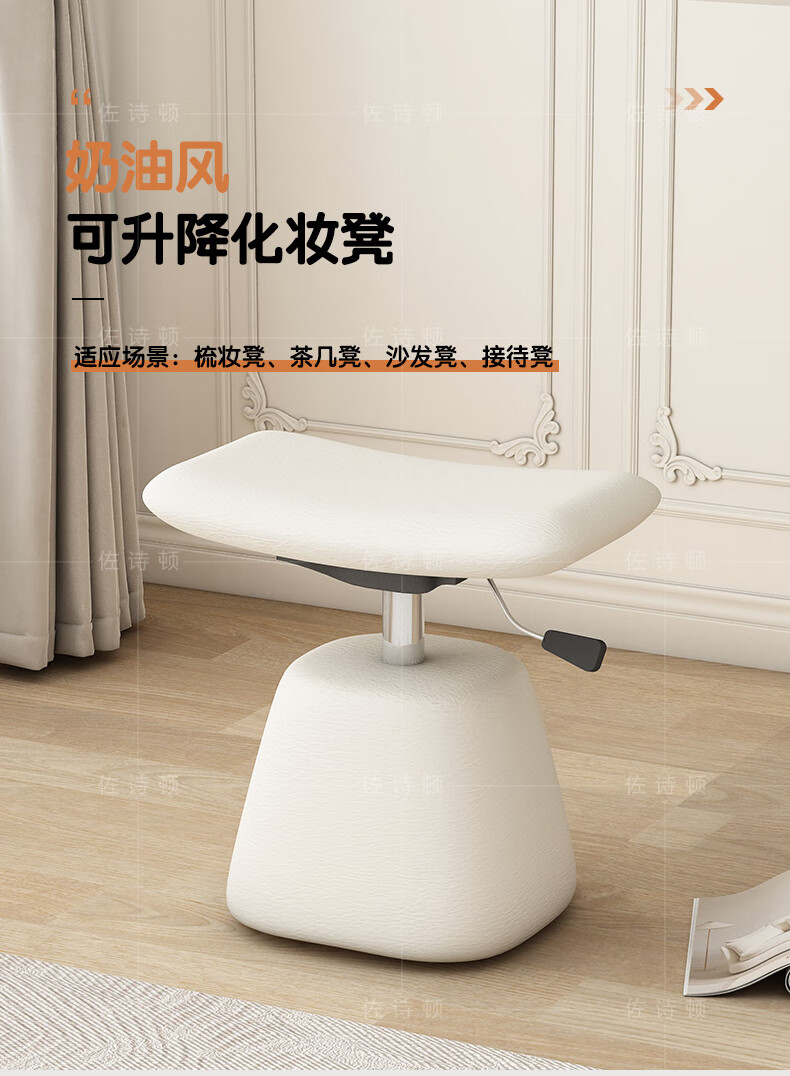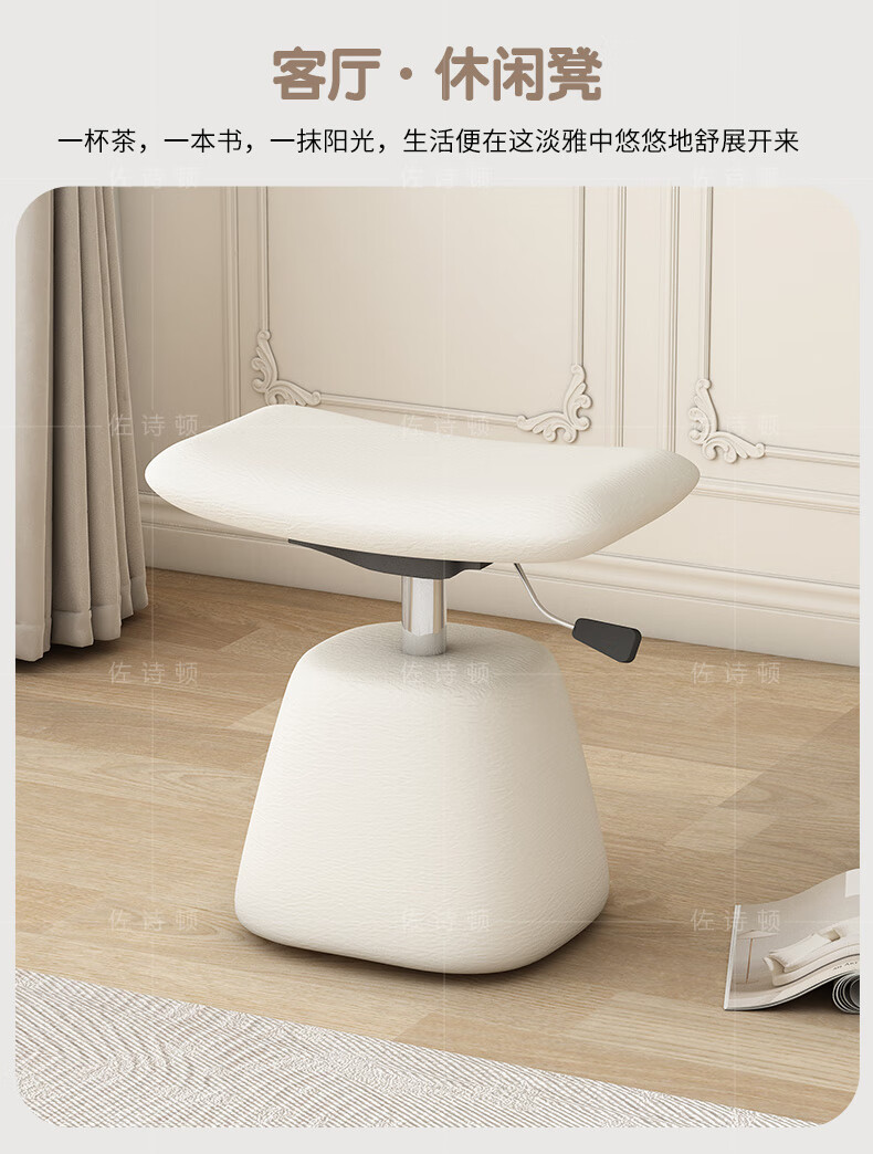Jiyi Mufang Round Stool Soft Cover Cream Style Cosmetic Stool Light Luxury Master Bedroom Dressing Table Stool Can Lift Simple Modern Leather Lift Model Cream White Super Fiber Leather