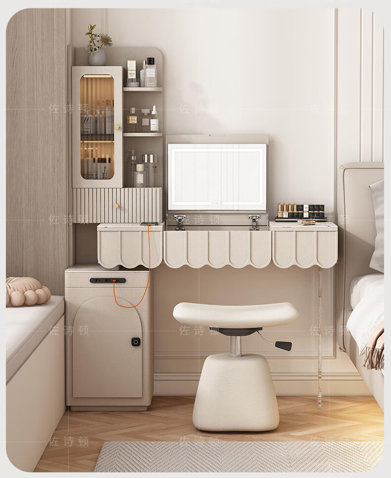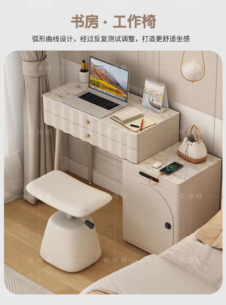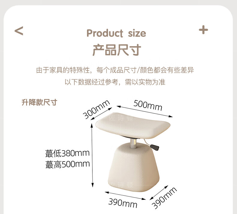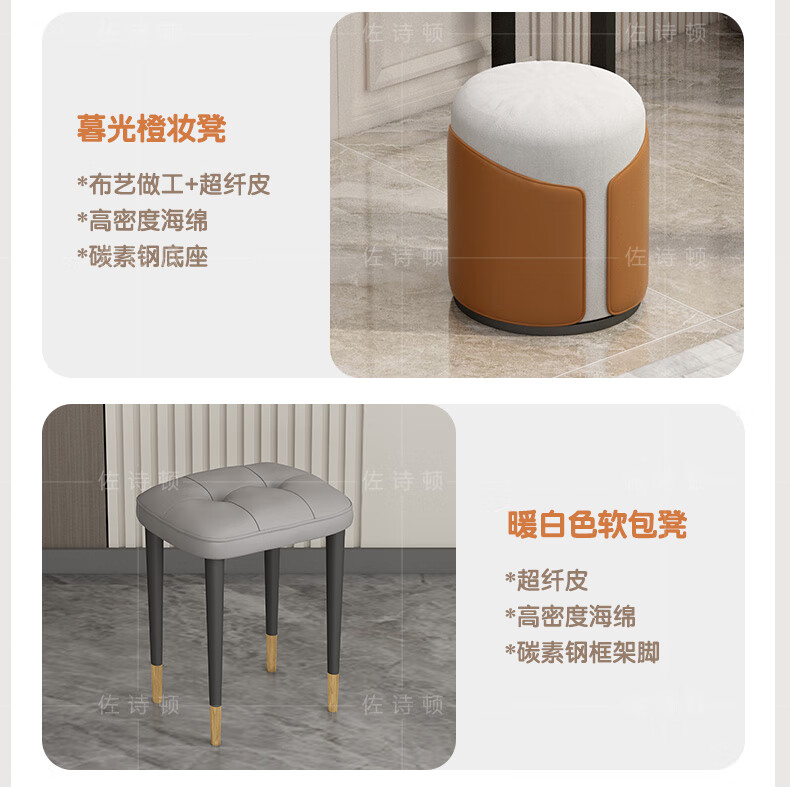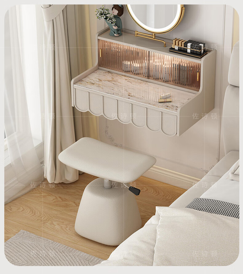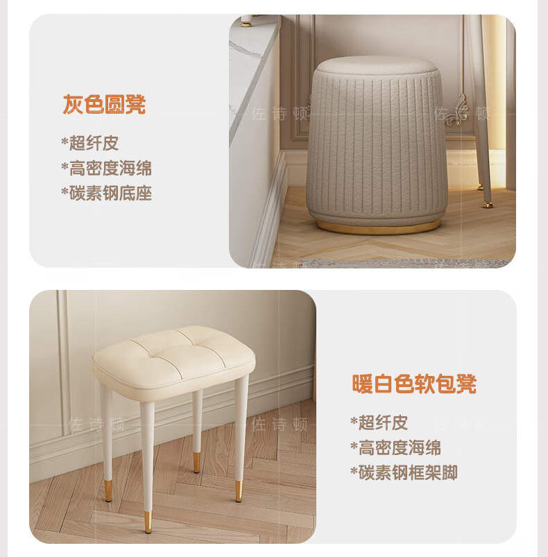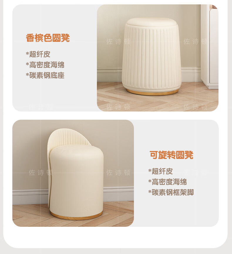 Jiyi Mufang Round Stool Soft Cover Cream Style Cosmetic Stool Light Luxury Master Bedroom Dressing Table Stool Can Lift Simple Modern Leather Lift Model Cream White Super Fiber Leather