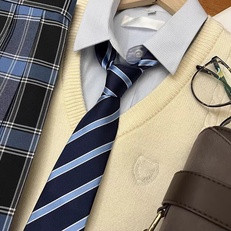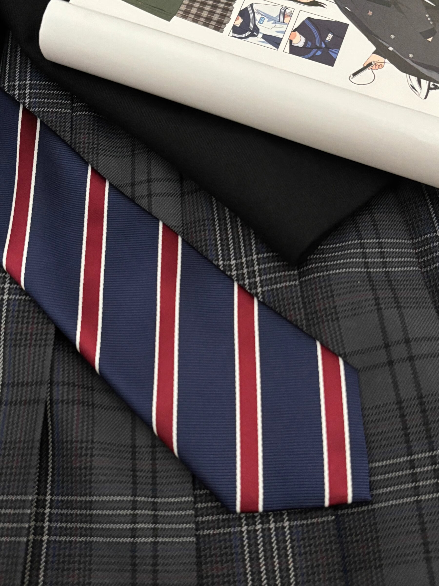 Lu Shanwu Japanese tie with school supply feeling, women's accessories decorative tie, men's and women's uniform shirt, college style two-pack, dark red and blue stripes + navy bottom light blue strips, two-pack 32*7cm