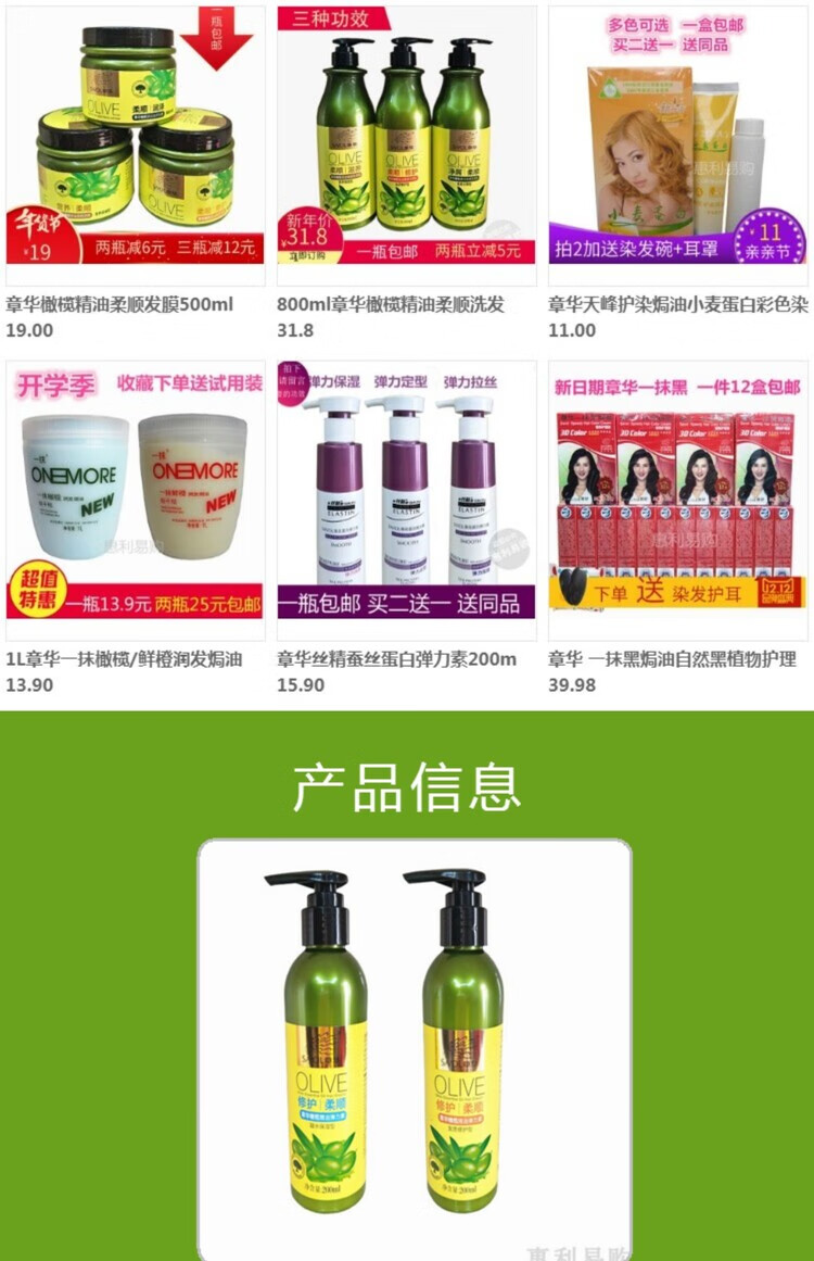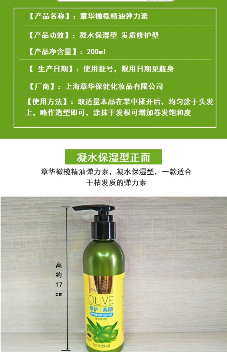 Zhanghua Olive Essential Oil Elastin 200ml Curly Hair Condensation Moisturizing Protector Volume Styling Straight Hair Repair Hair Repair Elastin