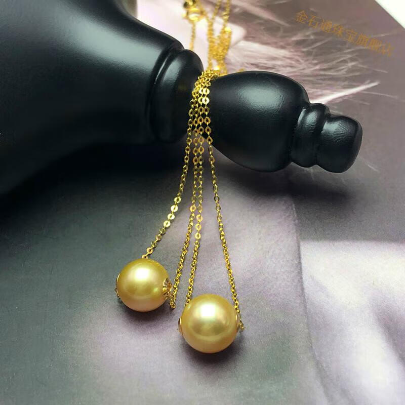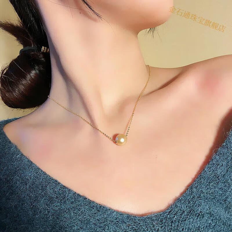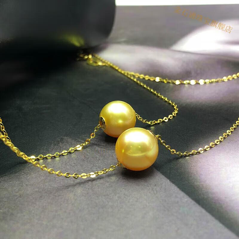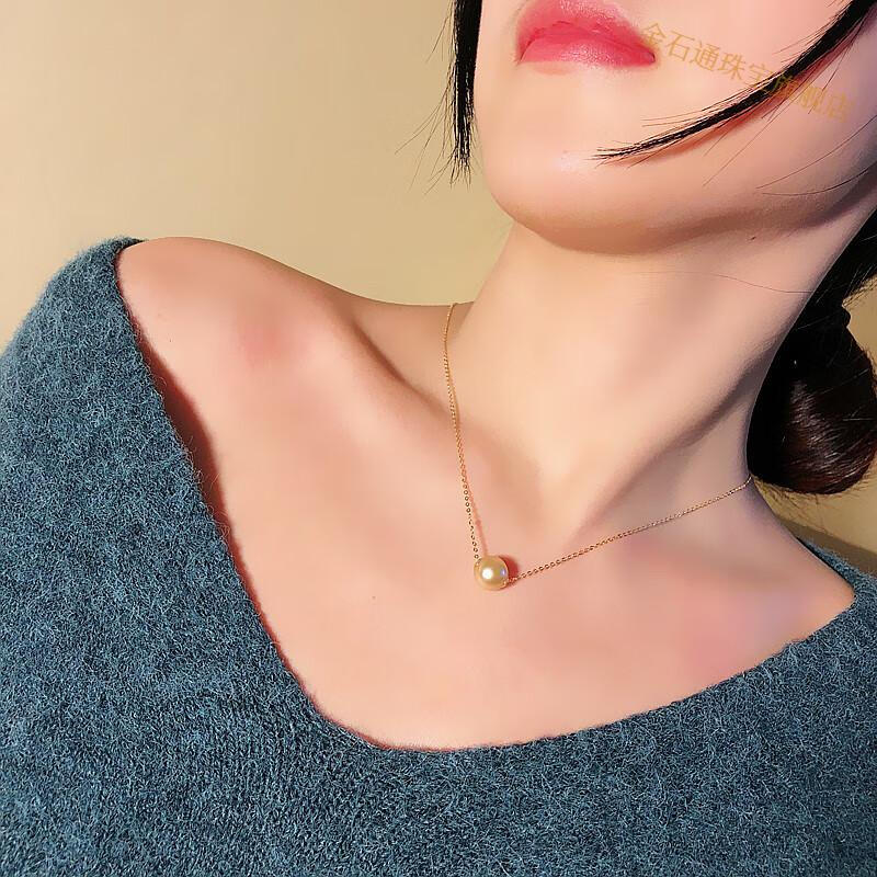 Yulong thick gold South Sea pearl pendant seawater pearl clavicle necklace perfect round strong light passerby thick gold chain thickened thick gold chain thick adjustable 9-10mm