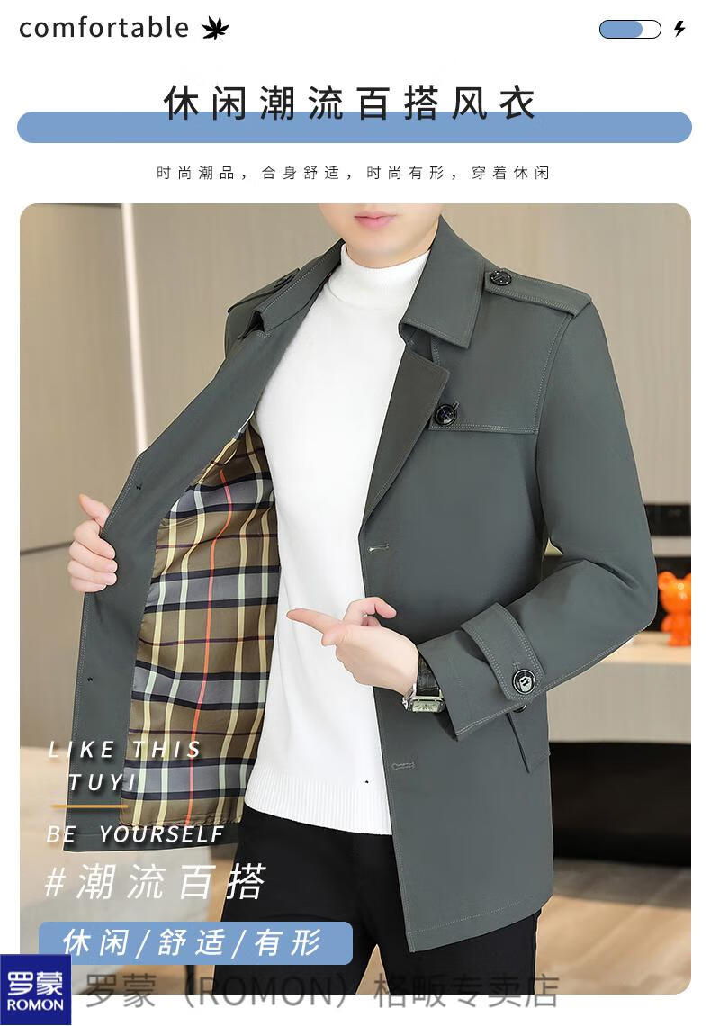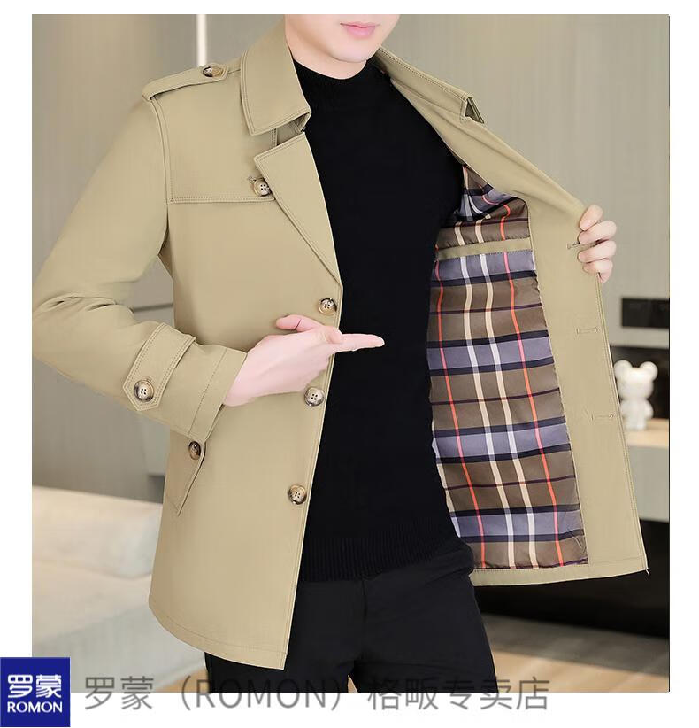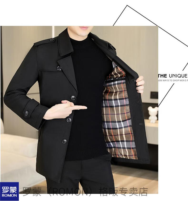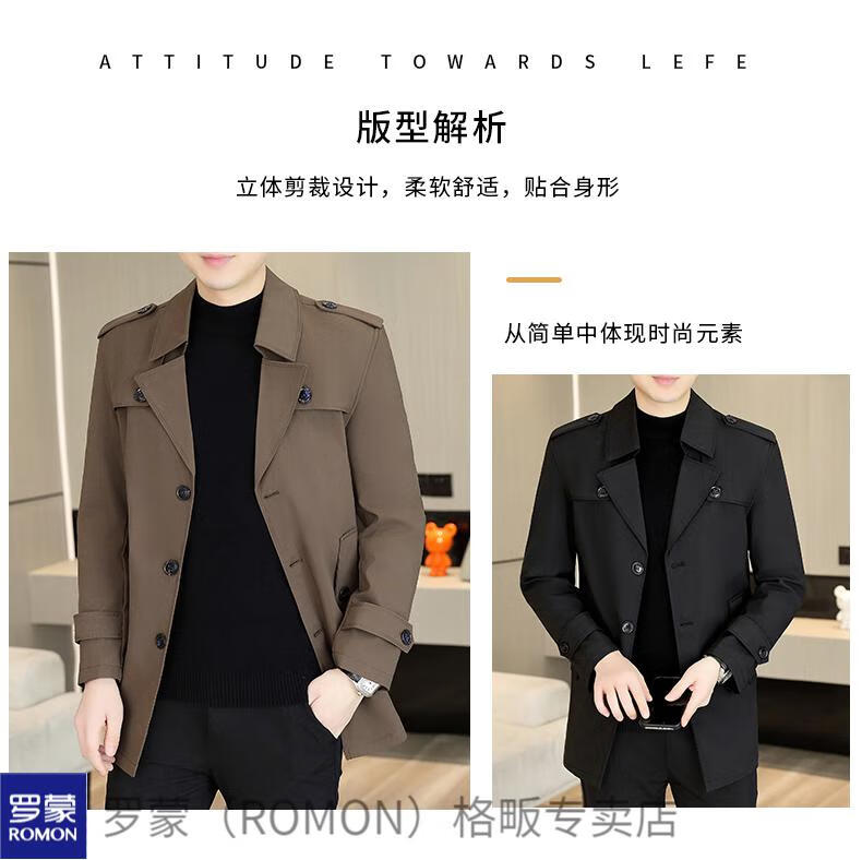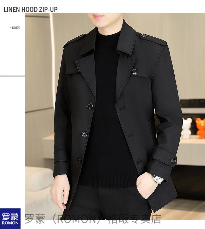 ROMON windbreaker men's short casual coat lapel youth handsome 2025 autumn and winter new coat men's 76 styles black plus velvet plus thicker L recommended 110-125 Jin Jin equals 0.5 kg