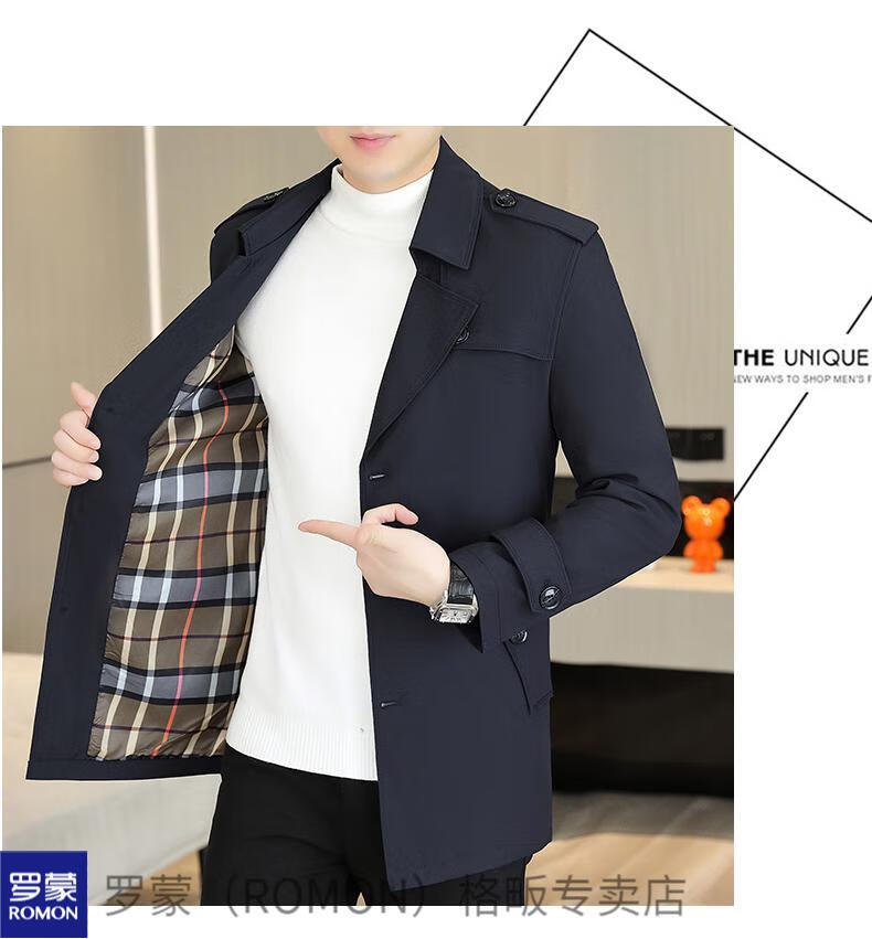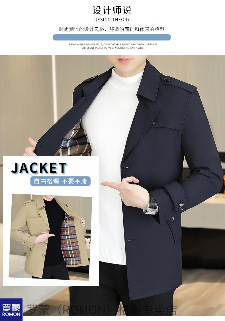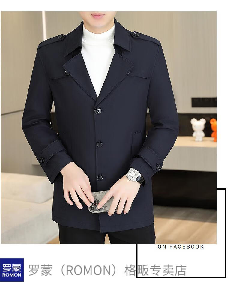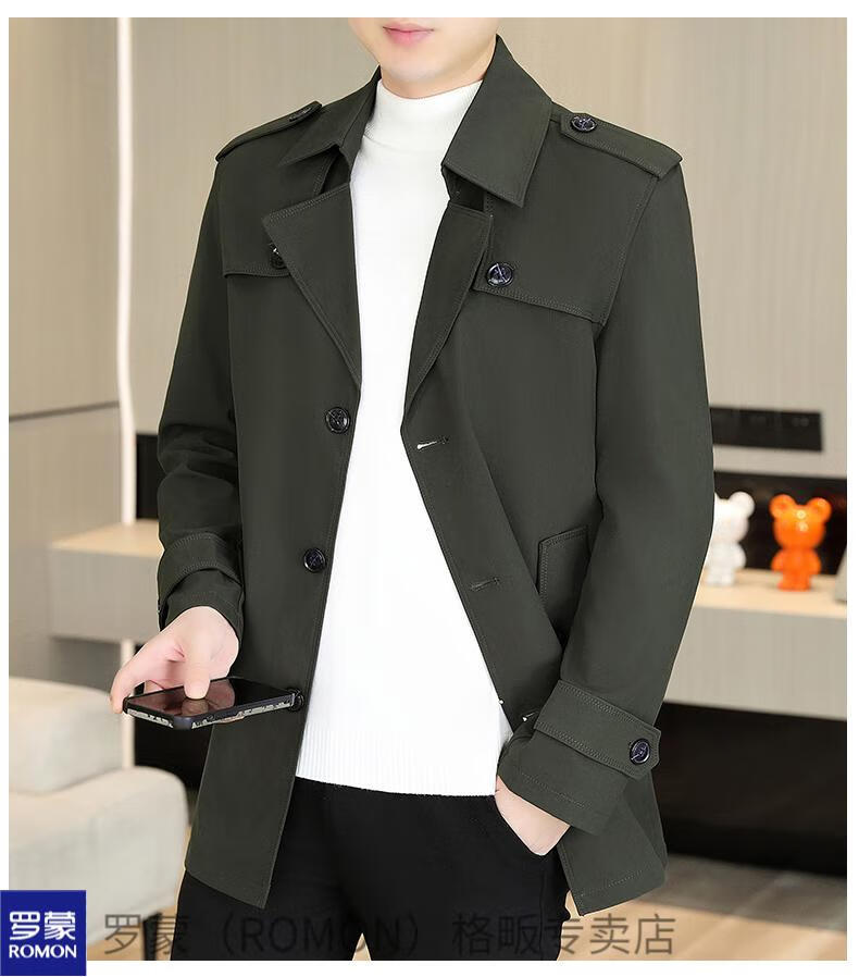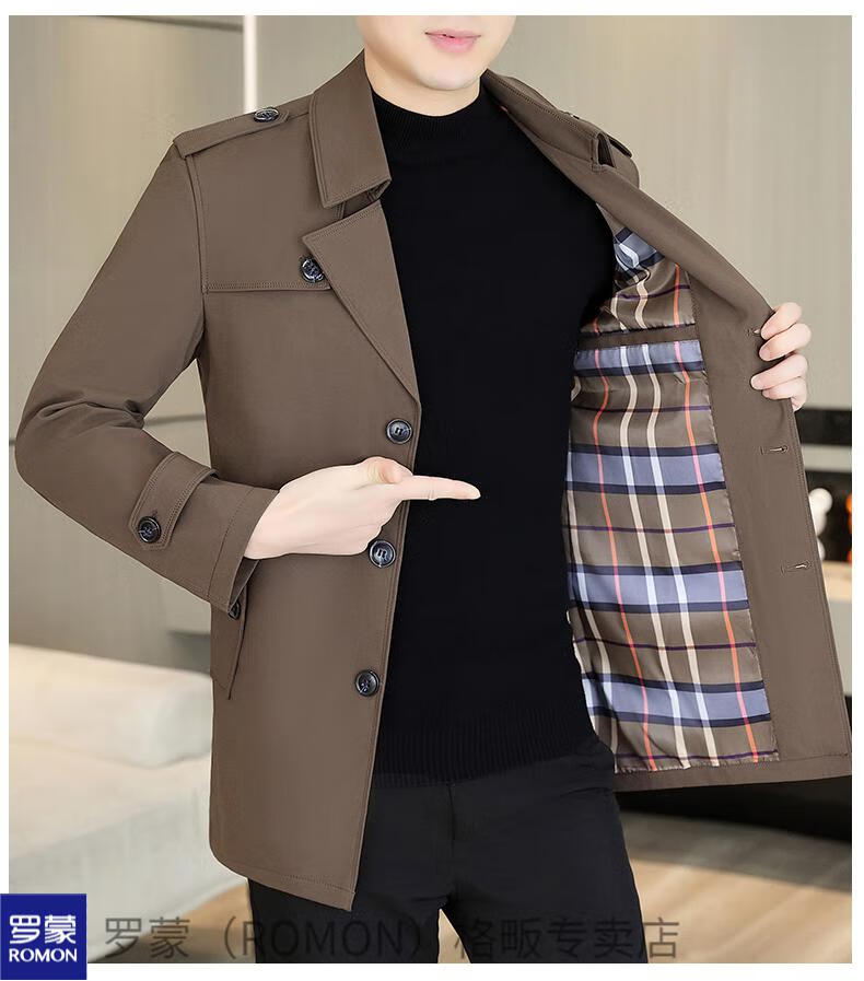 ROMON windbreaker men's short casual coat lapel youth handsome 2025 autumn and winter new coat men's 76 styles black plus velvet plus thicker L recommended 110-125 Jin Jin equals 0.5 kg