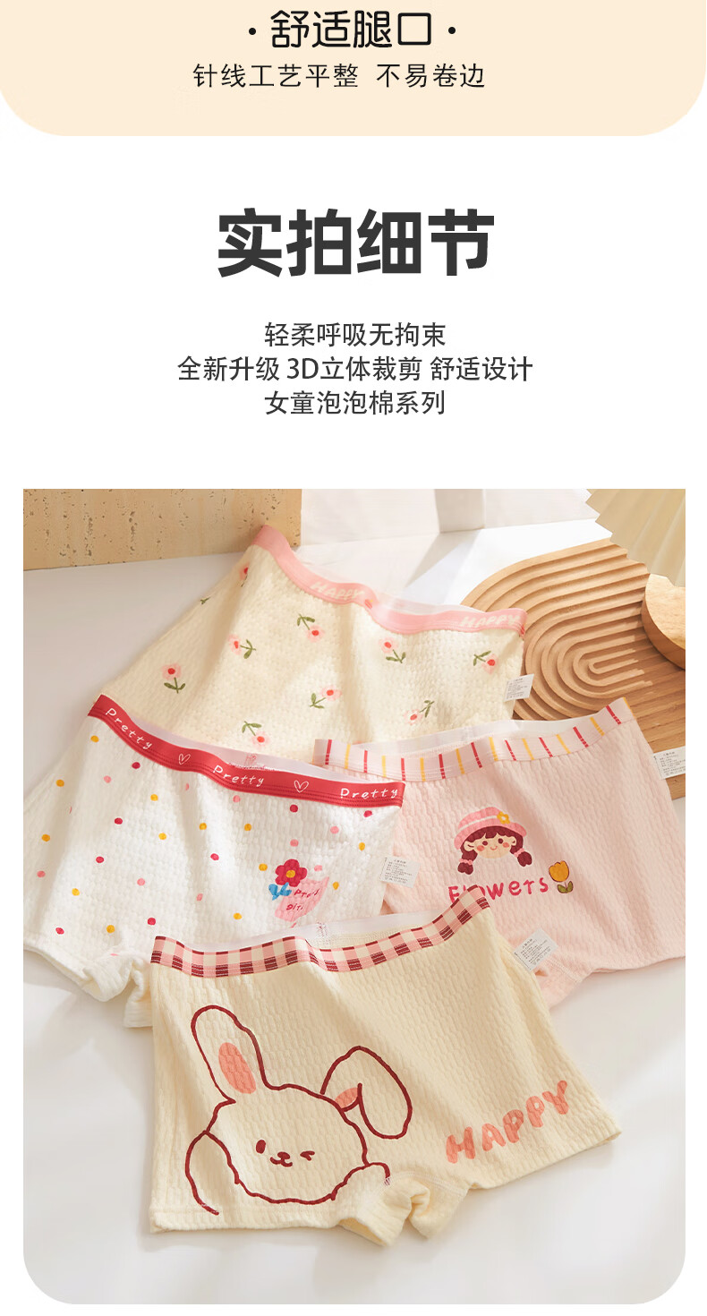 Disha children's underwear 1 girls boxer pure cotton 3 baby 5 pure cotton 6 developmental period 9-12 years old girls 100% cotton shorts 15 7241+7255 pure cotton 4 pack 140 recommended XXL size 48-60 Jin Jin equals 0.5 kg