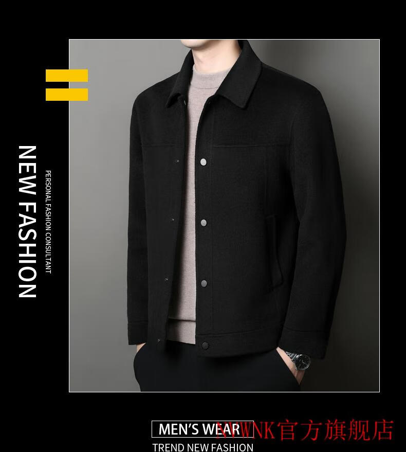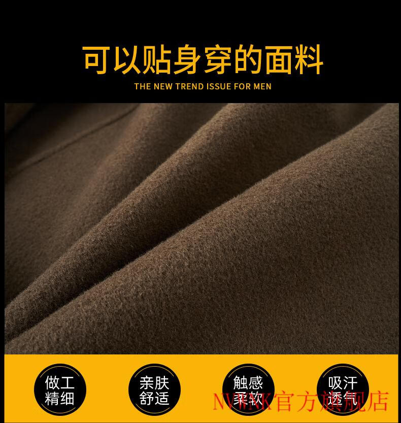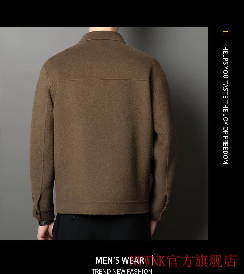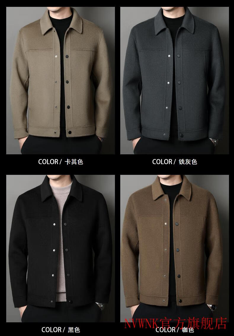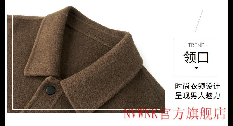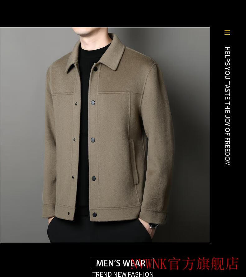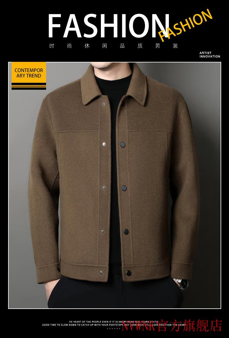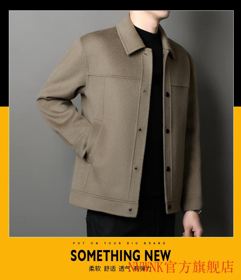 NVWNK double-sided woolen short coat men's autumn and winter trendy casual woolen coat lapel high-end cashmere jacket khaki 170/M suitable for 110-135Jin Jin equals 0.5 kg