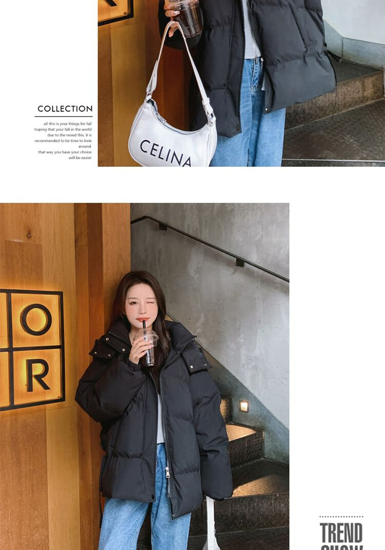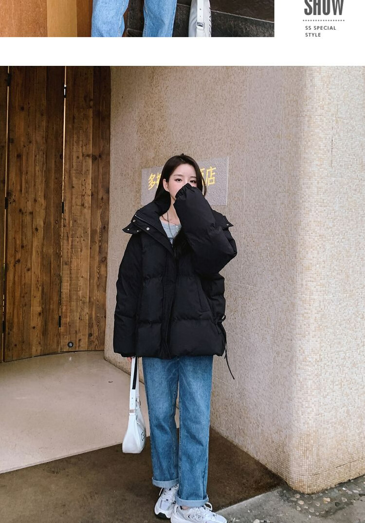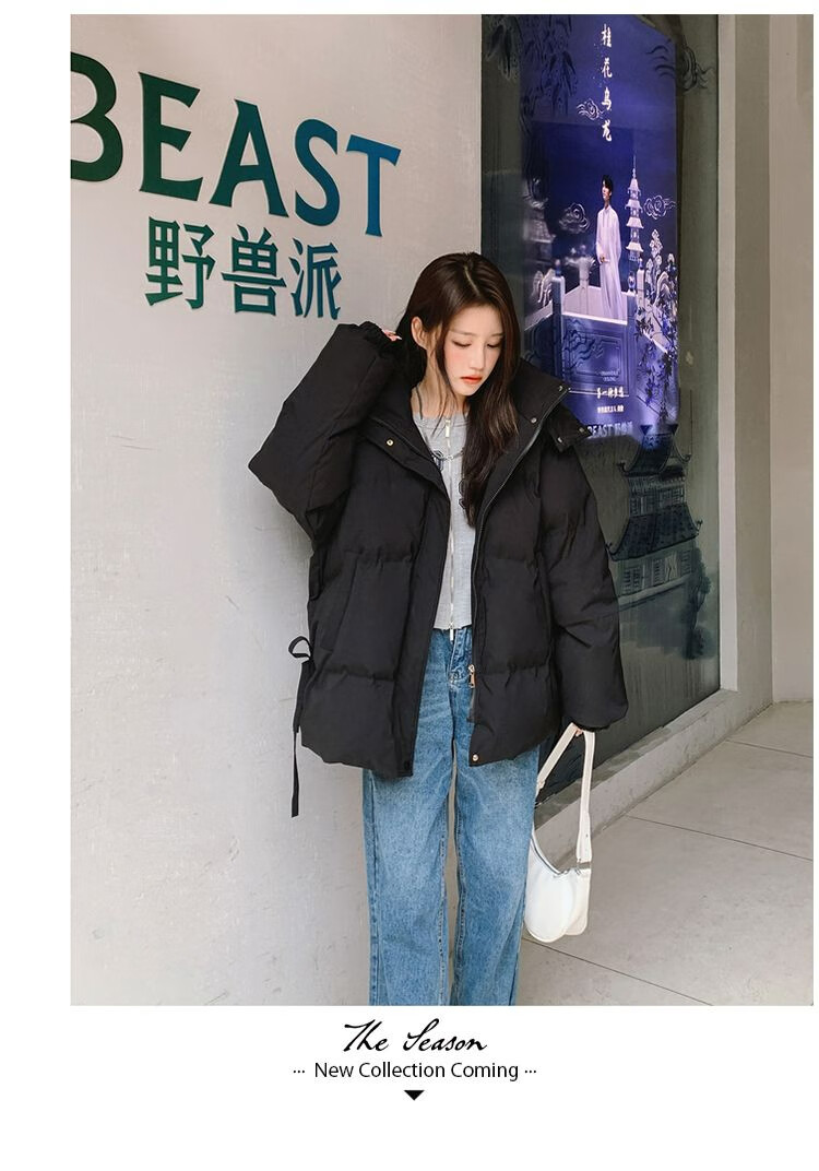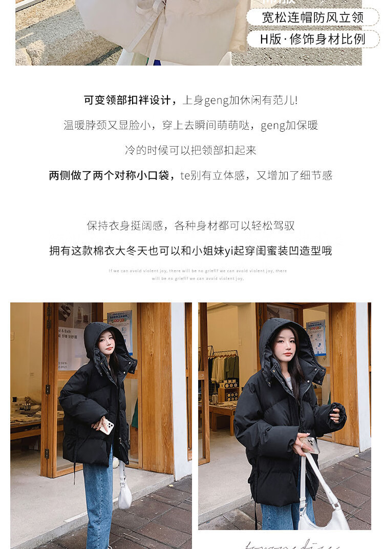FeiLiFan down jacket for women 2025 winter new loose hooded bread jacket for women small short thickened cotton jacket black M (100-115Jin Jin equals 0.5kg)