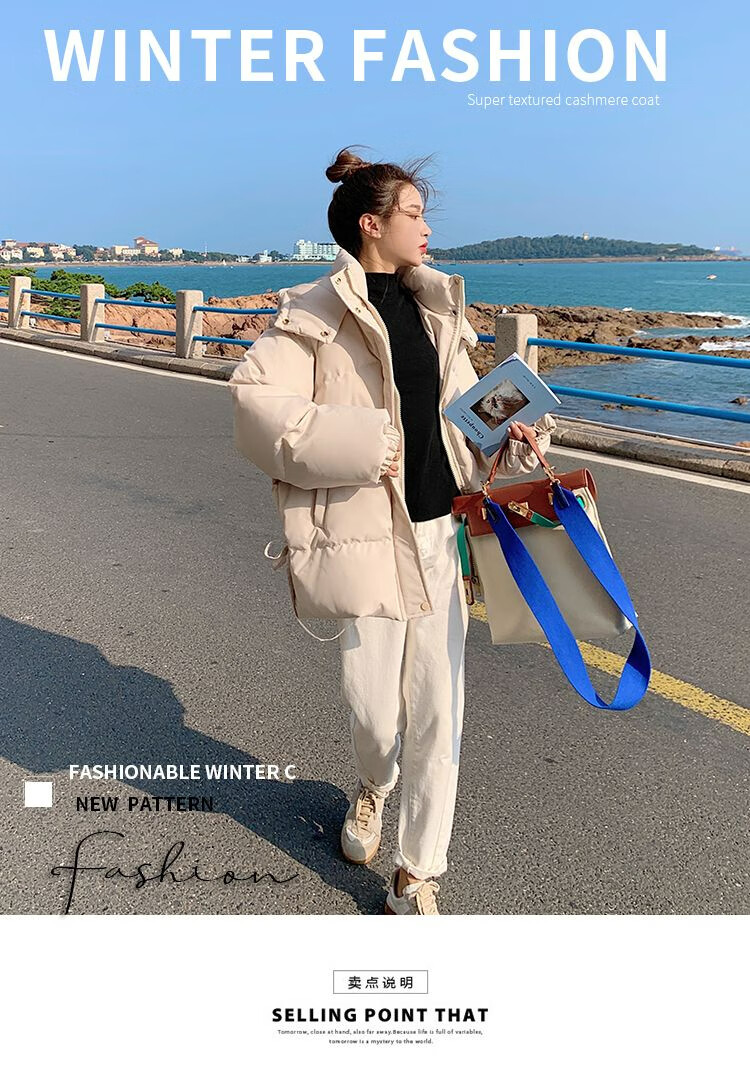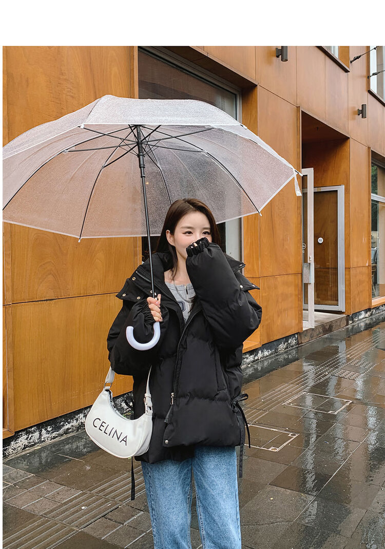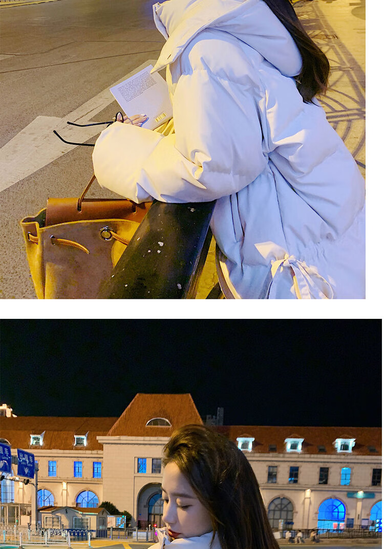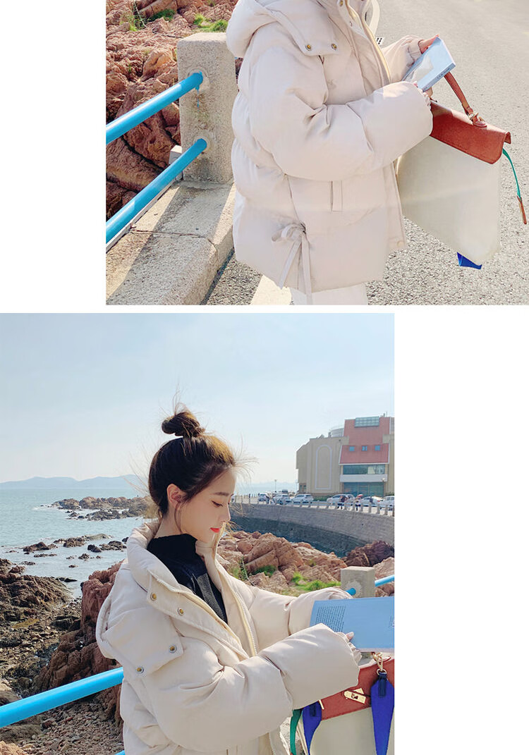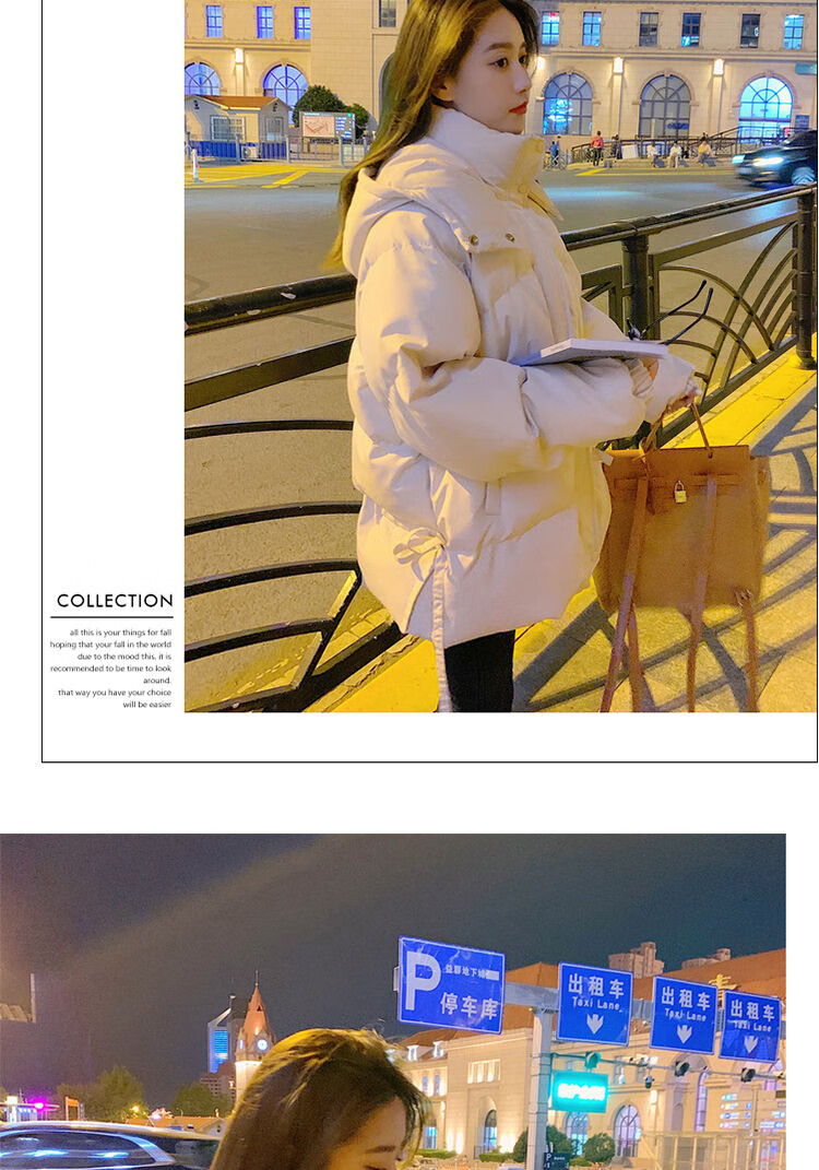 FeiLiFan down jacket for women 2025 winter new loose hooded bread jacket for women small short thickened cotton jacket black M (100-115Jin Jin equals 0.5kg)