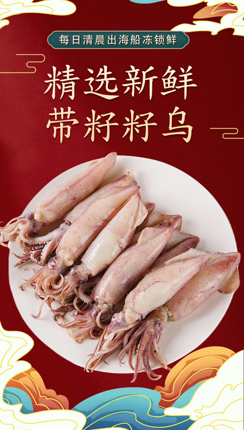 Whole seeds with seeds, fresh seafood, real seeds, whole seeds, black sea rabbits, small squid, small squid, full seeds, 8-12 pieces/Jin Jin is equal to 0.5 kg 1 Jin Jin is equal to 0.5 kg