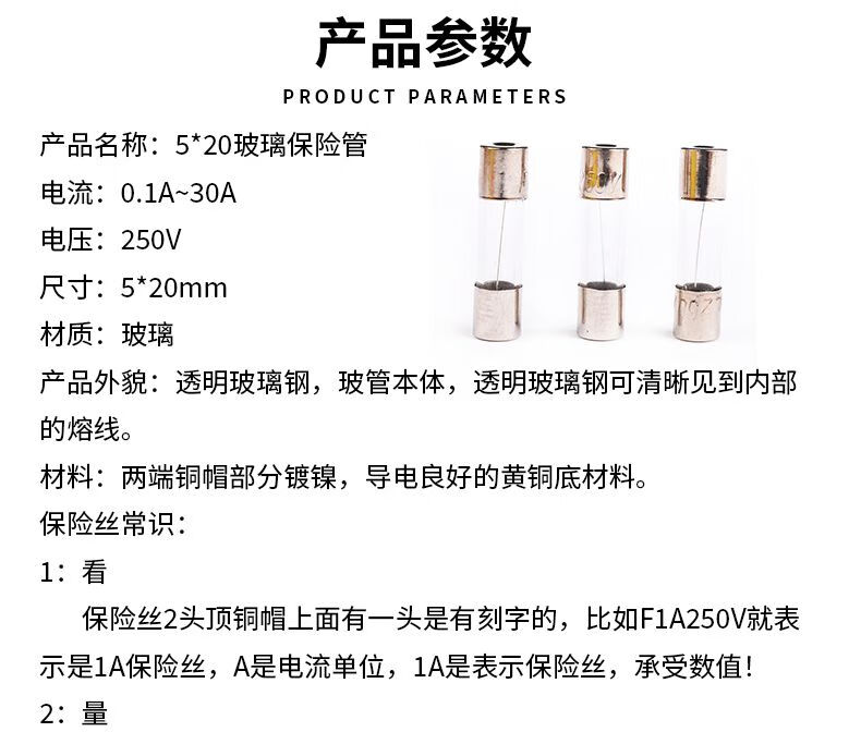 DZYJ 5*20mm 6*30mm glass fuse tube 250V 0.5A 2A 3A 4A 5A 8A 20A (5 pieces/box) 6*30mm
