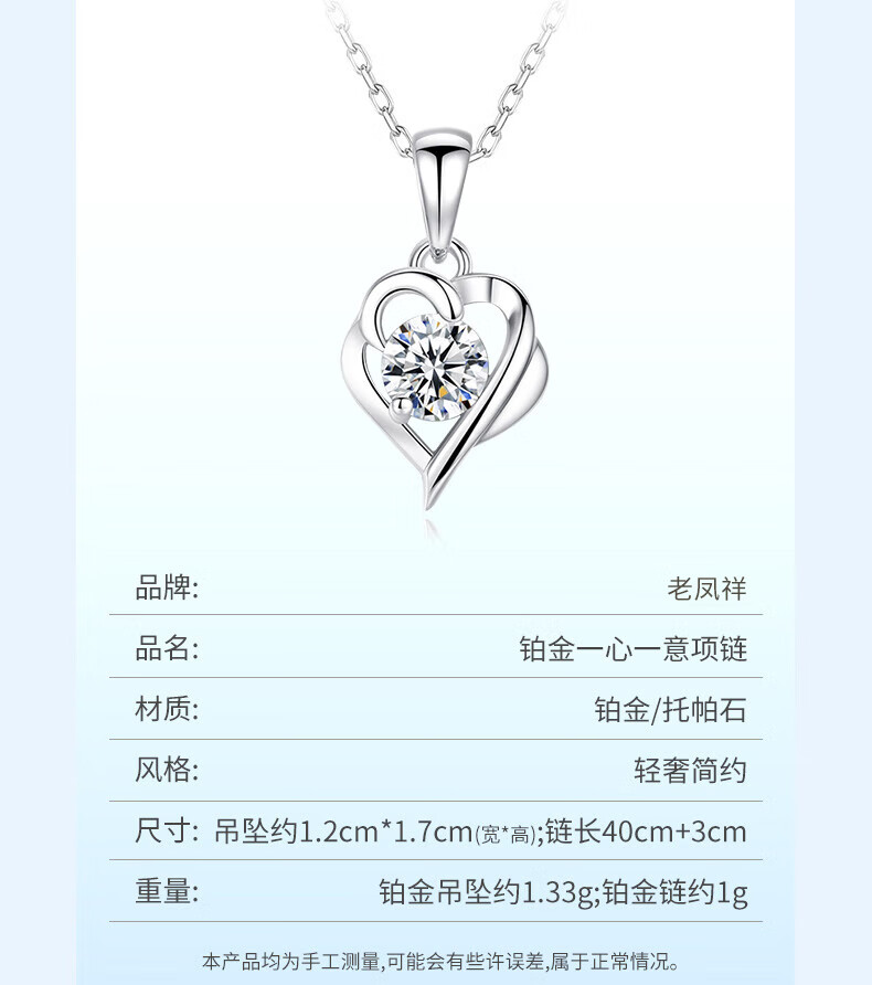 Lao Fengxiang Love Platinum Necklace for Women Platinum Pendant Clavicle Chain Valentine's Day Gift for Girlfriend and Wife Anniversary Romantic Platinum Wholehearted Pendant + Platinum Chain
