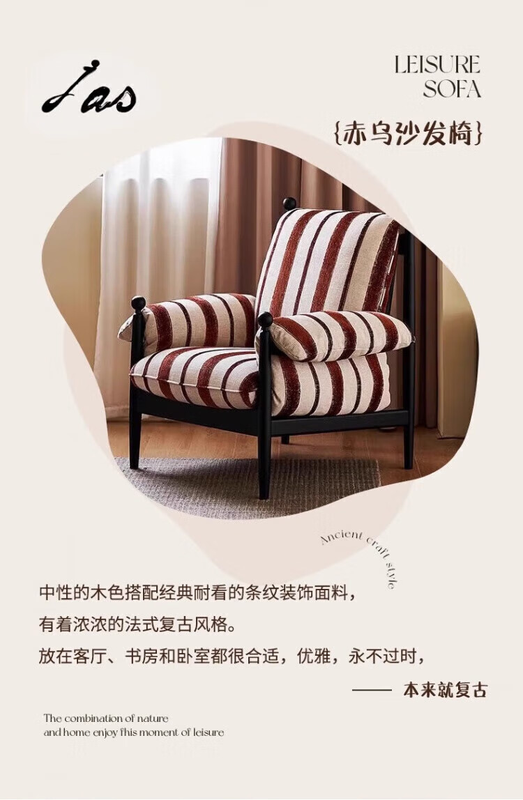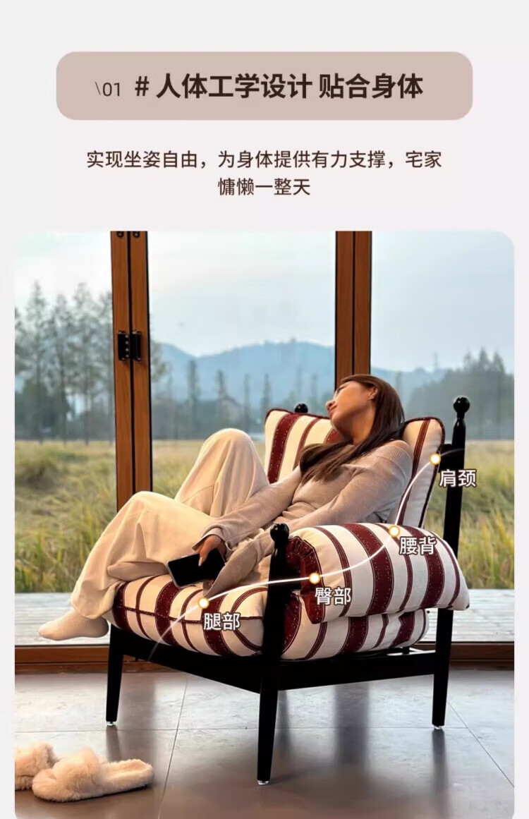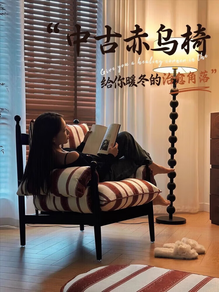 SVAGO retro red black chair living room balcony designer backrest single sofa chair antique style leisure lazy sofa brick red