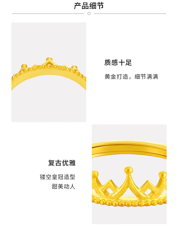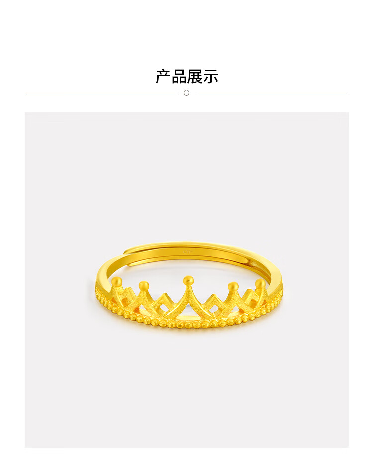 Chow Tai Fook Crown Pure Gold Jewelry Wedding Gold Ring Women's Living Ring (labor cost 120) EOF1601 Pure Gold About 2.60g