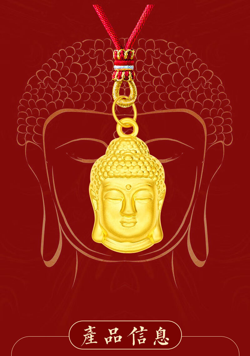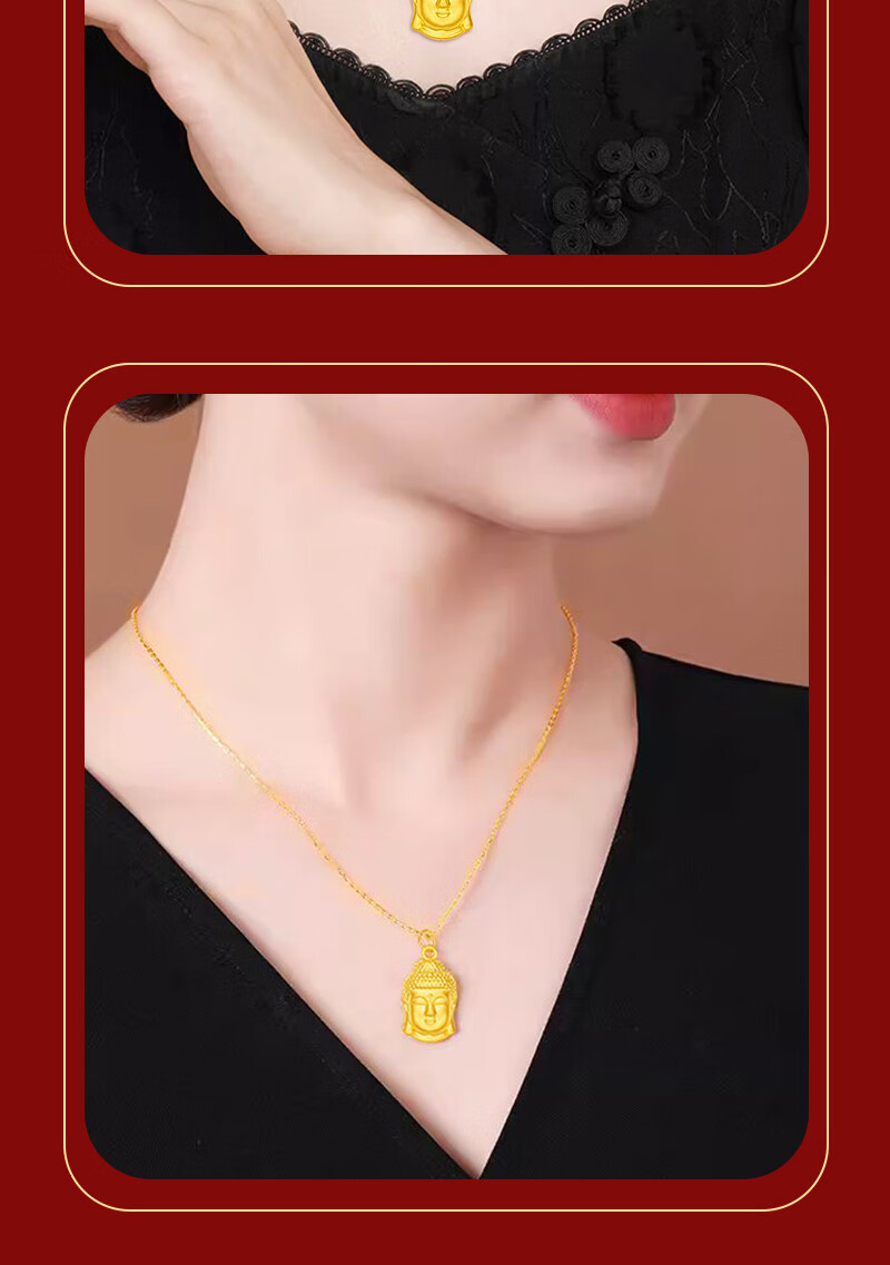 Buddha head pendant in the middle, solid silver necklace for men and women, gold-wrapped silver Tathagata Buddha statue, eternal peace for couples, small Buddha head pendant (red rope necklace), gold about 0.3g