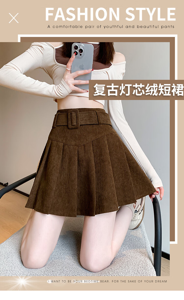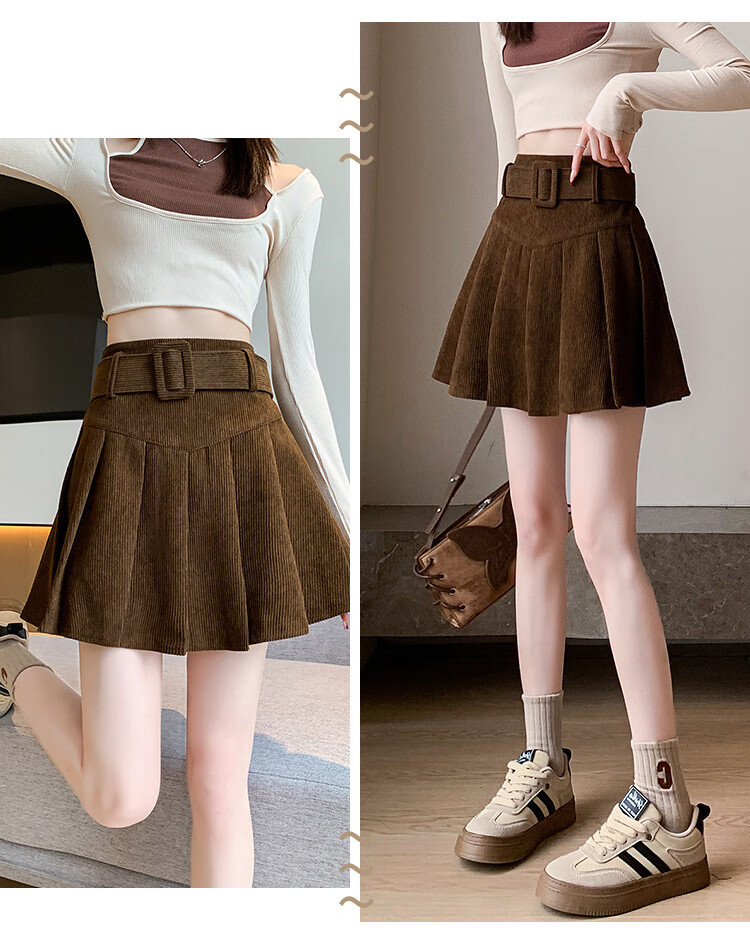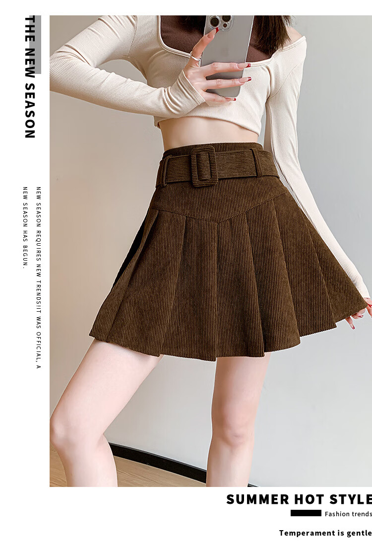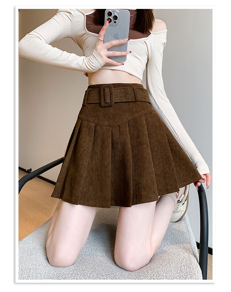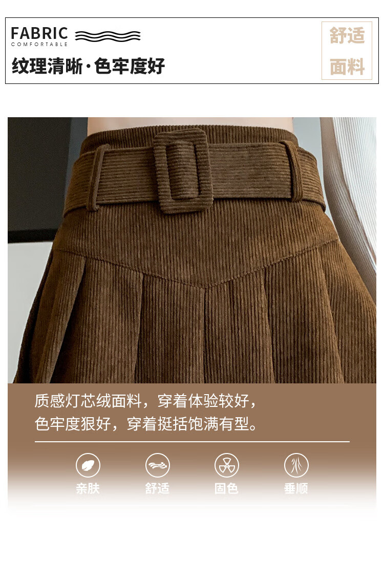 Minsheng corduroy skirt autumn and winter 2024 new high waist slim design pleated skirt niche A-line short skirt for women brown L size