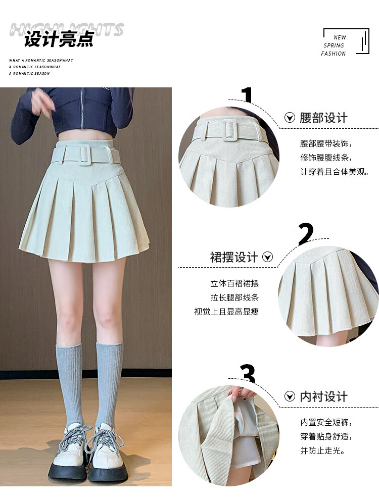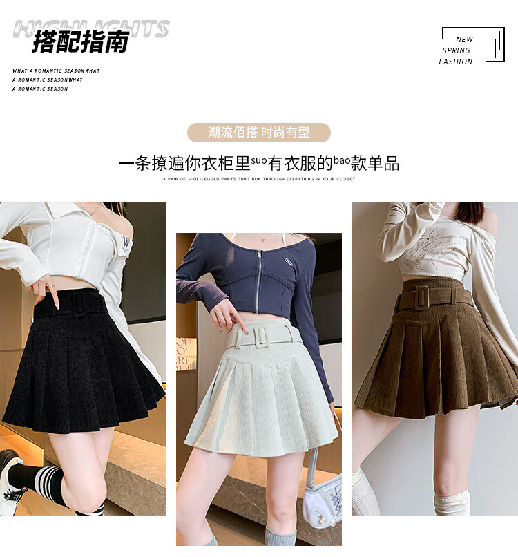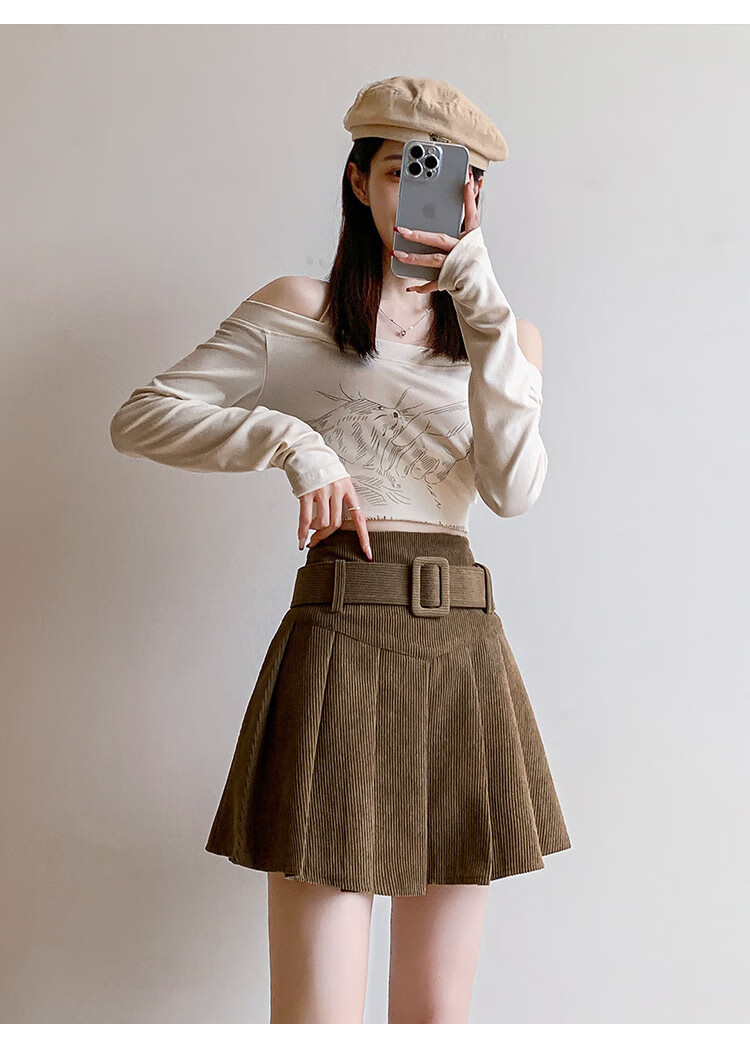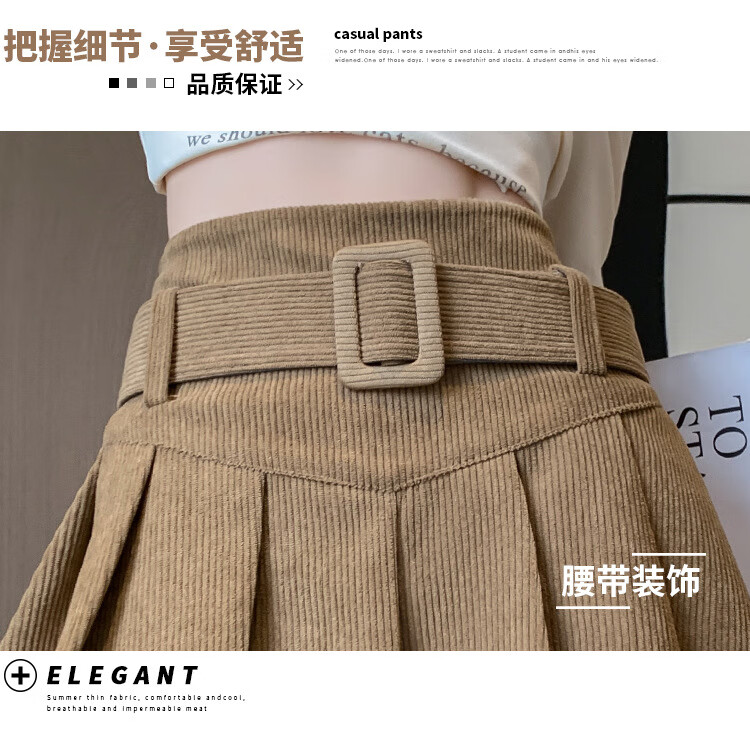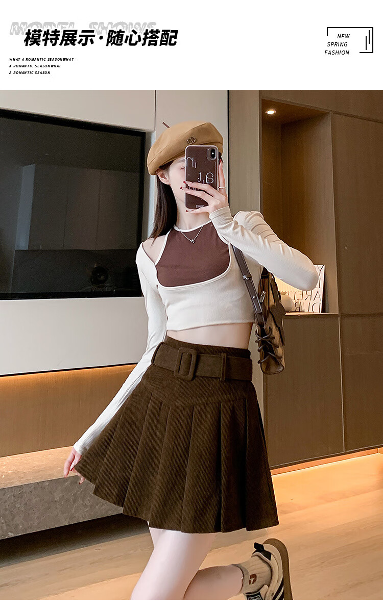Minsheng corduroy skirt autumn and winter 2024 new high waist slim design pleated skirt niche A-line short skirt for women brown L size