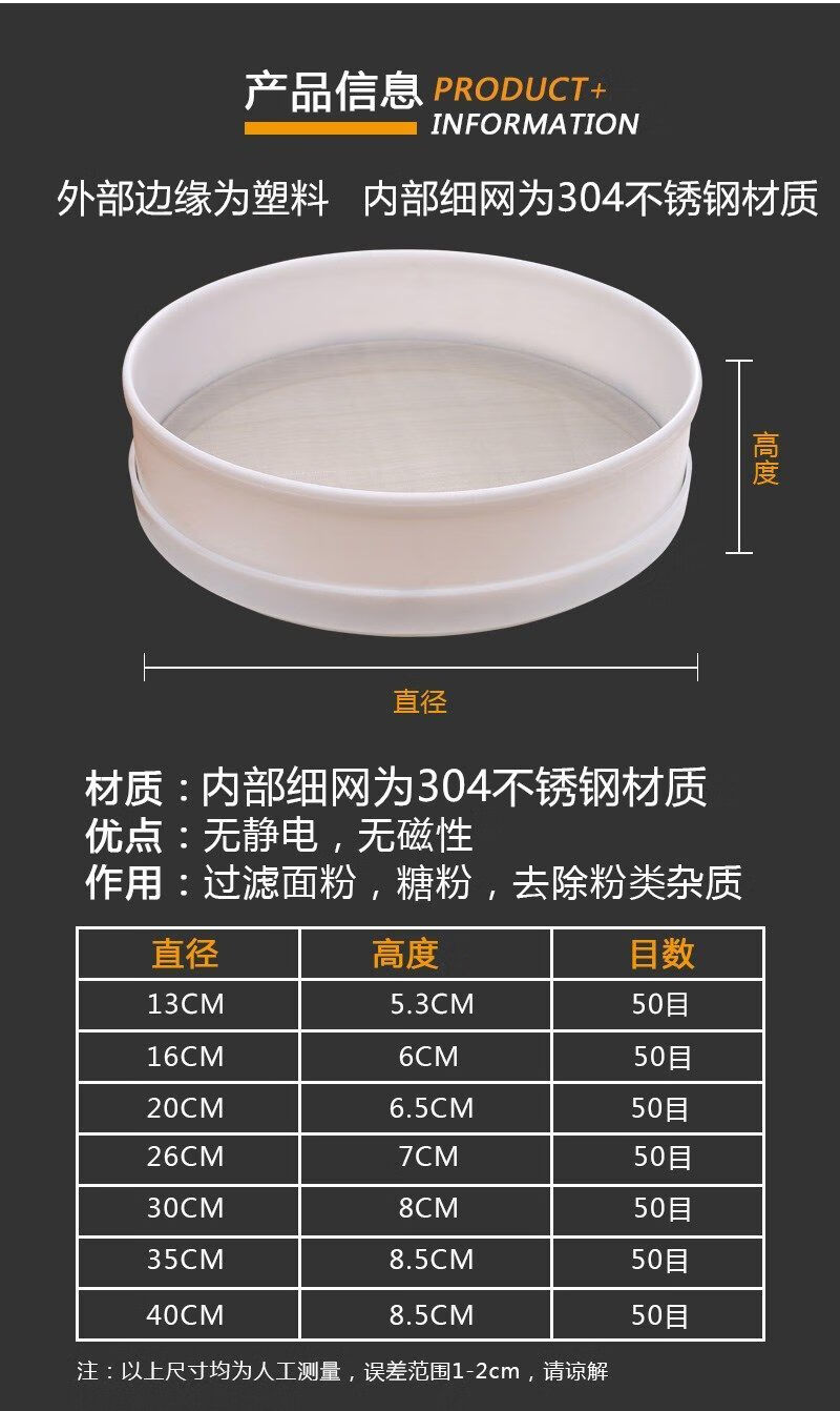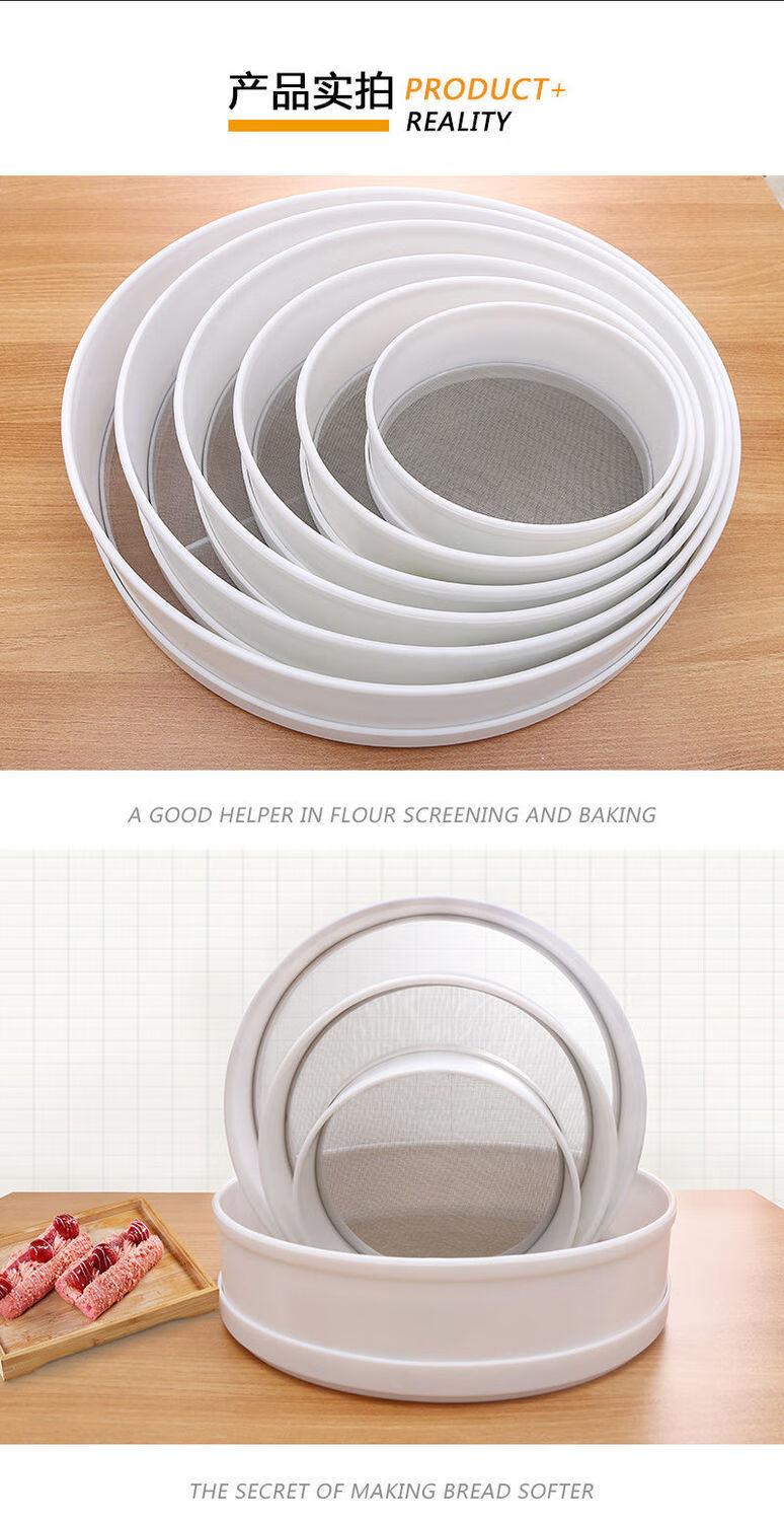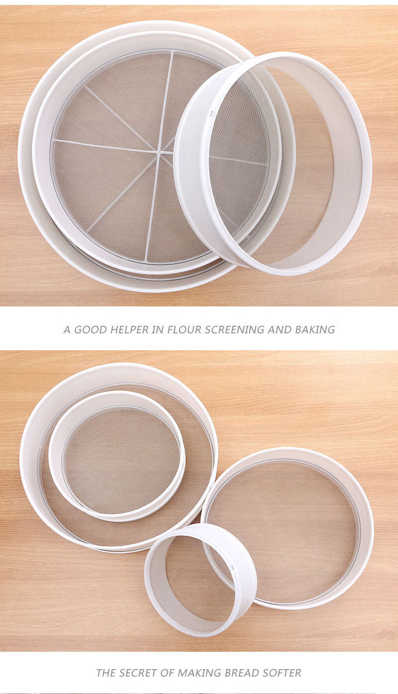 Enshousu round flour sieve plastic leakage mesh sieve bucket stainless steel filter handheld basket sieve Luo bucket sugar powder sieve sieve flour sieve 35 cm