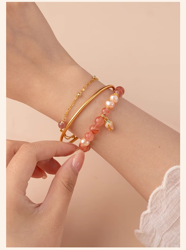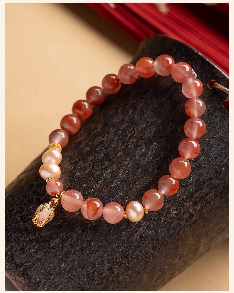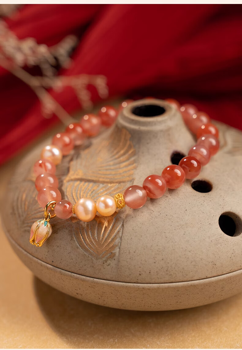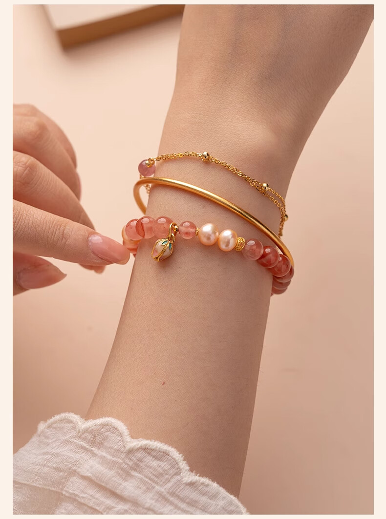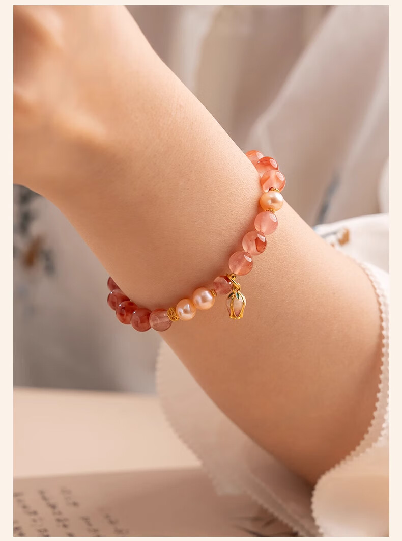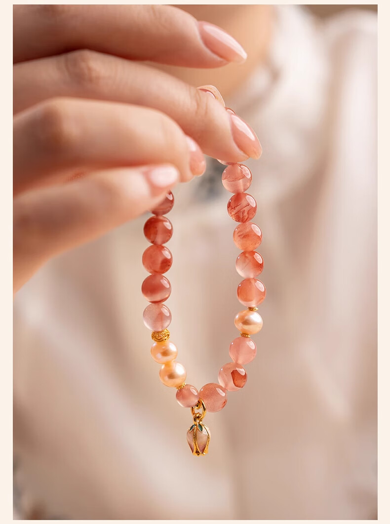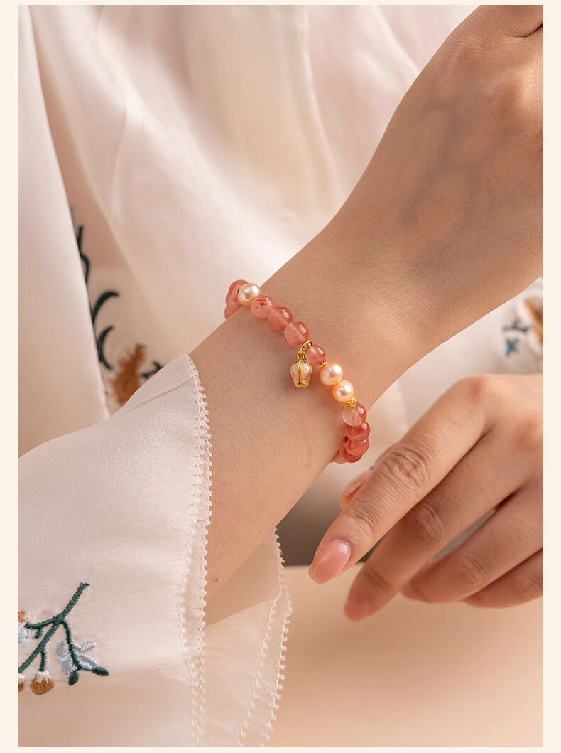 Baoxin Fanrui BOSFRU Bingpiaonan Red Bracelet Women's Natural Authentic Pink Pearl Beaded Bracelet Exquisite Gift Light Luxury Jewelry Cultural Toy Tulip Bingpiaonan Red Bracelet Bracelet Length 17cm