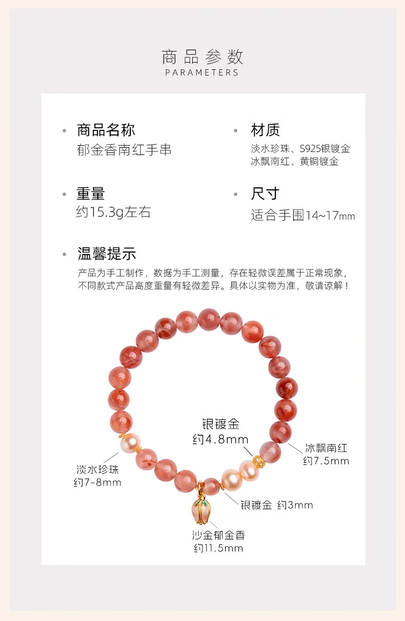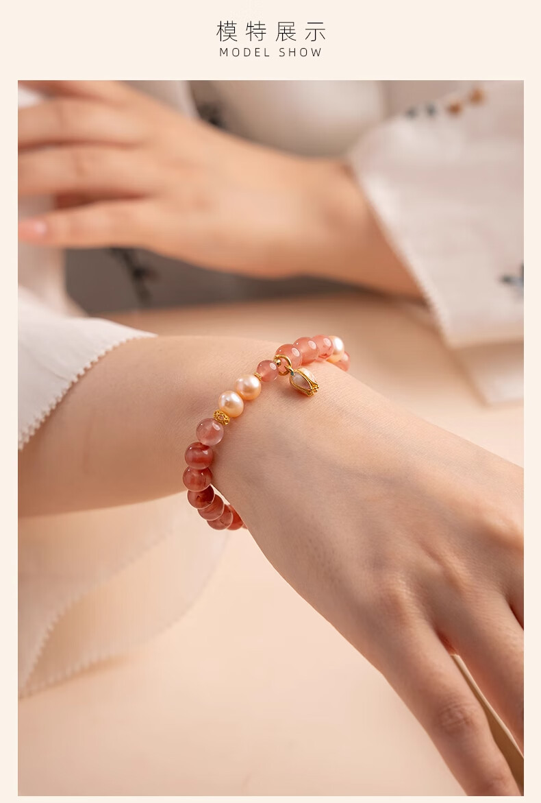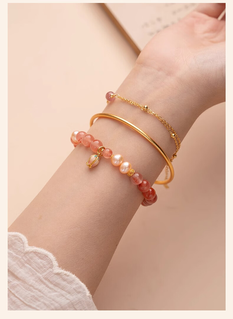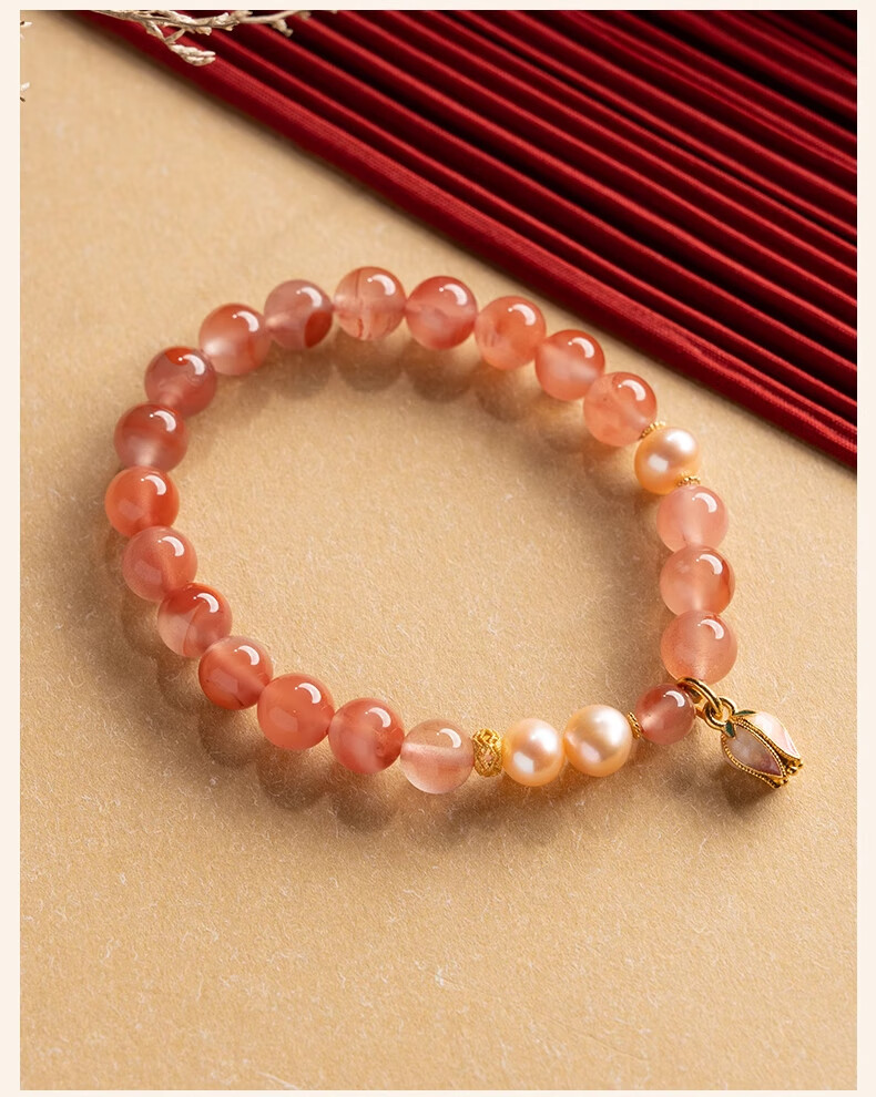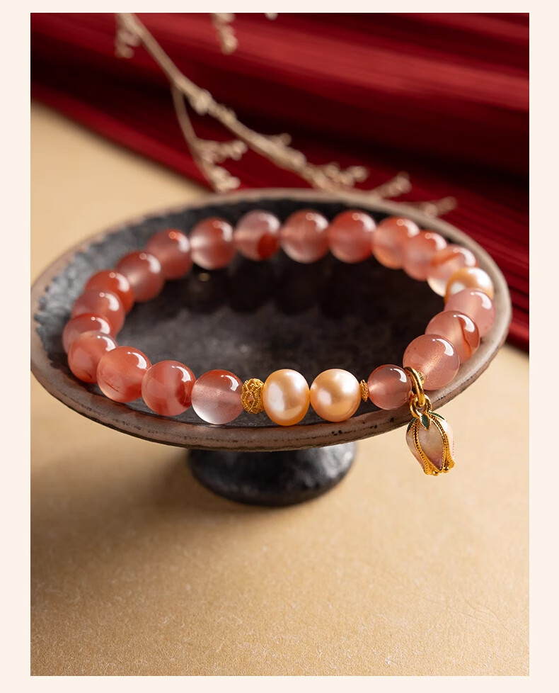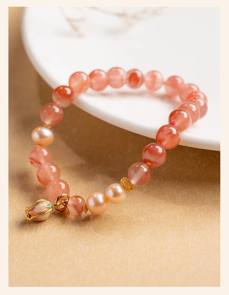 Baoxin Fanrui BOSFRU Bingpiaonan Red Bracelet Women's Natural Authentic Pink Pearl Beaded Bracelet Exquisite Gift Light Luxury Jewelry Cultural Toy Tulip Bingpiaonan Red Bracelet Bracelet Length 17cm