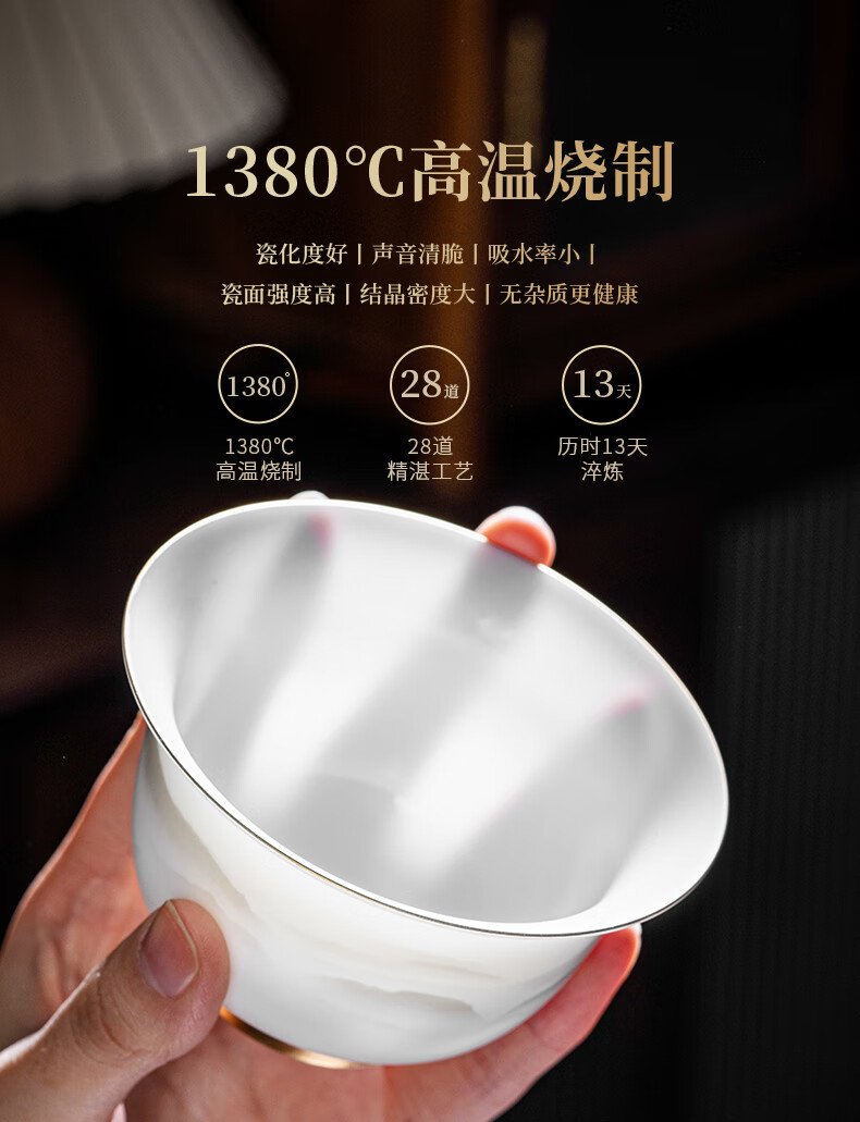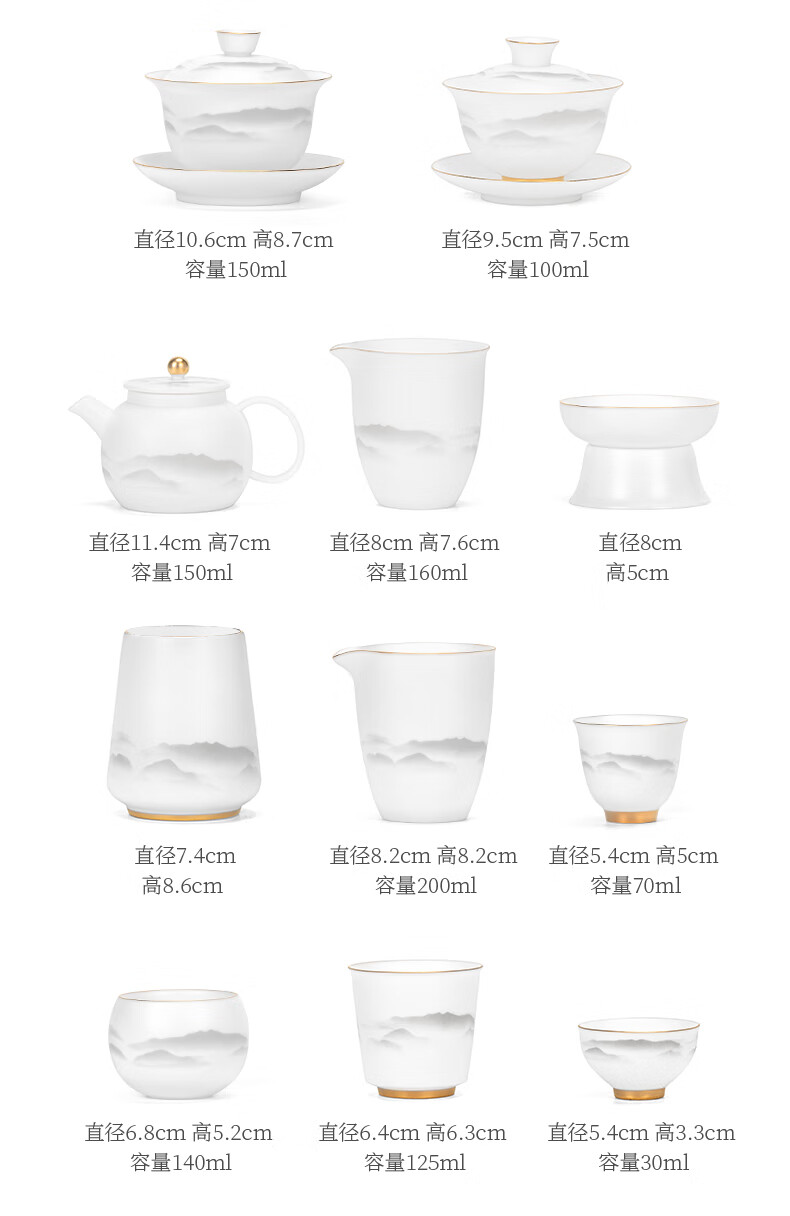 Suitable suet jade porcelain tea set, high-end tureen tea cup, home office reception Kung Fu tea set, souvenir, sketch gold round melt tureen set, 11 pieces, no Specifications