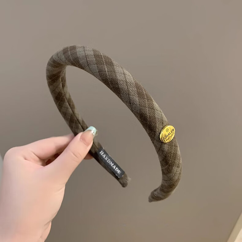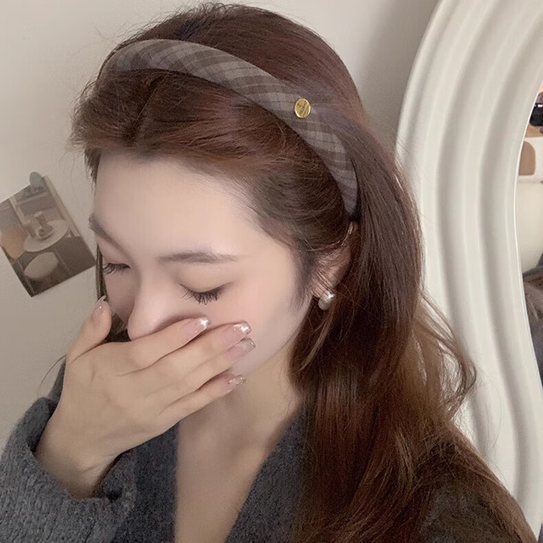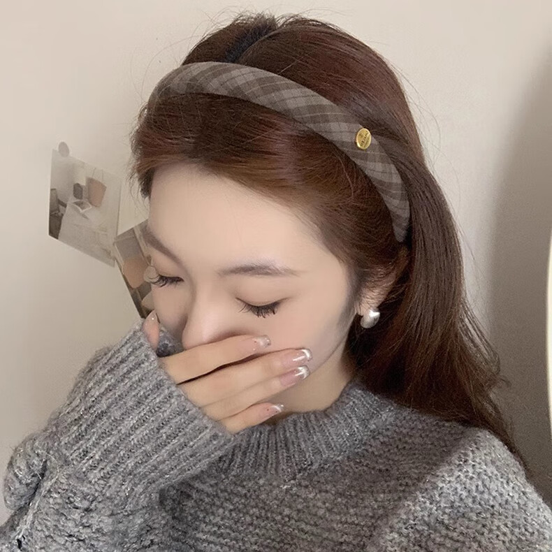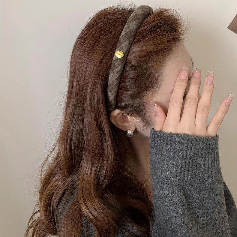 Idel French high-end woolen high skull headband temperament sweet wave nodding headband women 2025 new versatile hairpin F3097 plaid hairband