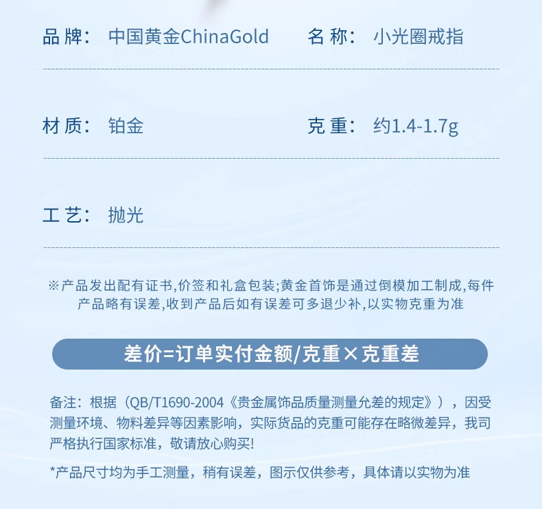 China Gold (CHINA GOLD) plain ring platinum ring new aperture PT950 ring for men and women Valentine's Day birthday gift for girlfriend and wife No. 10 aperture platinum ring about 1.4g