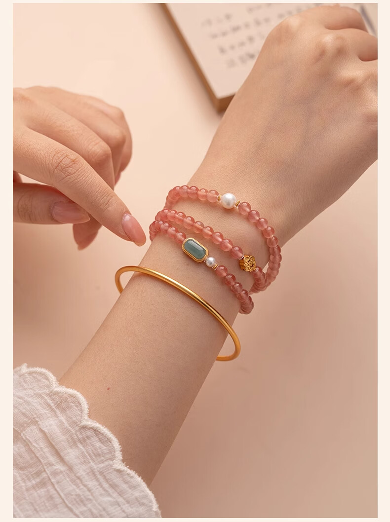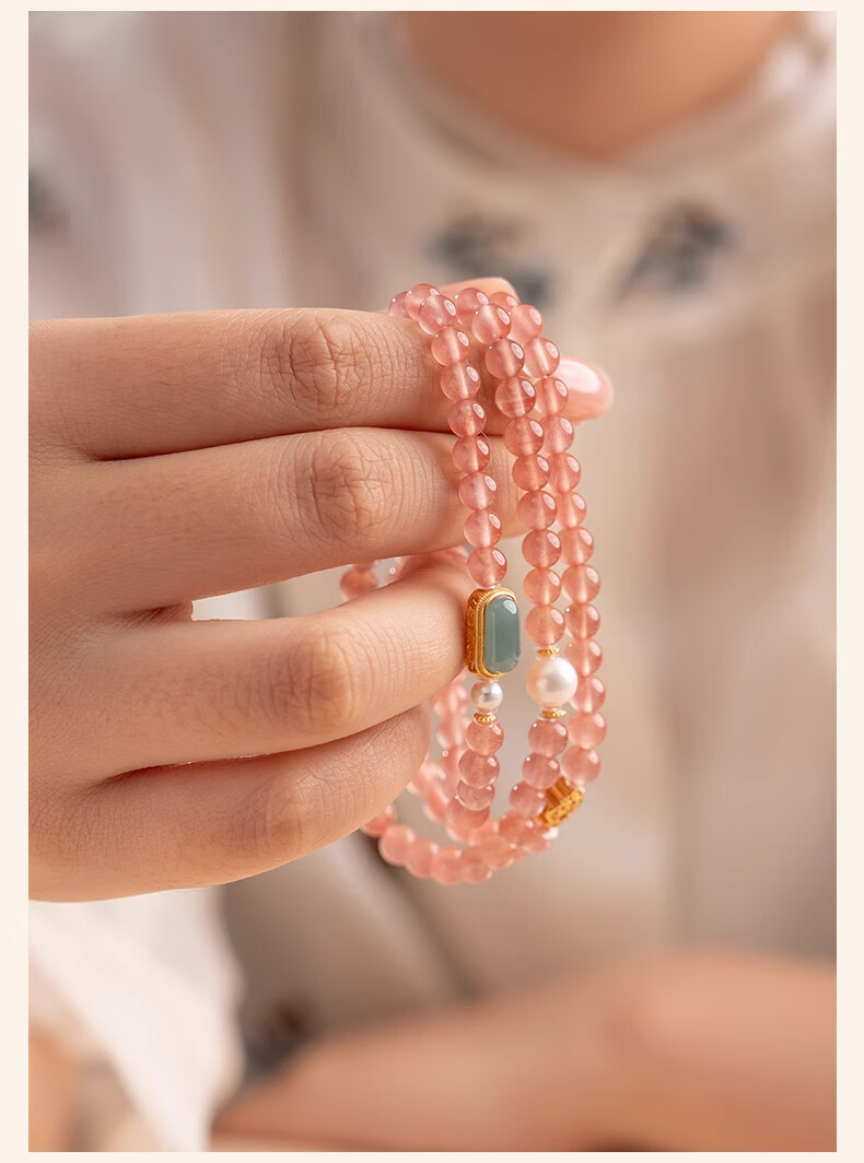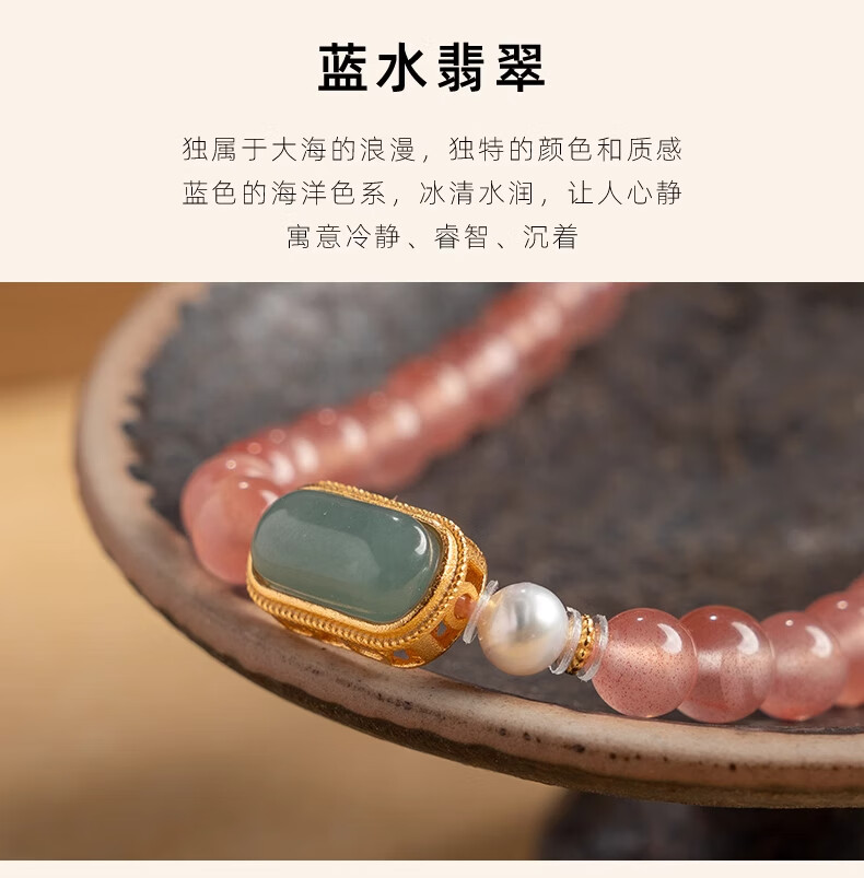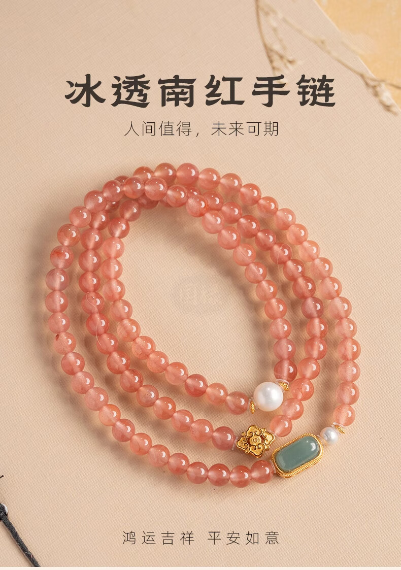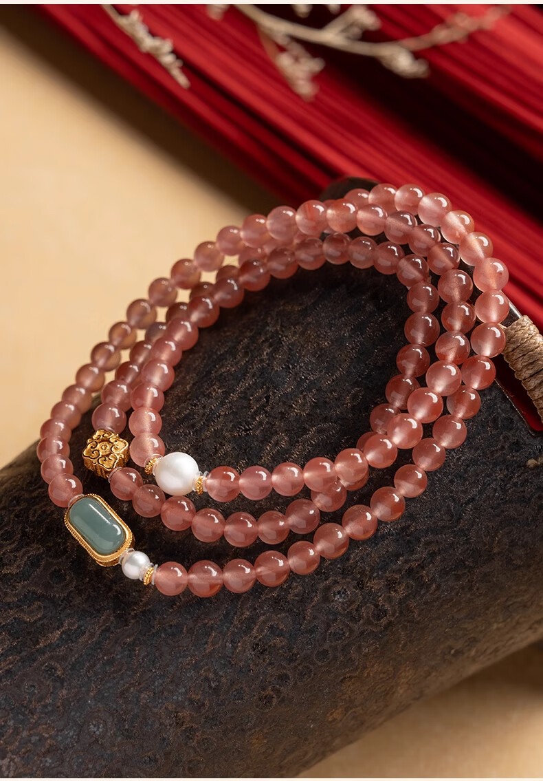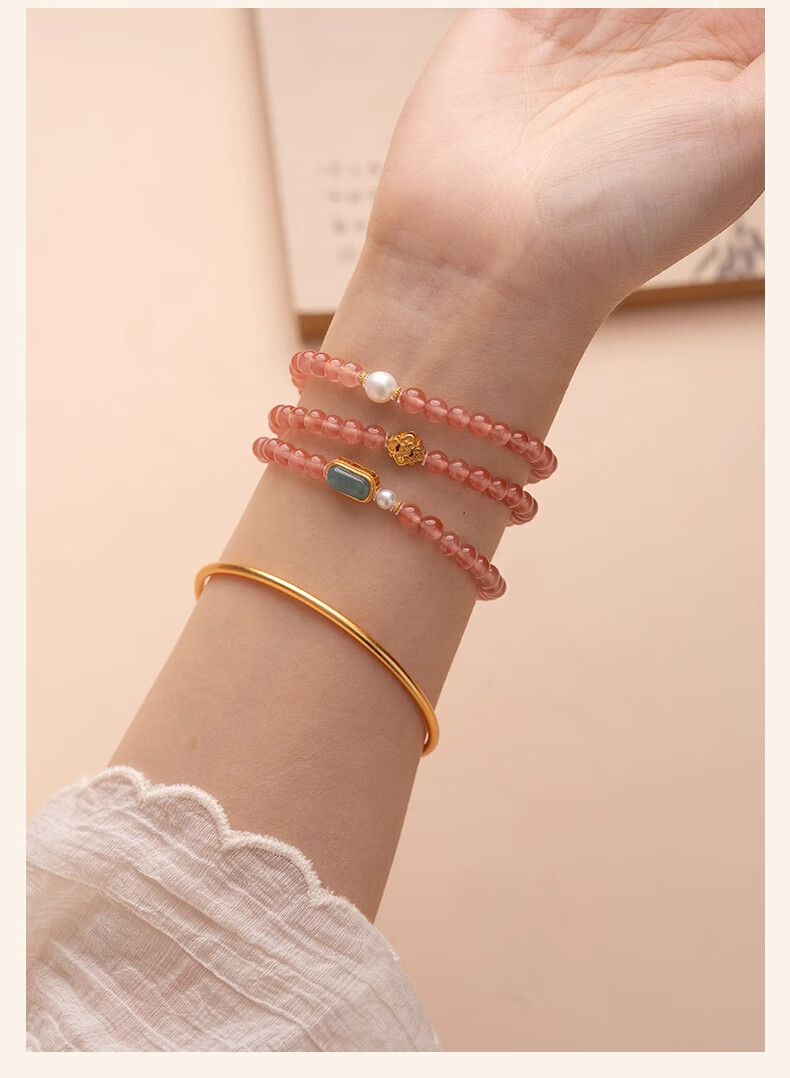 BOSFRU Natural Ice-Through Southern Red Bracelet Authentic Women's Multi-Layered Multi-circle Stacked Beaded Bracelet as a Small Gift for Your Girlfriend Blue Water Jade Beads Ice-Through Southern Red Stacked Bracelet Bracelet Length 14cm