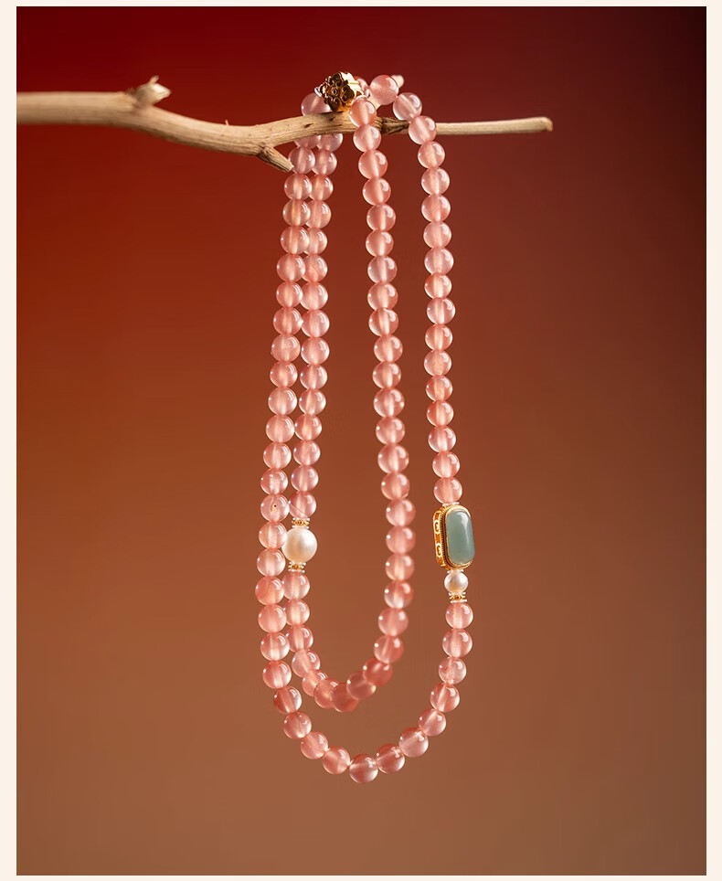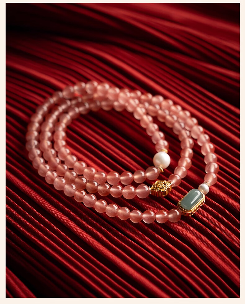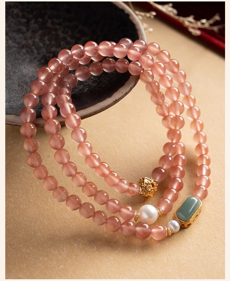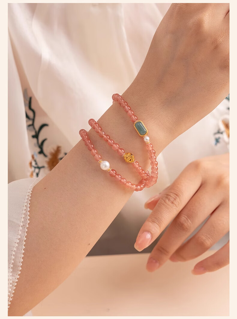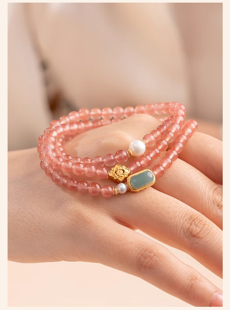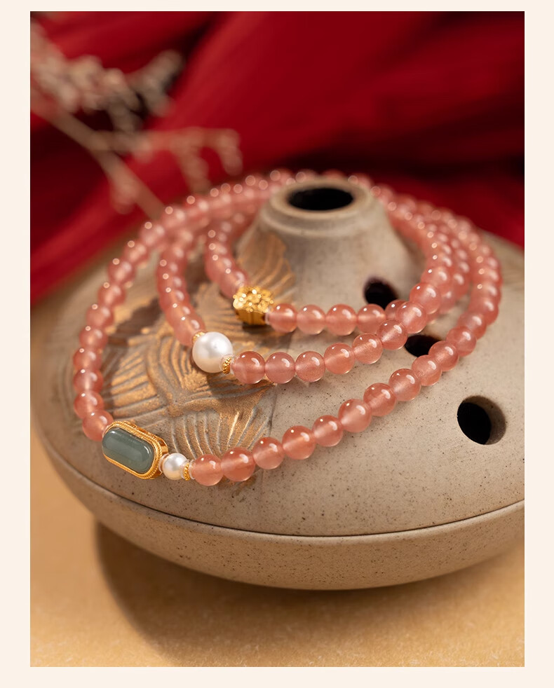 BOSFRU Natural Ice-Through Southern Red Bracelet Authentic Women's Multi-Layered Multi-circle Stacked Beaded Bracelet as a Small Gift for Your Girlfriend Blue Water Jade Beads Ice-Through Southern Red Stacked Bracelet Bracelet Length 14cm