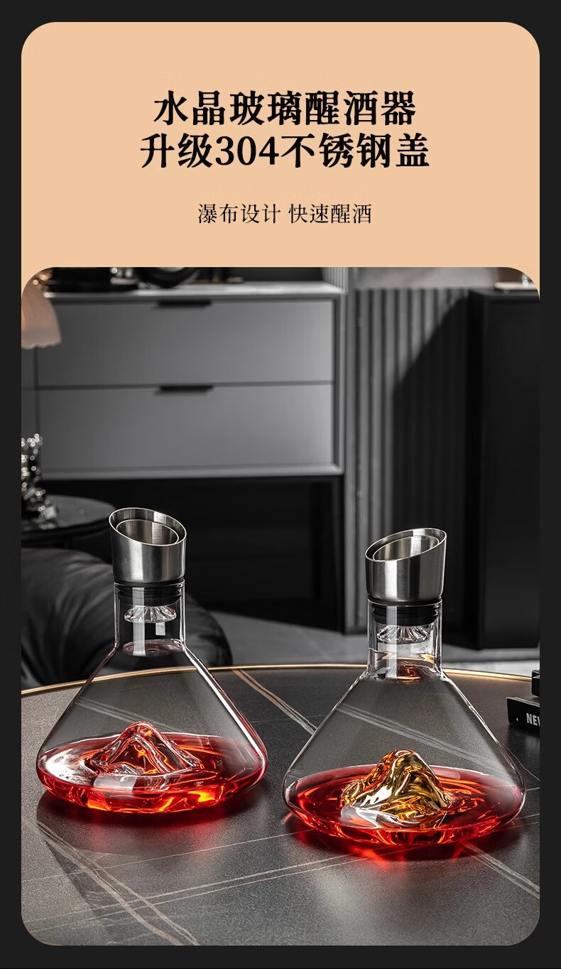 Genasi Jinshan Red Wine Falls Quick Decanter Wine Dispenser Home Set European Luxurious High-end Crystal Glass Red Wine Cup Jinshan Waterfall Decanter 1500ml