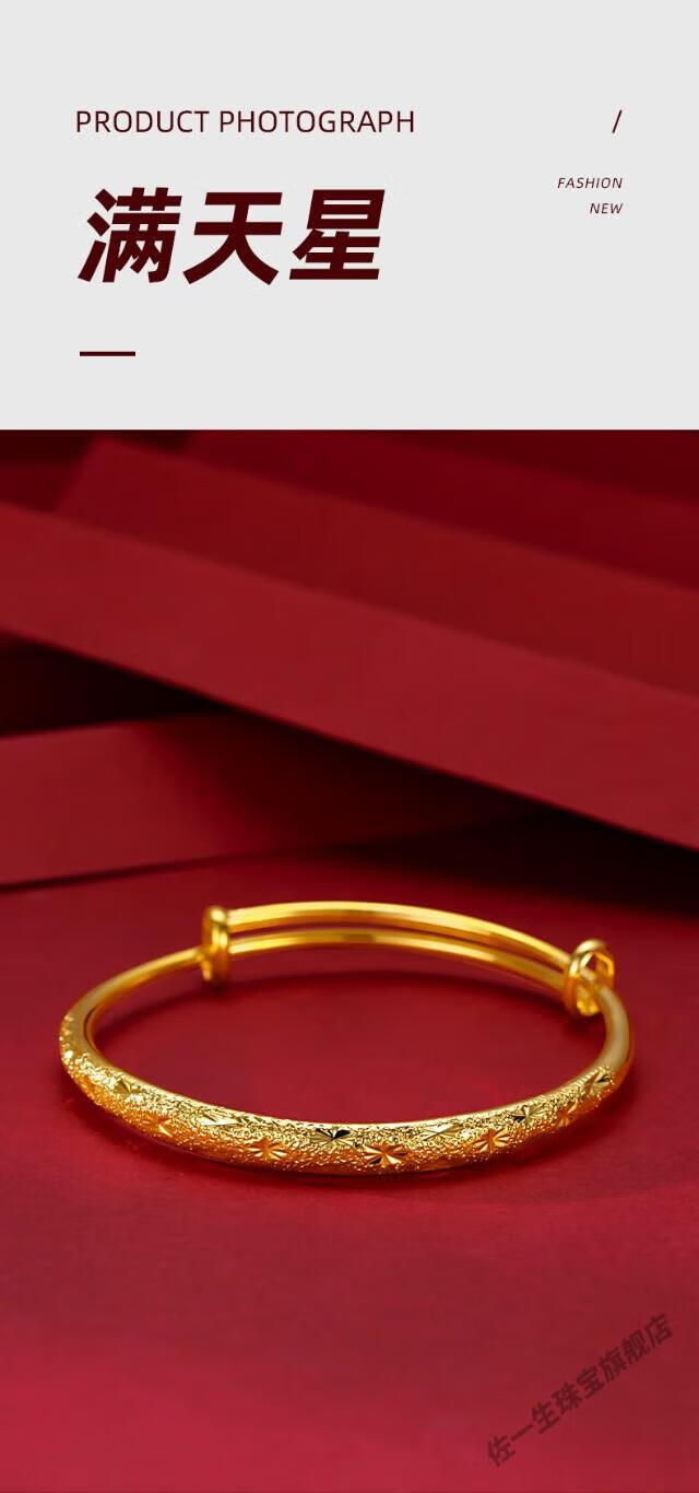 Prodigal Heart 18 Gold Bracelet Women's 999 Gold Glossy Push-Pull Bracelet 3 Hard Gold Adjustable Gift Glossy Push-Pull Bracelet