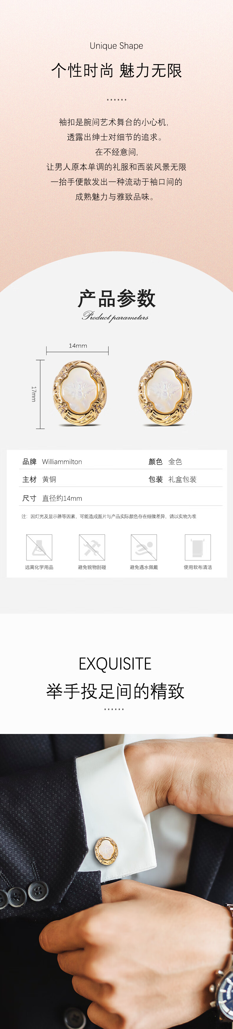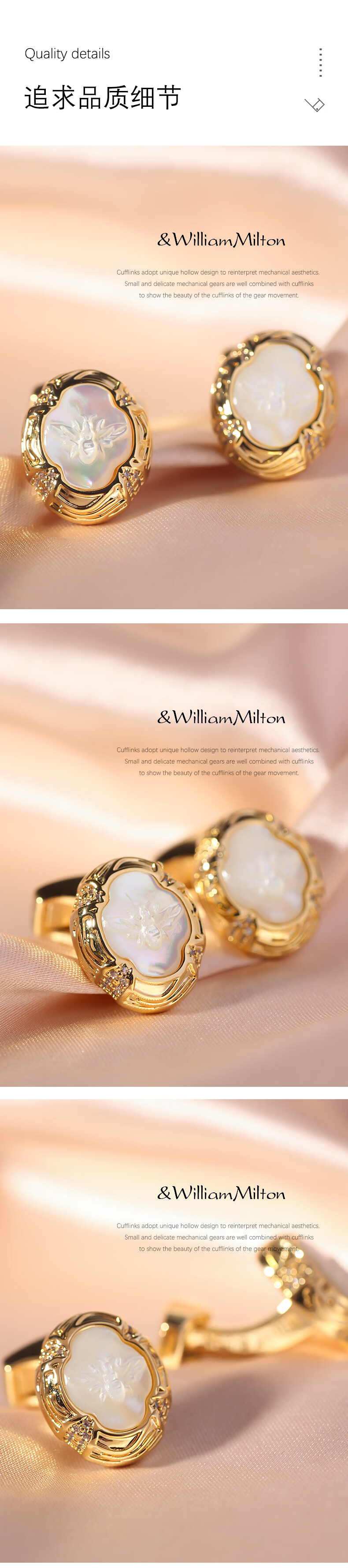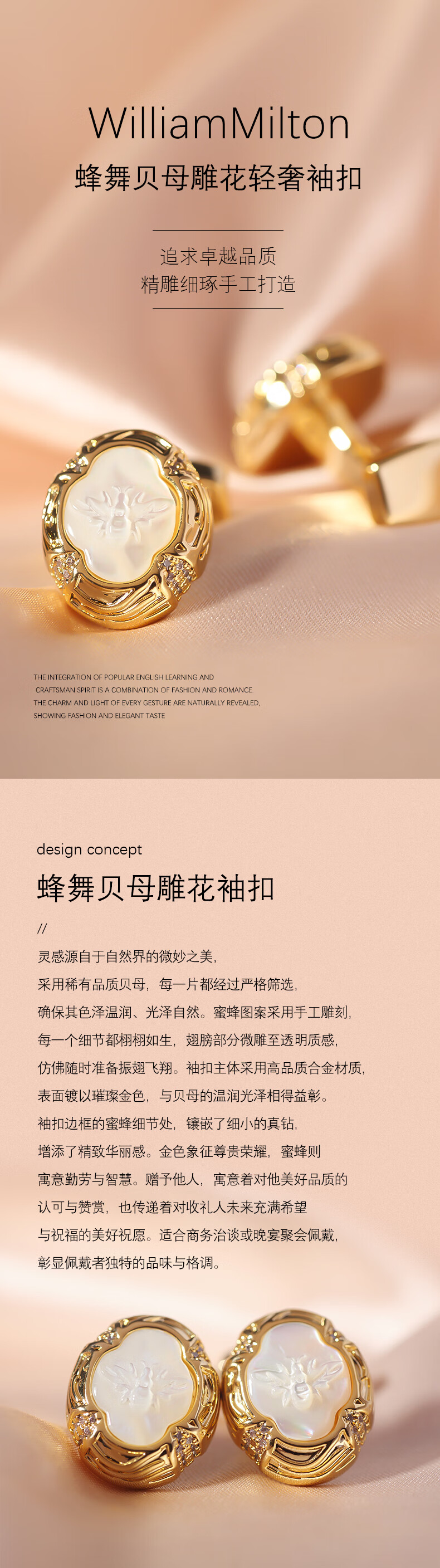 WILLIAM MILTON Bee Dance Fritillaria Carved Cufflinks Men's French Shirt Bee Cuff Nails High-End Birthday Gift Customized Gift Box Bee Dance